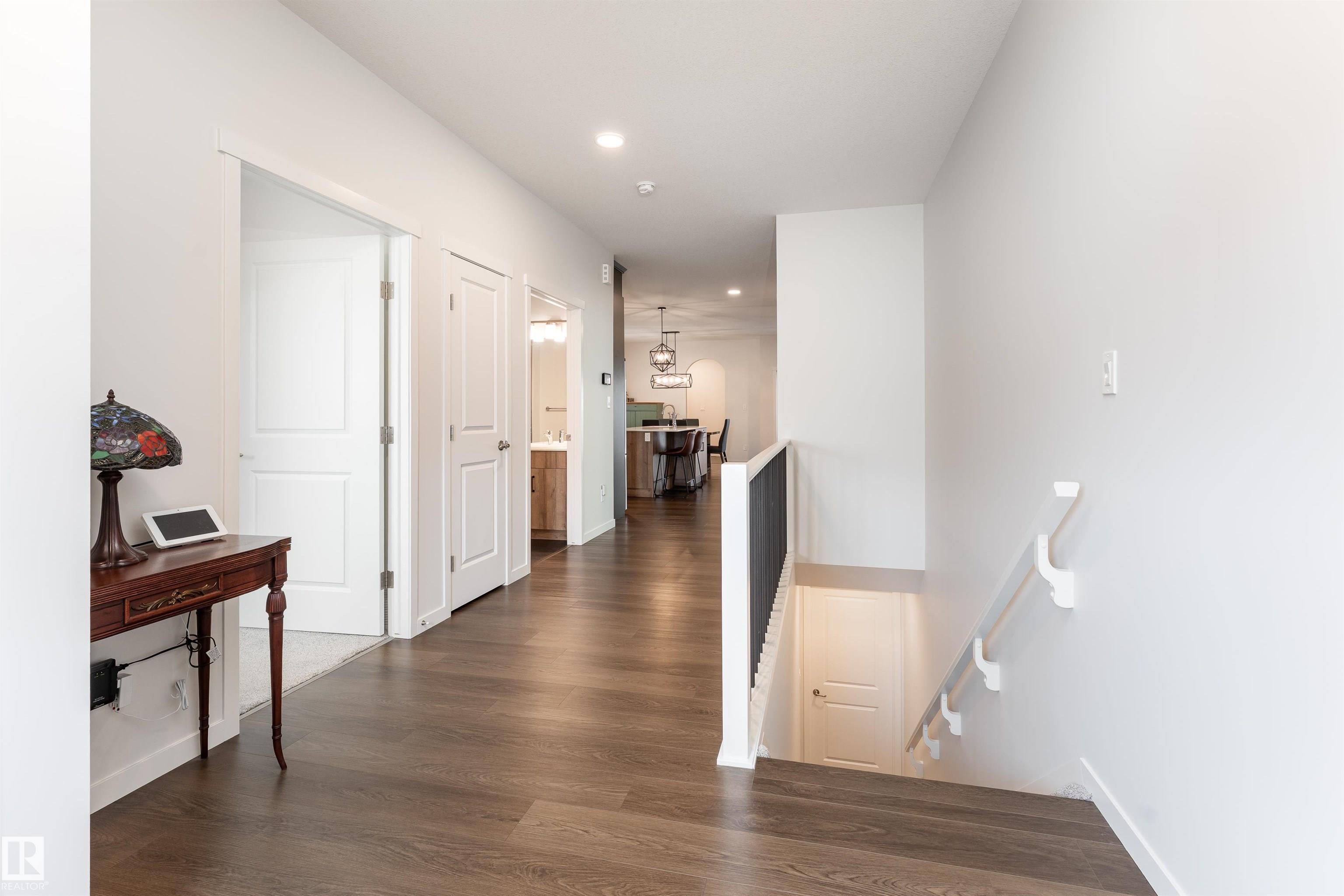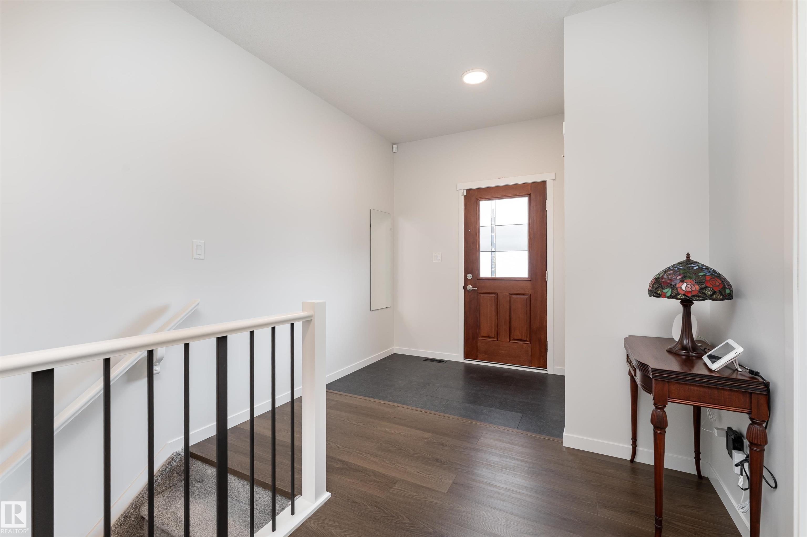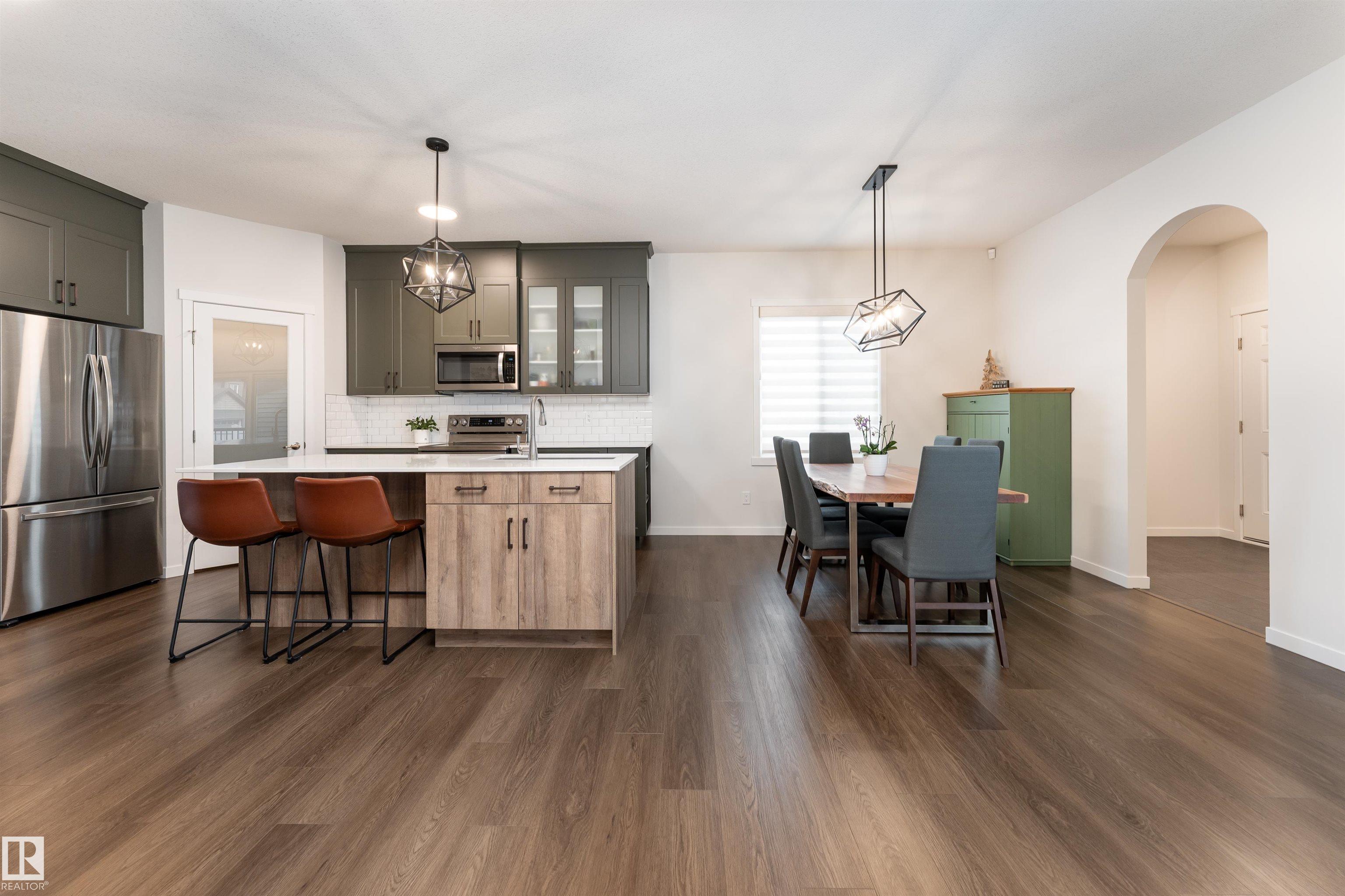 This 1358sqft bungalow built in 2022 by Coventry Homes offers 2 beds & 2 baths on main floor, double-attached garage at the back & low maintenance yard in the desirable Griesbach neighbourhood. A spacious, open entry way welcomes you into this well-maintained, like-new home! Primary offers walk-through closet w/ organizers & 5pc ensuite w/ dual sinks, stand-up shower & soaker tub. Kitchen offers corner pantry w/ frosted glass door, upgraded cabinets, s/s appliances & island w/ lots of storage. Sliding doors opens up to composite deck & low-maintenance paved concrete yard. Oversized mud room leads to attach garage at the back. Other features: no back neighbours, extra driveway parking, 9ft ceilings, triple-pane windows, widened 36" interior doors for easy wheelchair access, quartz countertops, vinyl plank flooring, 10lb carpet underlay, 150amp electrical panel, tankless hot water & Hunter Douglas blinds. Prime location w/ easy access to Downtown, Yellowhead Trail, shopping, restaurants, schools & more!