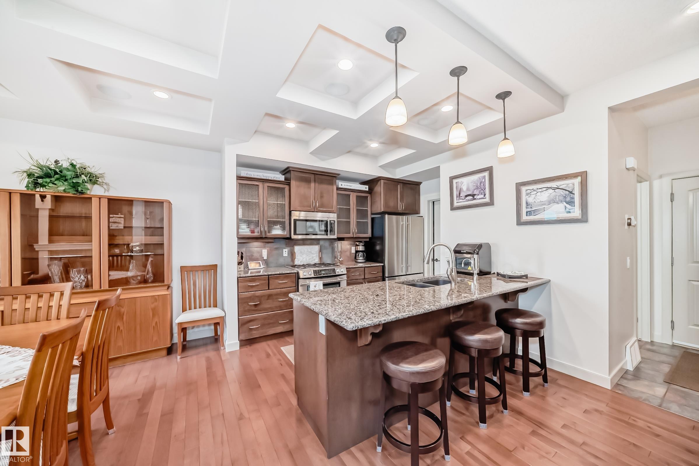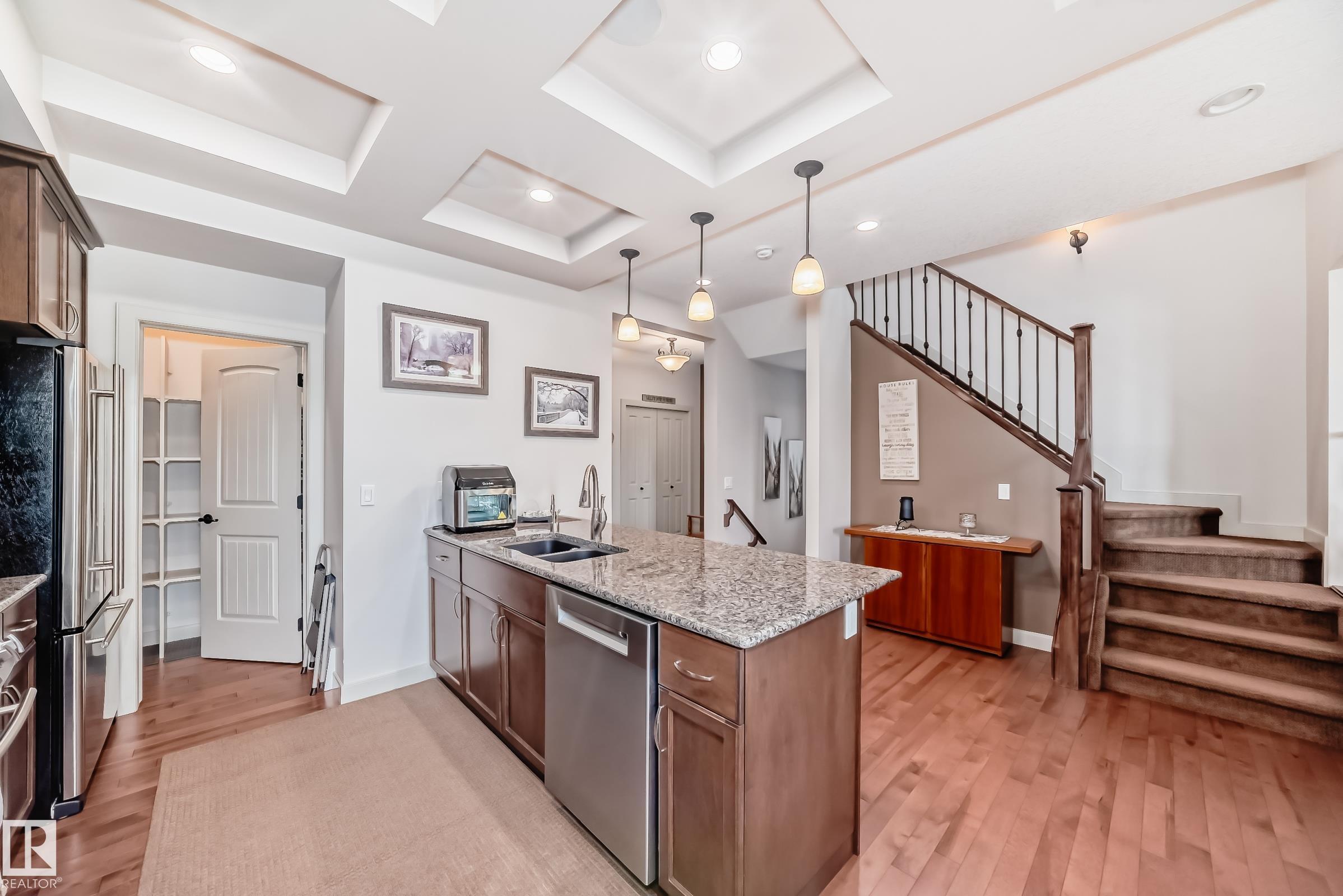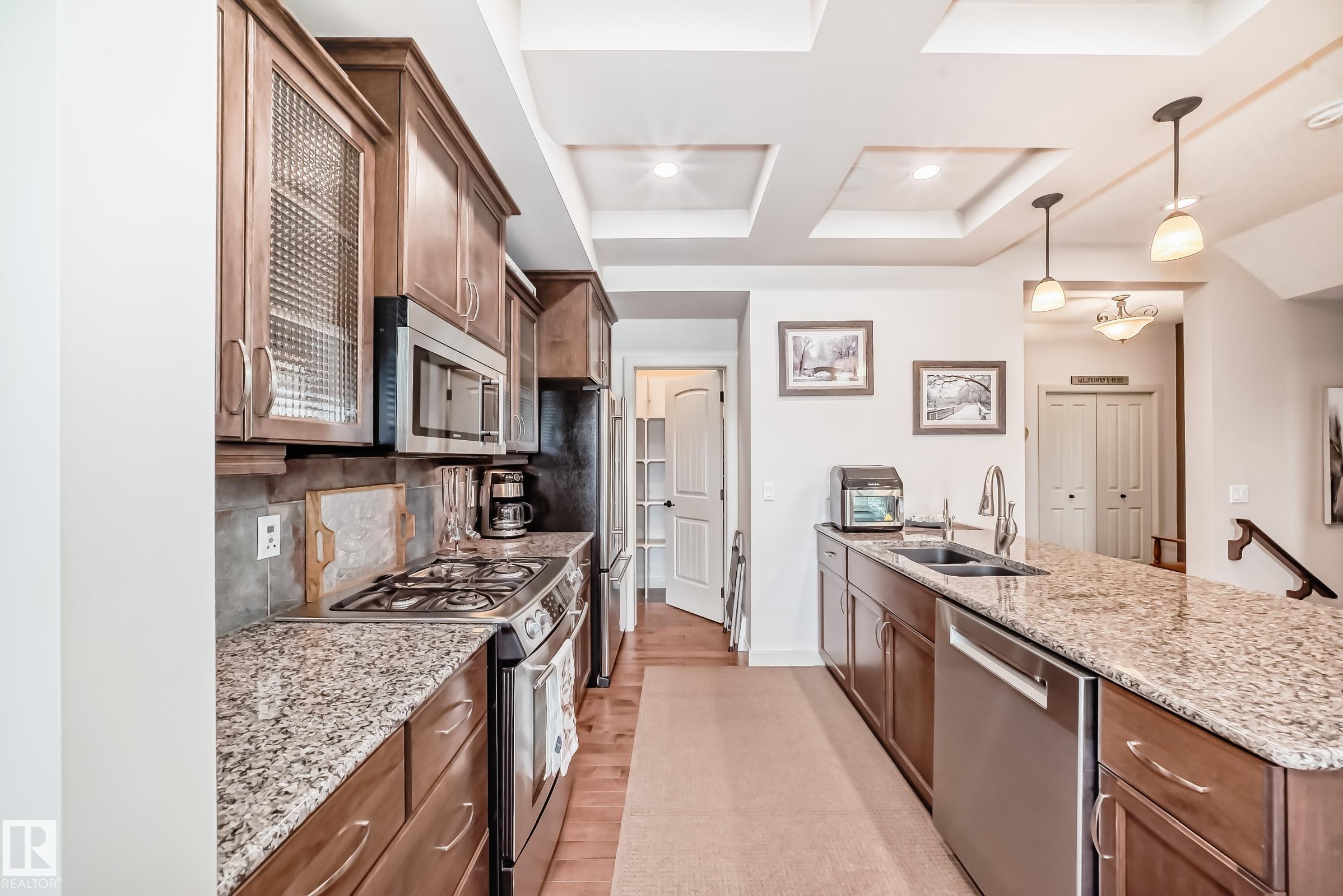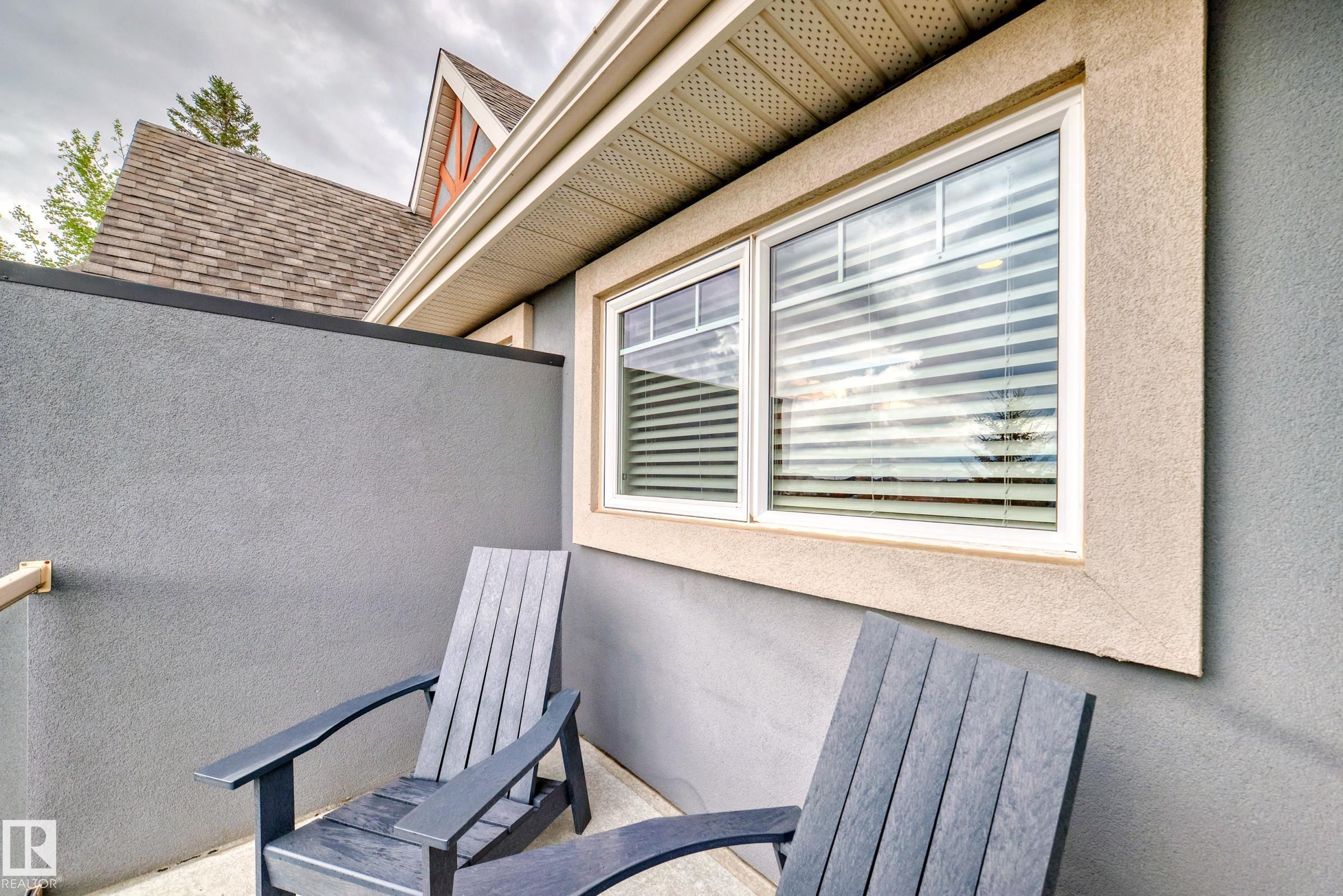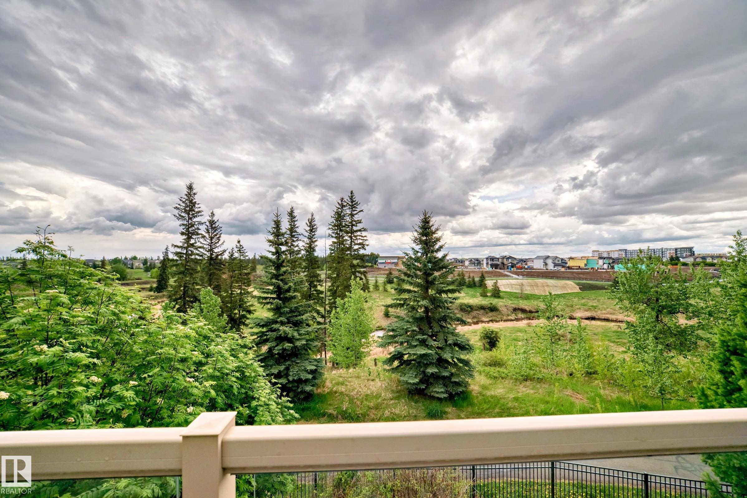 WOW..WELCOME TO WALKOUT executive style duplex Spectacular views of Blackmud Creek Ravine a former show home. On the main floor you will find the chef?s kitchen with Jenn-Air stainless steel appliances including gas range, granite counters with eat up island, walk-in pantry and ample dark cabinets. Coffered ceilings span from the kitchen into the dining area that accesses balcony #1. There is also a living room with a gas F/P, a 2pc bath and access to your double garage with epoxy floors. Upstairs you will find the Owner?s Suite complete with martini balcony, walk-in closet, 5pc ensuite including a tiled shower and three-sided gas F/P.Two additional bedrooms, a 4pc bath and a convenient second floor laundry room finish it off. In your fully finished walkout lower level that is perfect for entertaining is a wet bar, family room, 2pc bath and den/office area with the third F/P and a patio. This amazing home also includes central A/C.