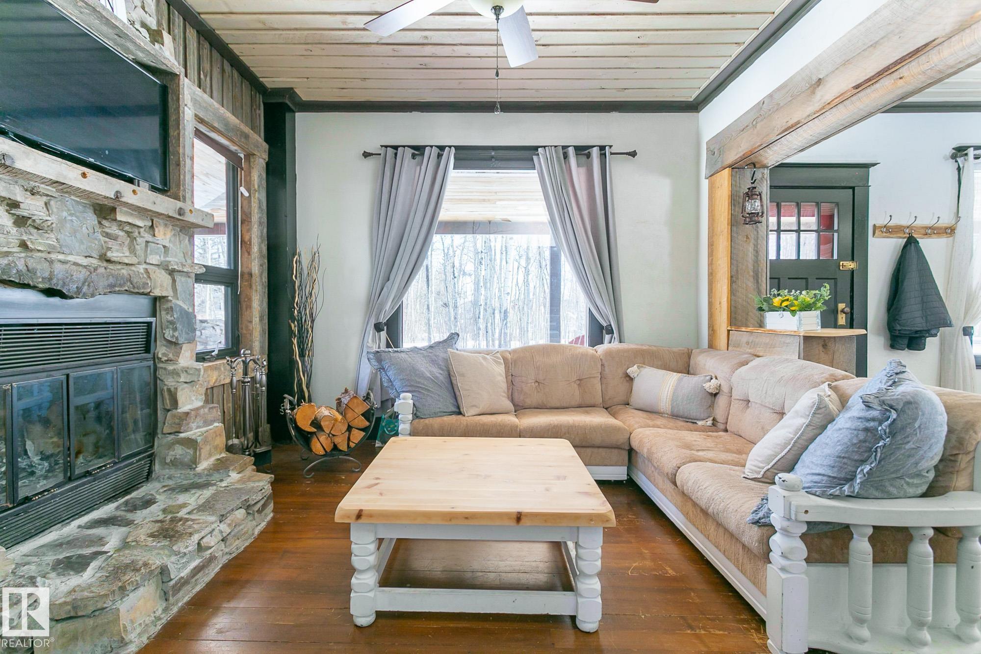 Listed BELOW APPRAISED VALUE, a RESTORED & UPDATED house w/ a lake view of beautiful Pigeon Lake! This HISTORICAL home was dismantled and moved on to a NEW foundation in 2010. Completely RENOVATED in 2011, while still maintaining much of its historical beauty. The original hardwood flooring extends throughout the majority of the house, with ceramic tile upgrades in kitchen, bath and mudroom areas. The cozy LR features a GORGEOUS STONE wood burning fireplace & extends into a bright dining area overlooking the COMPLETELY UPDATED kitchen that boasts all NEWER STAINLESS STEEL appliances and ANTIQUED oak cabinets. A STUNNING 4 pc bthrm w/ natural stone, mud room & separate laundry rm complete this level. Upstairs you will find 3 very spacious well appointed bedrooms. Additional features include a heated garage with 220 amp power, outdoor covered BBQ area, and new sump. This property is fully landscaped with cobblestone walkways, flowerbeds, located on a private dead end road backing onto a reserve area.
