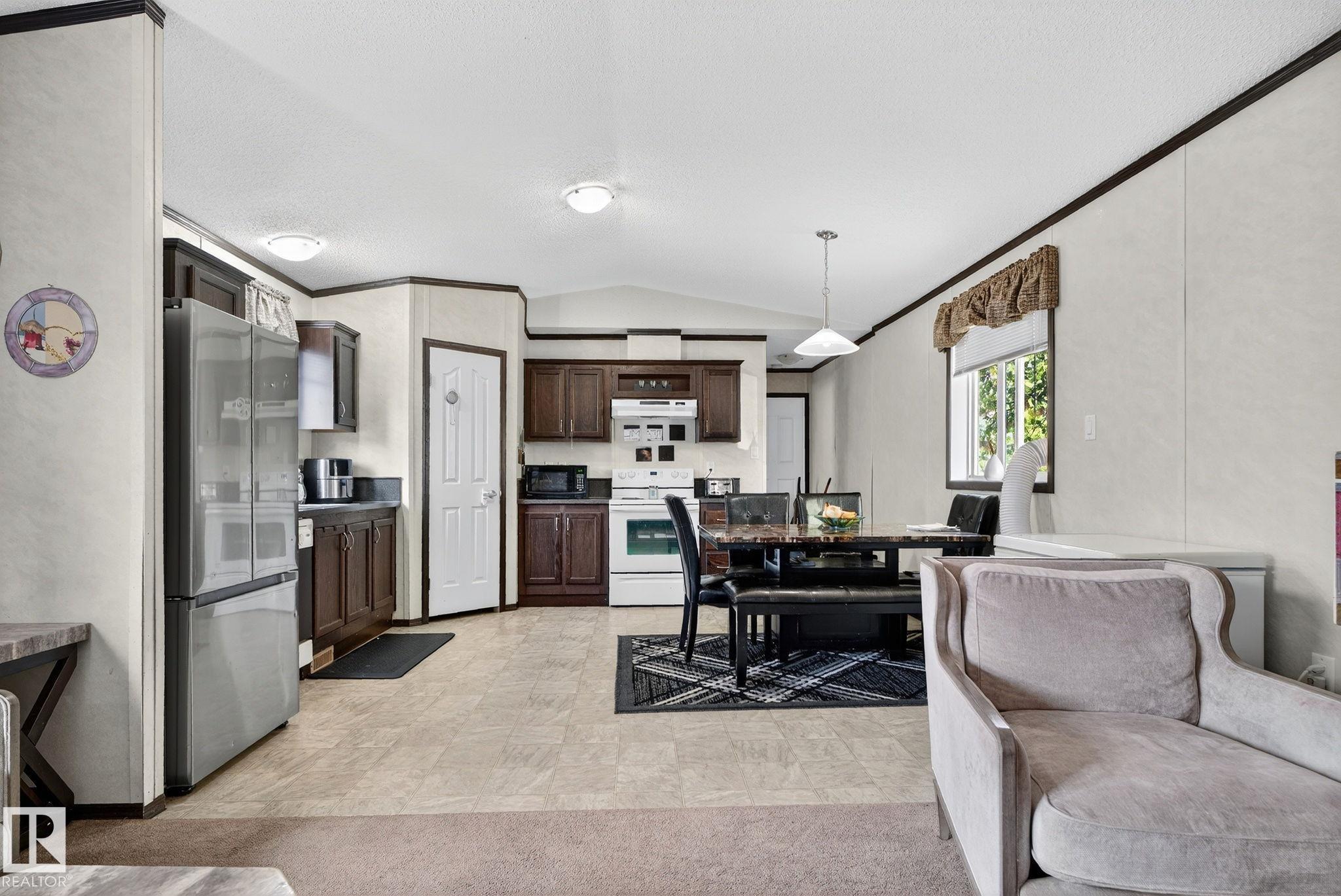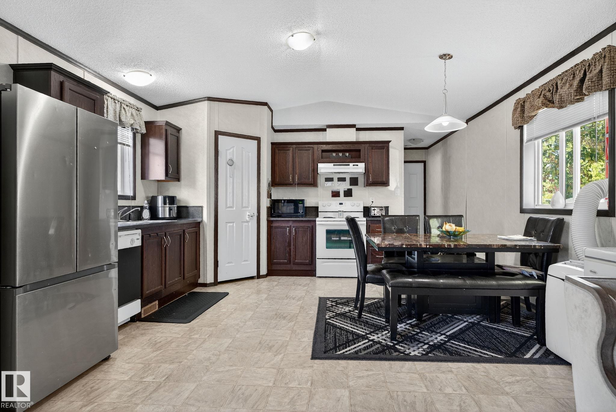 Perfect for first-time buyers, large families, or anyone looking to downsize, this beautifully maintained 1216 sq. ft. home offers modern comfort and an inviting open-concept design. Built in 2012, it features 3 spacious bedrooms and 2 full bathrooms, including a primary suite with a large walk-in closet and a luxurious 4-piece ensuite complete with an oversized soaker tub. Step outside to enjoy the newly built, oversized southwest-facing deck, ideal for relaxing or entertaining while overlooking the beautifully landscaped yard on one of the largest lots in the park. Located in a prime area of Leduc, you?ll love the convenience of nearby shopping and easy access to the QE2. With water, sewer, and garbage included in the affordable lot lease, this home combines style, comfort, and value.
