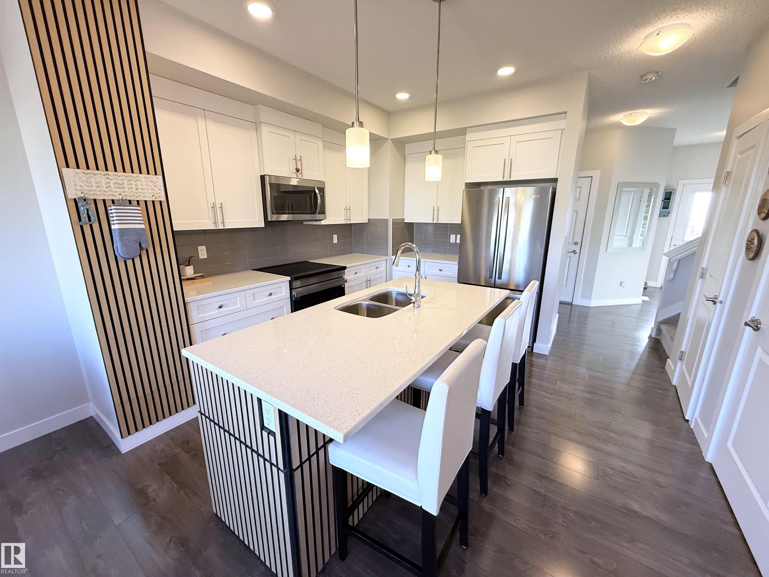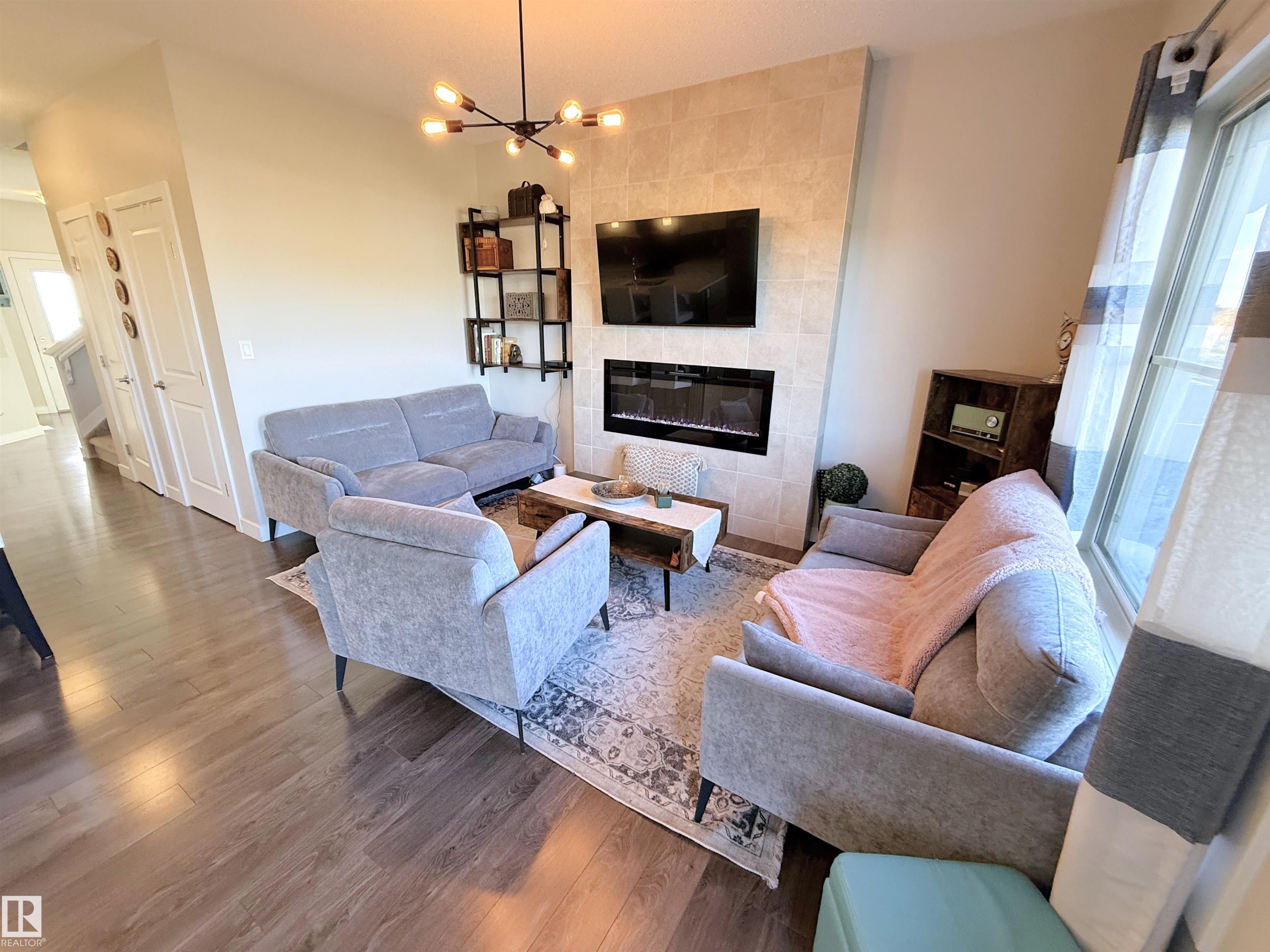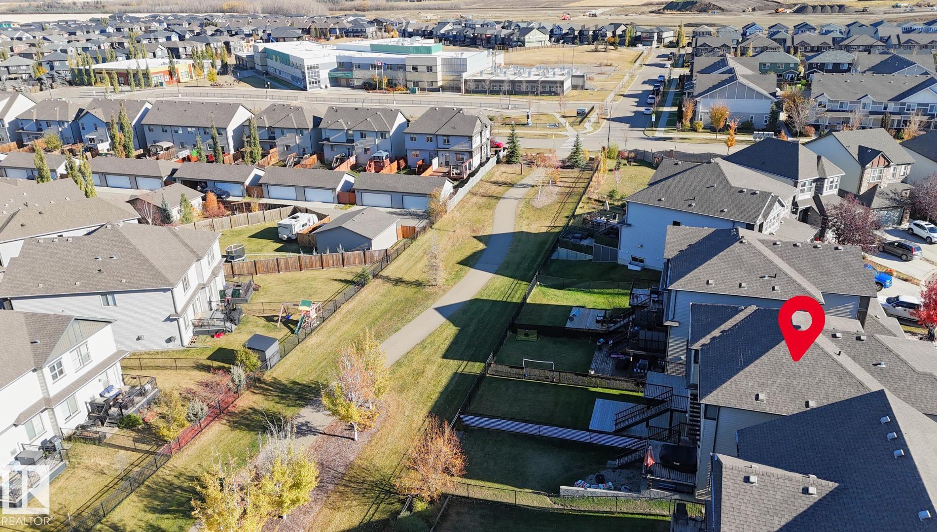 WALKOUT 2-storey half duplex with attached garage (24x14, heated) backing onto trail system connecting to Jubilee Park. This 1,475 sqft (plus full basement) home features top floor laundry, 9? main level ceiling, water treatment system and a great open floor plan. On the main: 2-pc powder room, living room with gas fireplace, dining area with deck access and a beautiful gourmet kitchen with quartz counters, eat-up island, wood accents and stainless-steel appliances. Upstairs: study nook, 2 full bathrooms and 3 generous-sized bedrooms including the owner?s suite w/ walk-in closet & 3-pc ensuite. The unfinished basement boasts large windows and back yard patio access as well as plumbing roughed in for a future 4th bathroom. Fully fenced yard with deck, fire pit area, patio with privacy wall and gated access to the walking trail behind. Fantastic location in Greenbury within walking distance to schools & spray park; quick drive to all amenities and easy access to Highway 16A. No condo fees!