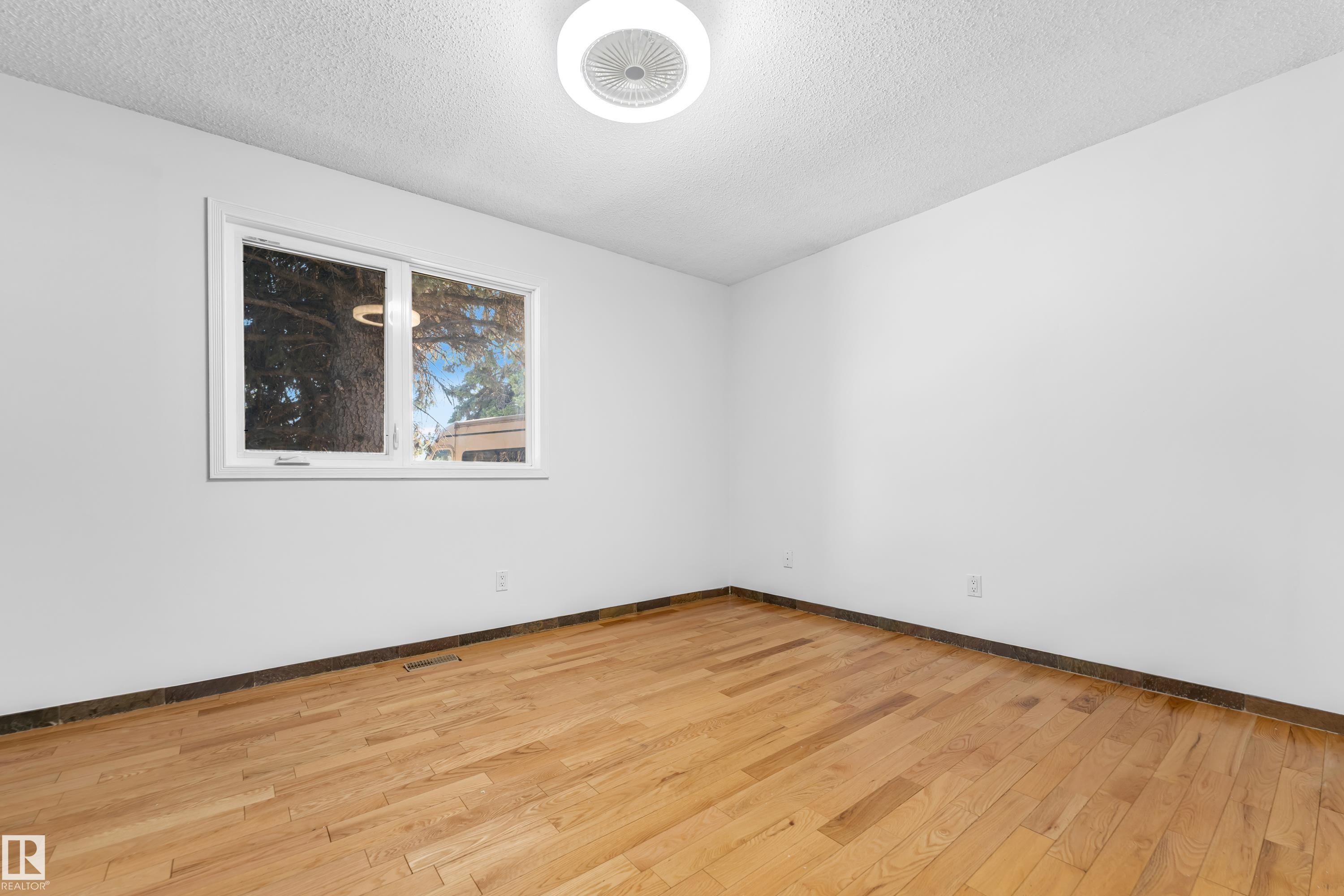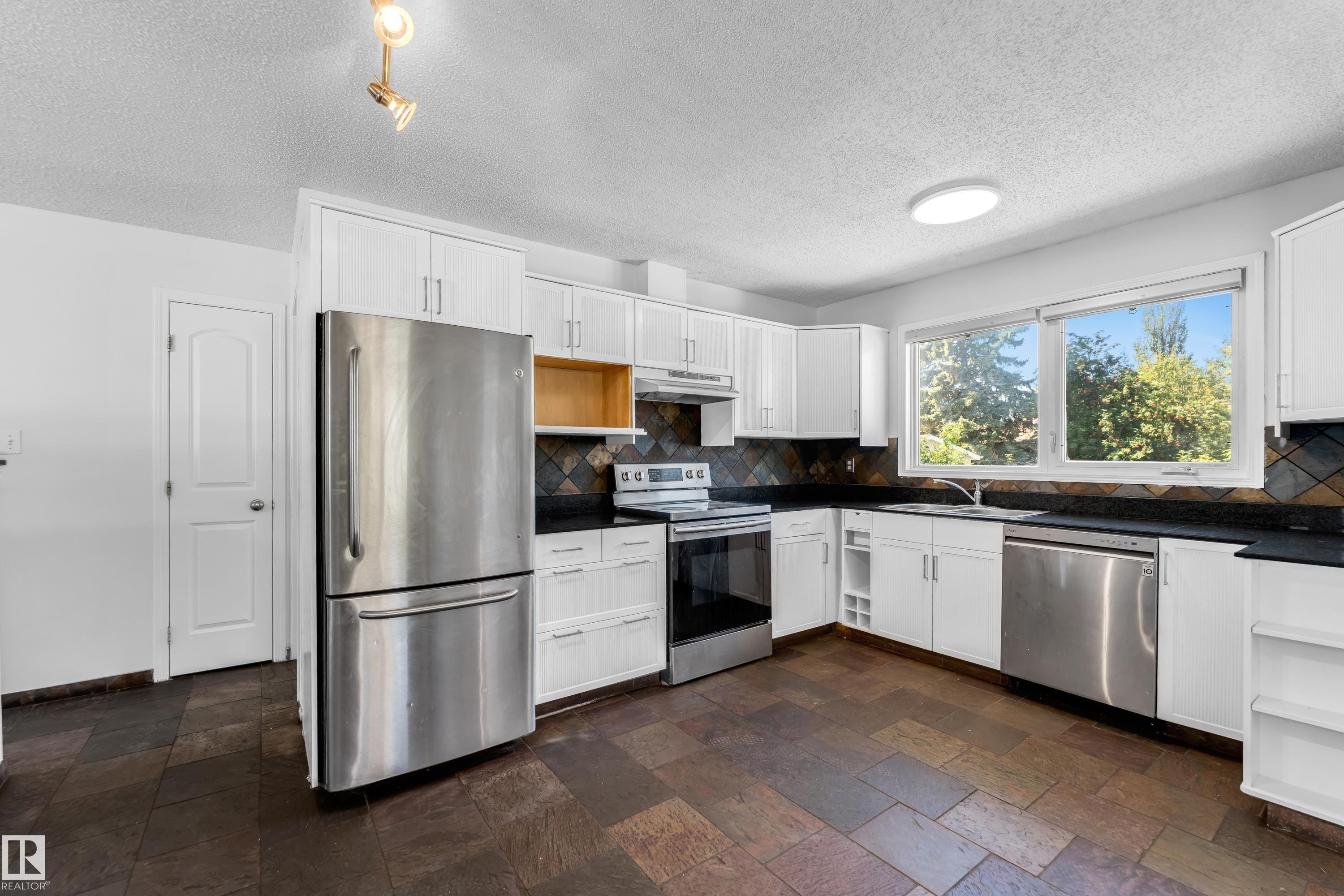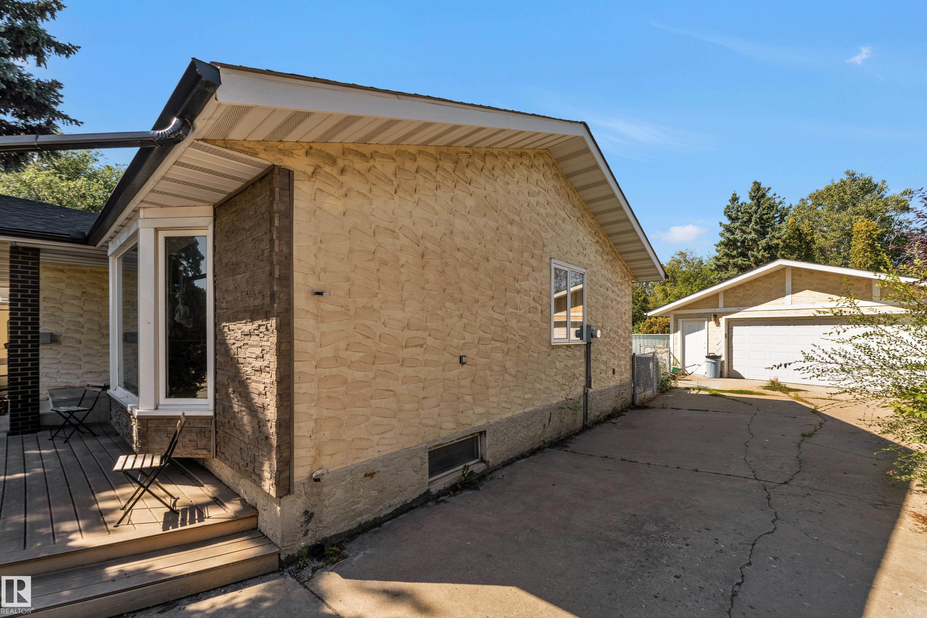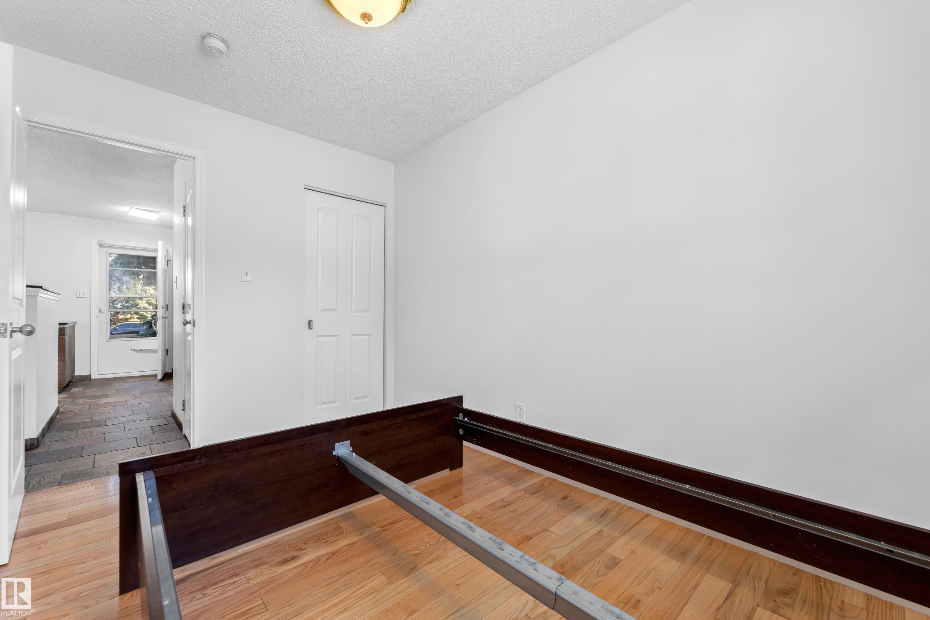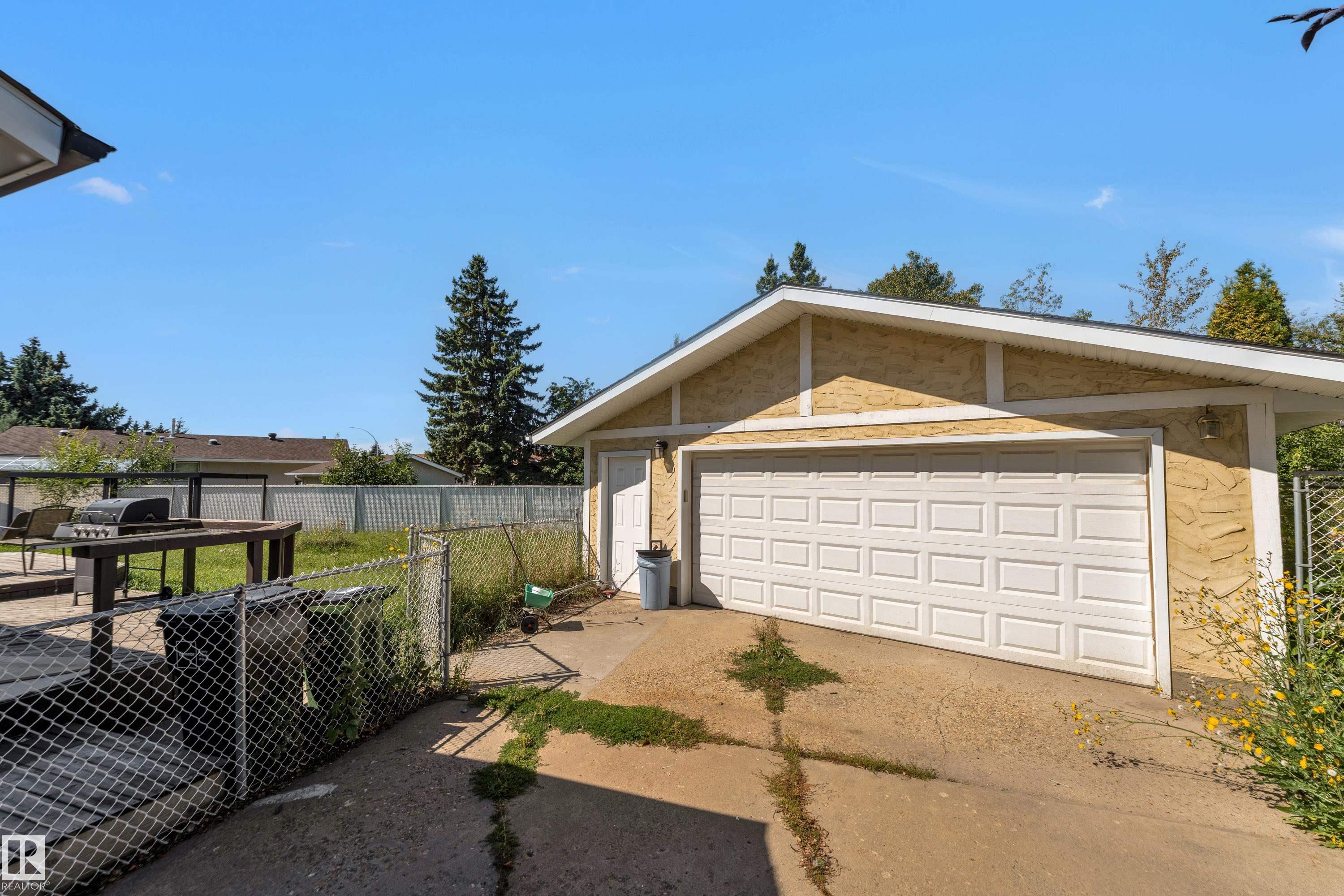 Beautifully updated bungalow tucked away in a quiet cul-de-sac on a rare pie-shaped lot backing onto a walking trail! The open-concept main floor features hardwood and tile throughout, plus a modern kitchen with quartz countertops, newer appliances, and plenty of storage. Upstairs offers three spacious bedrooms, including a primary suite with a custom built-in closet organizer and 2-piece ensuite. The renovated main bath shines with quartz counters and fresh tile. Downstairs, the fully finished basement includes a second kitchen, huge rec room, 4th bedroom, den (easily used as a 5th bedroom), and 3-piece bath. Outside, enjoy the oversized yard with room to garden, play, or entertain, plus a 24' x 28' double detached garage with space for vehicles, tools, and toys. Walking distance to schools, playgrounds, parks, and public transit, this home checks every box!