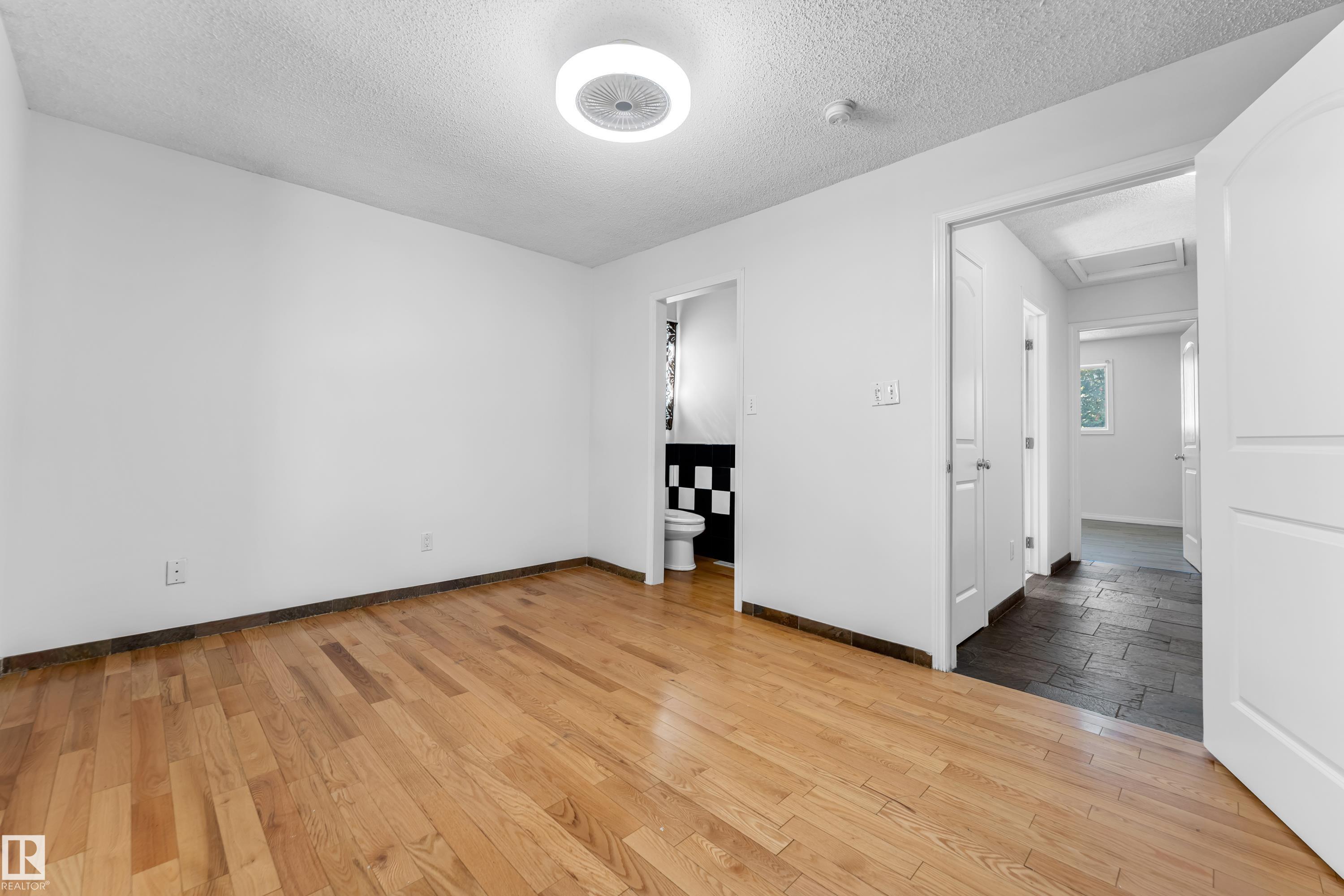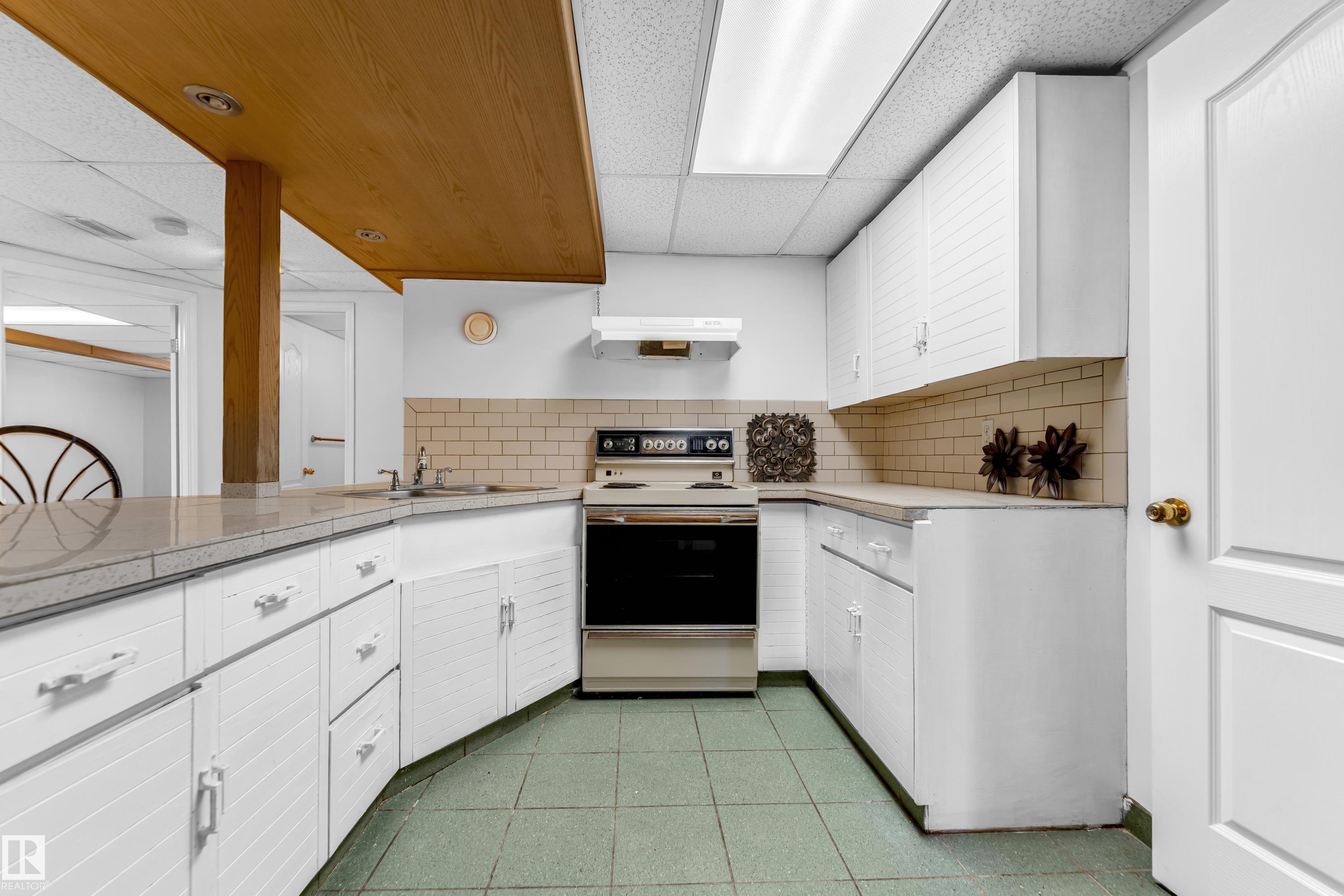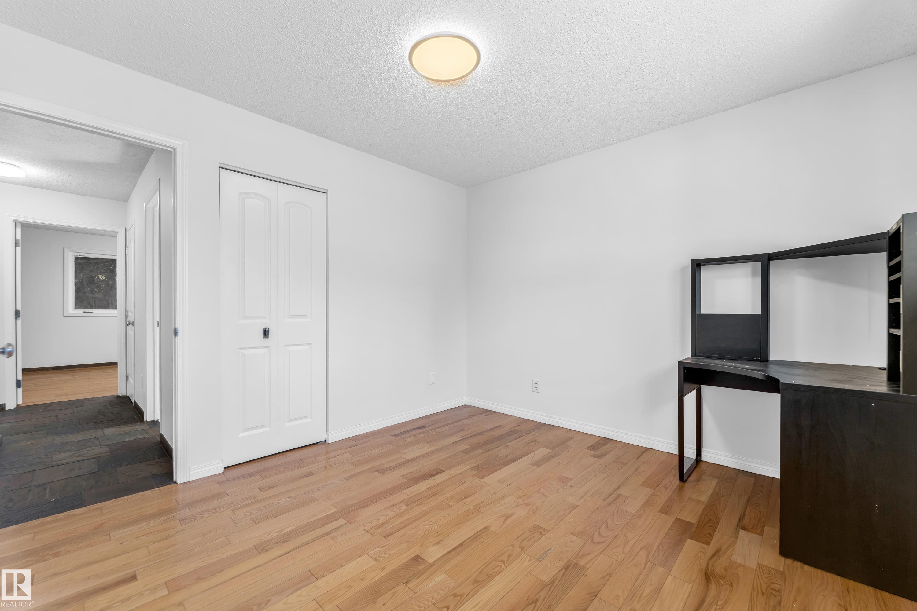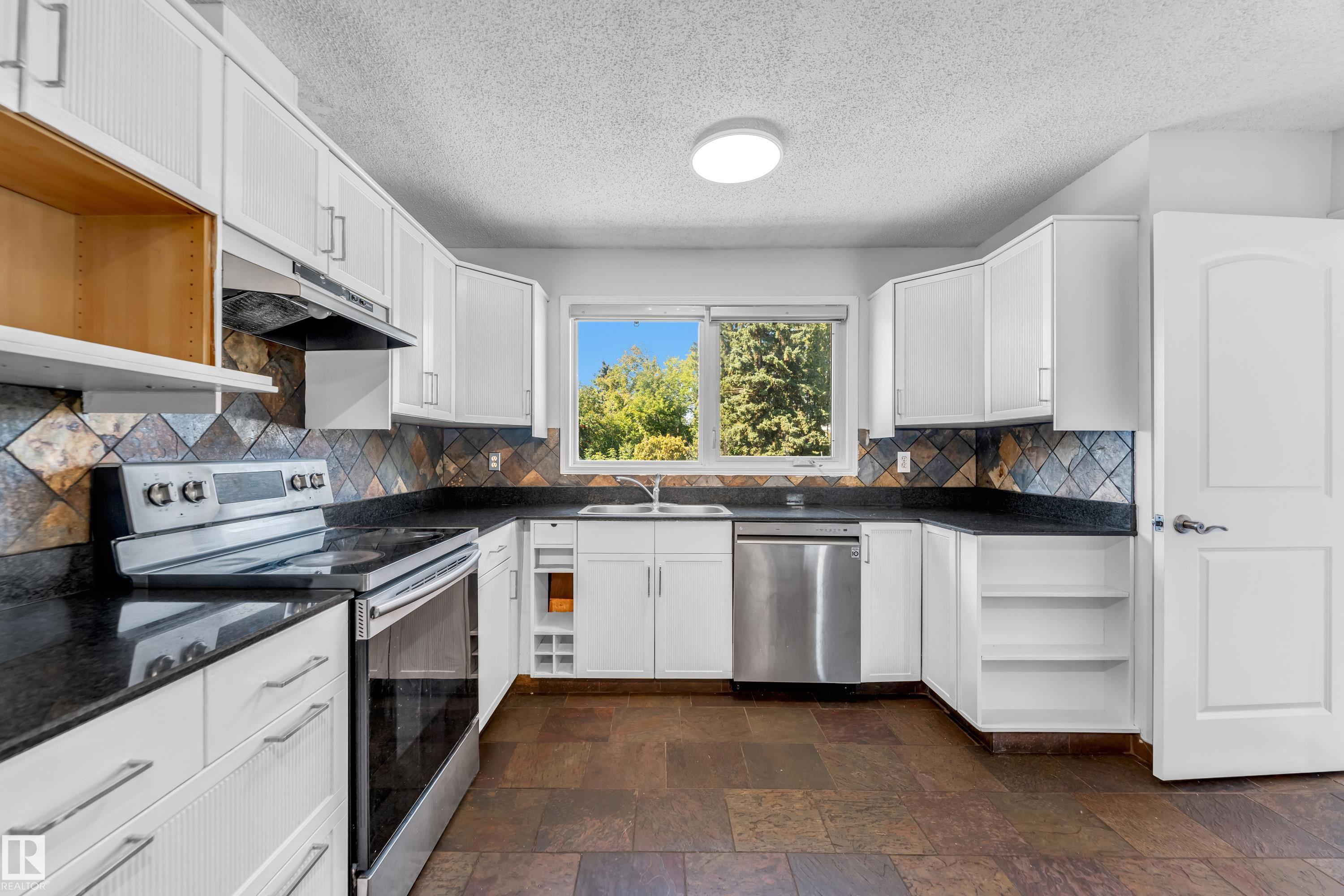 Beautifully updated bungalow tucked away in a quiet cul-de-sac on a rare pie-shaped lot backing onto a walking trail! The open-concept main floor features hardwood and tile throughout, plus a modern kitchen with quartz countertops, newer appliances, and plenty of storage. Upstairs offers three spacious bedrooms, including a primary suite with a custom built-in closet organizer and 2-piece ensuite. The renovated main bath shines with quartz counters and fresh tile. Downstairs, the fully finished basement includes a second kitchen, huge rec room, 4th bedroom, den (easily used as a 5th bedroom), and 3-piece bath. Outside, enjoy the oversized yard with room to garden, play, or entertain, plus a 24' x 28' double detached garage with space for vehicles, tools, and toys. Walking distance to schools, playgrounds, parks, and public transit, this home checks every box!