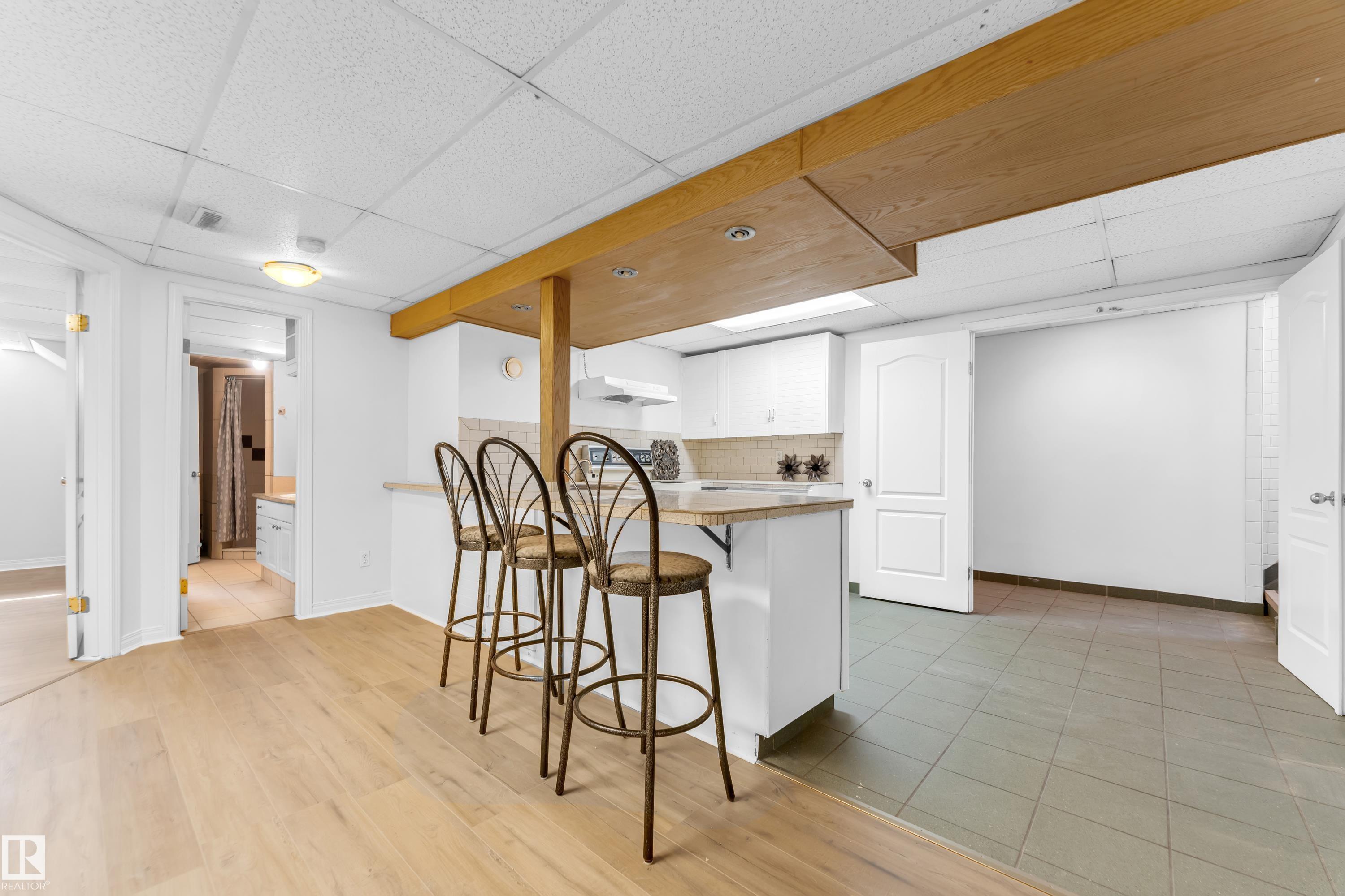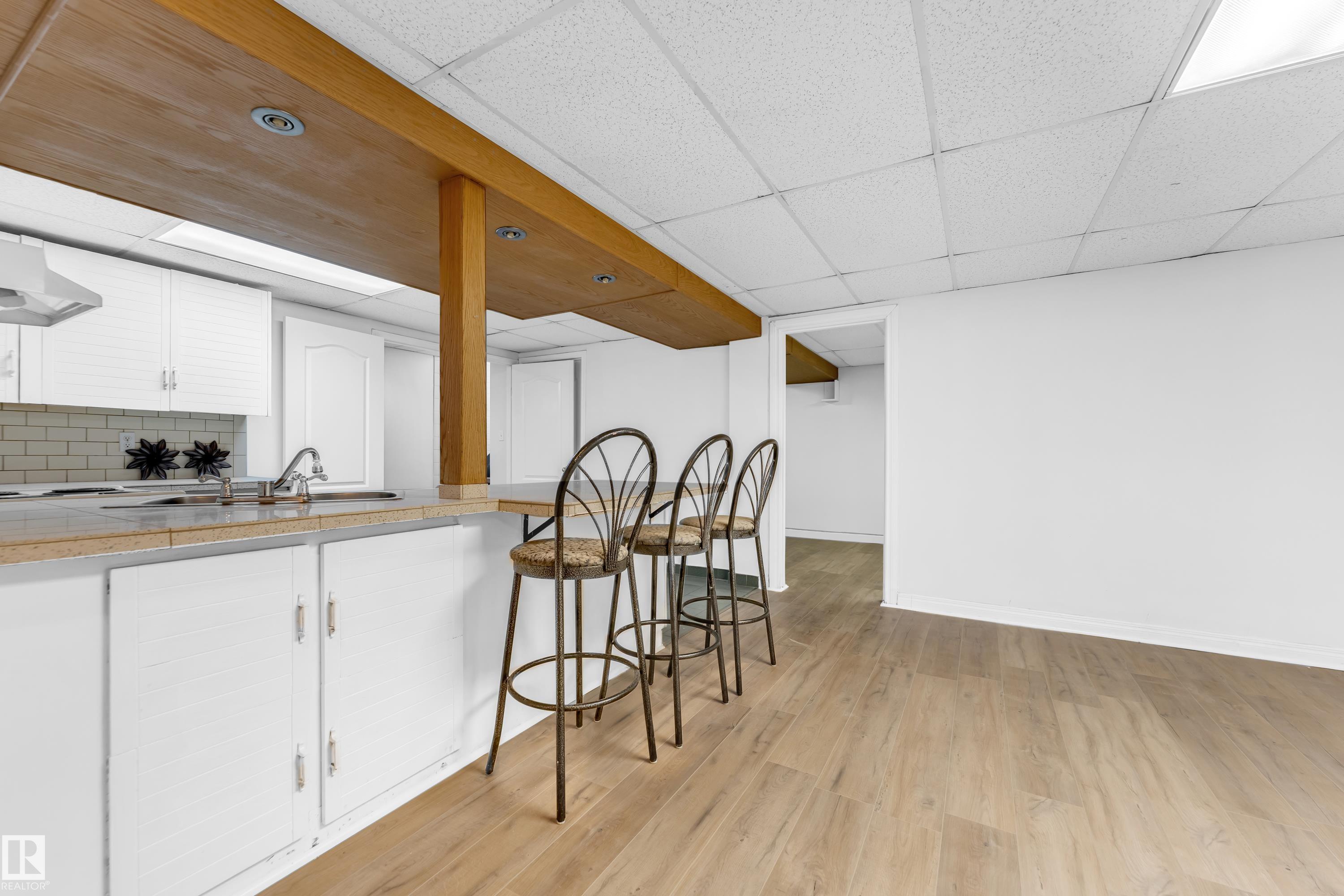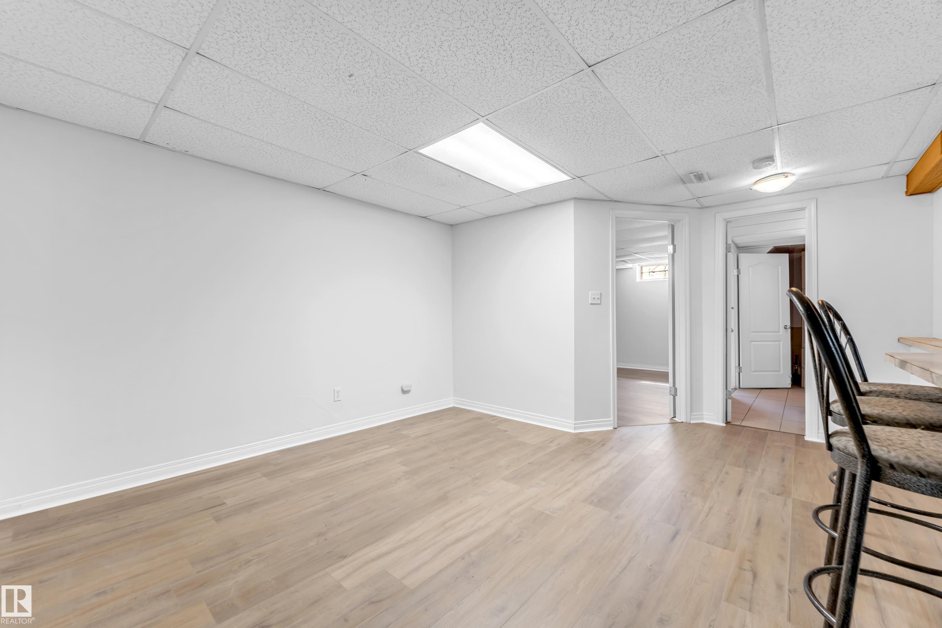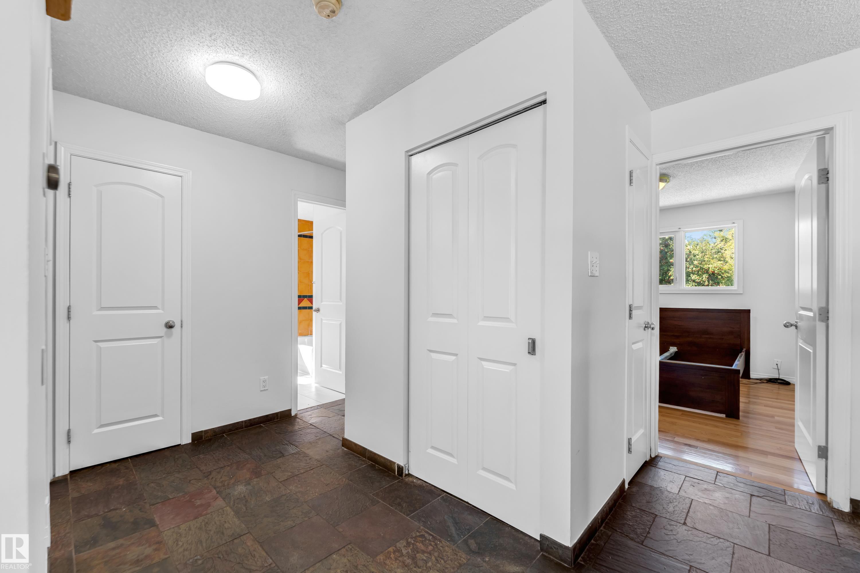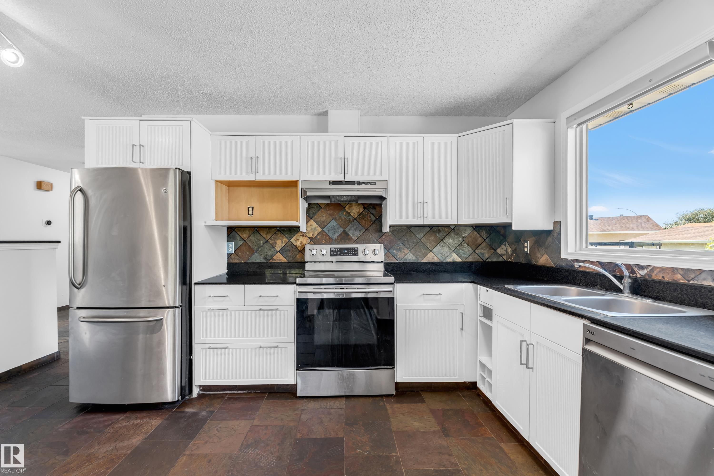 Beautifully updated bungalow tucked away in a quiet cul-de-sac on a rare pie-shaped lot backing onto a walking trail! The open-concept main floor features hardwood and tile throughout, plus a modern kitchen with quartz countertops, newer appliances, and plenty of storage. Upstairs offers three spacious bedrooms, including a primary suite with a custom built-in closet organizer and 2-piece ensuite. The renovated main bath shines with quartz counters and fresh tile. Downstairs, the fully finished basement includes a second kitchen, huge rec room, 4th bedroom, den (easily used as a 5th bedroom), and 3-piece bath. Outside, enjoy the oversized yard with room to garden, play, or entertain, plus a 24' x 28' double detached garage with space for vehicles, tools, and toys. Walking distance to schools, playgrounds, parks, and public transit, this home checks every box!
