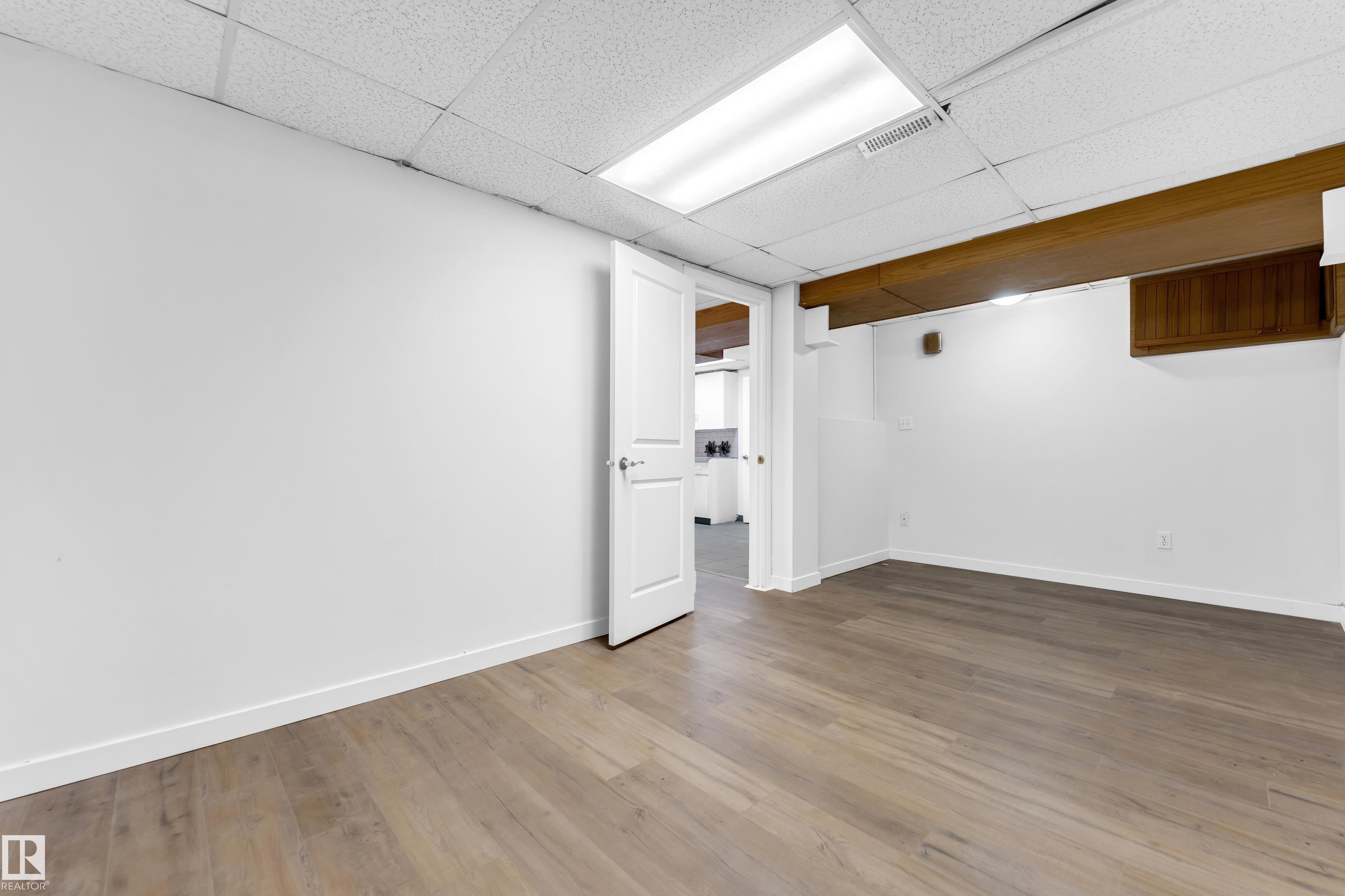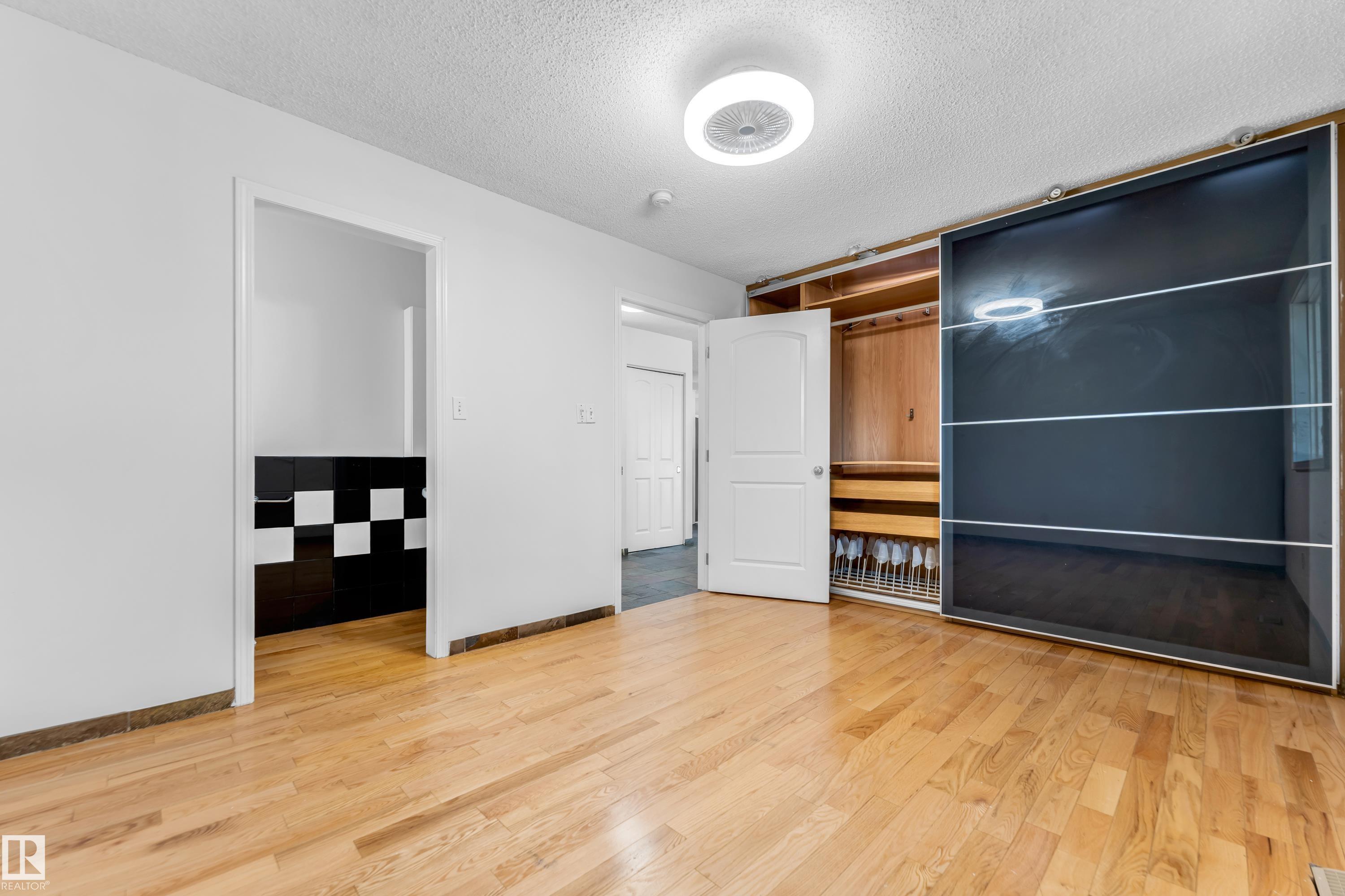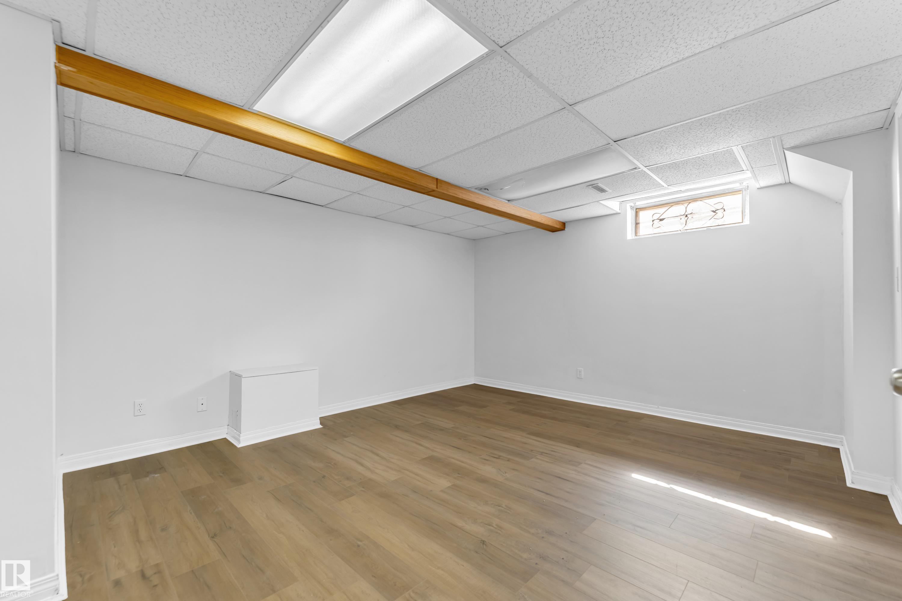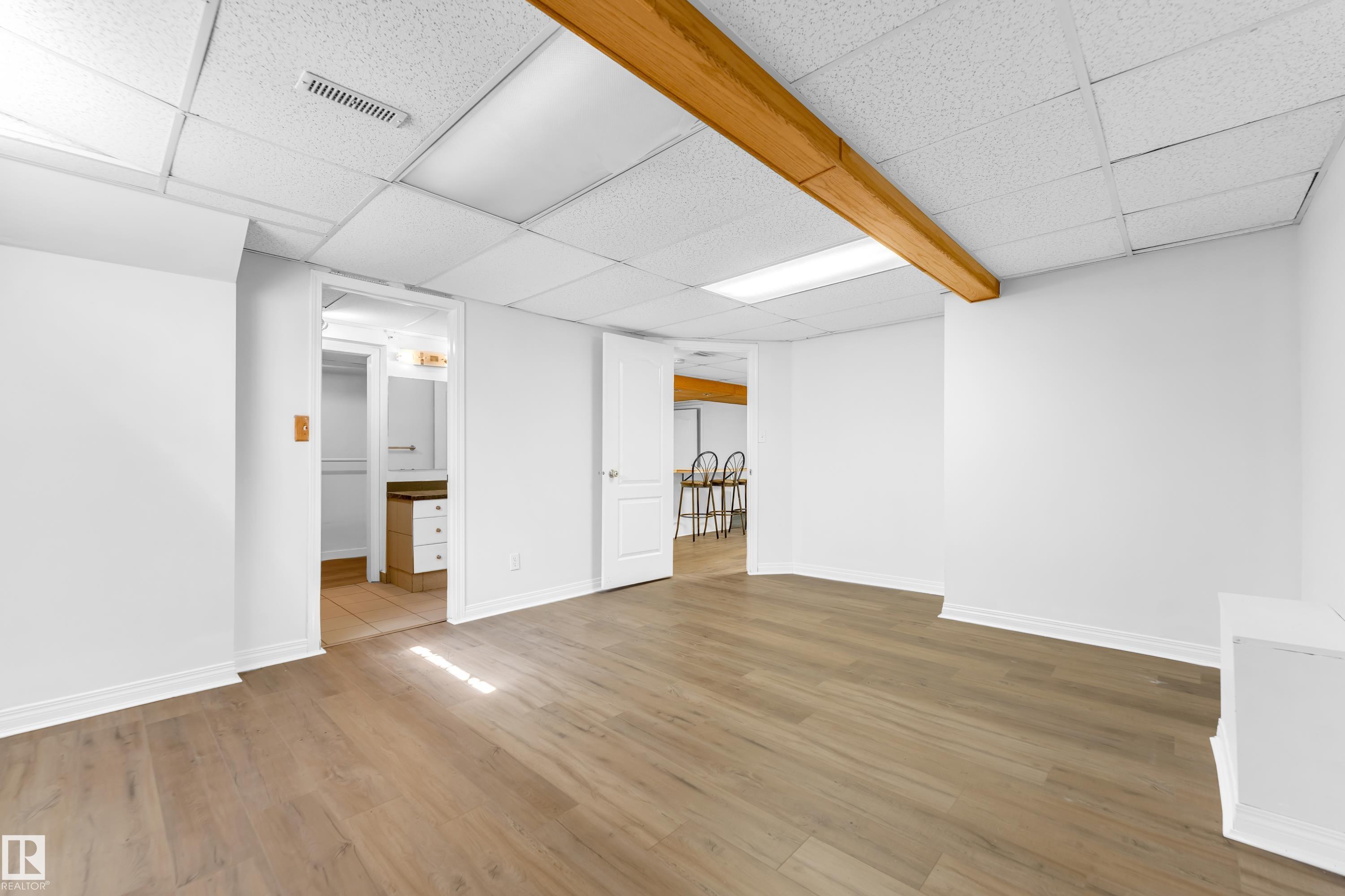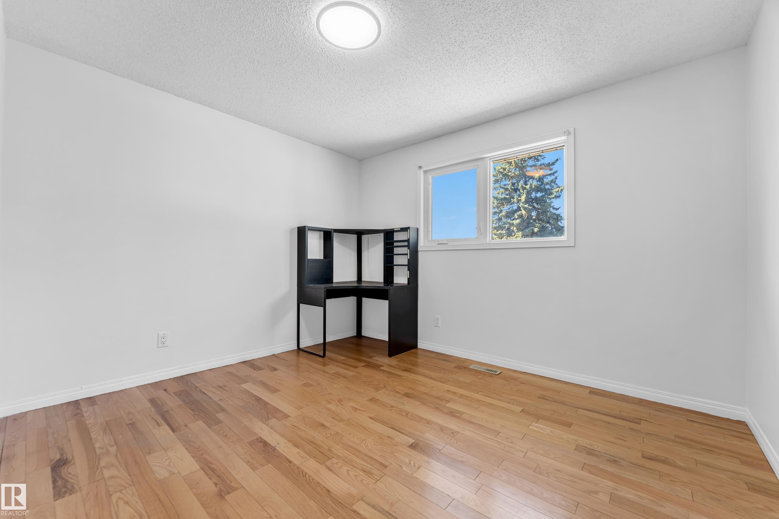 Beautifully updated bungalow tucked away in a quiet cul-de-sac on a rare pie-shaped lot backing onto a walking trail! The open-concept main floor features hardwood and tile throughout, plus a modern kitchen with quartz countertops, newer appliances, and plenty of storage. Upstairs offers three spacious bedrooms, including a primary suite with a custom built-in closet organizer and 2-piece ensuite. The renovated main bath shines with quartz counters and fresh tile. Downstairs, the fully finished basement includes a second kitchen, huge rec room, 4th bedroom, den (easily used as a 5th bedroom), and 3-piece bath. Outside, enjoy the oversized yard with room to garden, play, or entertain, plus a 24' x 28' double detached garage with space for vehicles, tools, and toys. Walking distance to schools, playgrounds, parks, and public transit, this home checks every box!