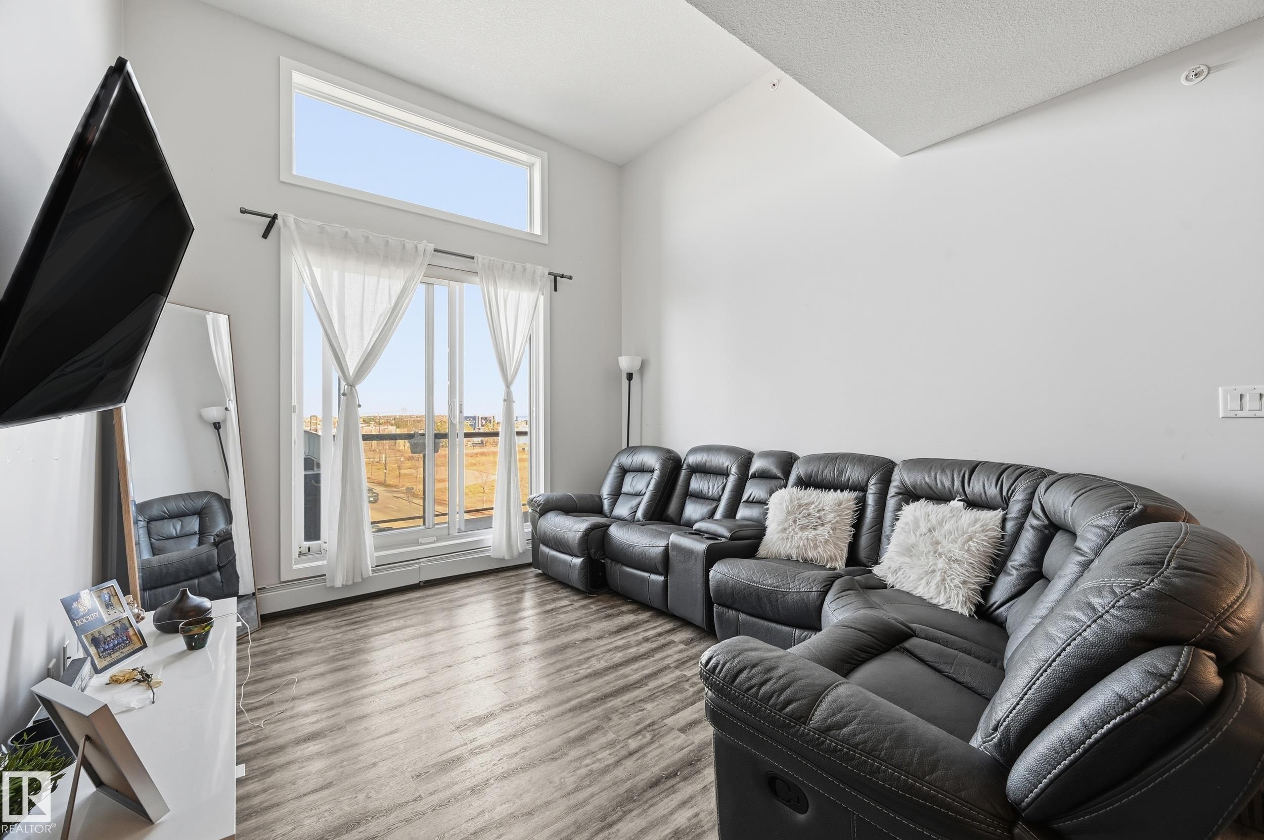 Executive Top Floor Corner Unit with 3 Bedrooms, and 2 Parking Stalls. Welcome to L?Attitude Studios where modern design meets executive living! This rare top-floor corner unit offers an Open Concept layout with Soaring 17 Foot ceilings in the living room, with floor to ceiling windows that flood the space with natural light. This home is loaded with upgrades including high-end flooring, quartz countertops in the kitchen, and bathrooms. The chef?s kitchen is an entertainer?s dream with a massive peninsula island, rich espresso cabinetry, and stainless steel appliances. The Master suite includes a walk-through closet leading to your Full Bathroom Ensuite. Two more large bedrooms. With access to the deck from all 3 Bedrooms. Stepping out onto the 292 SQFT Wrap Around Balcony with a gorgeous view overlooking the Windermere shopping plaza, perfect for relaxing or entertaining. Underground Parking with a Storage Cage. This is truly one of a kind, a stylish unit offering comfort, convenience, and luxury living.