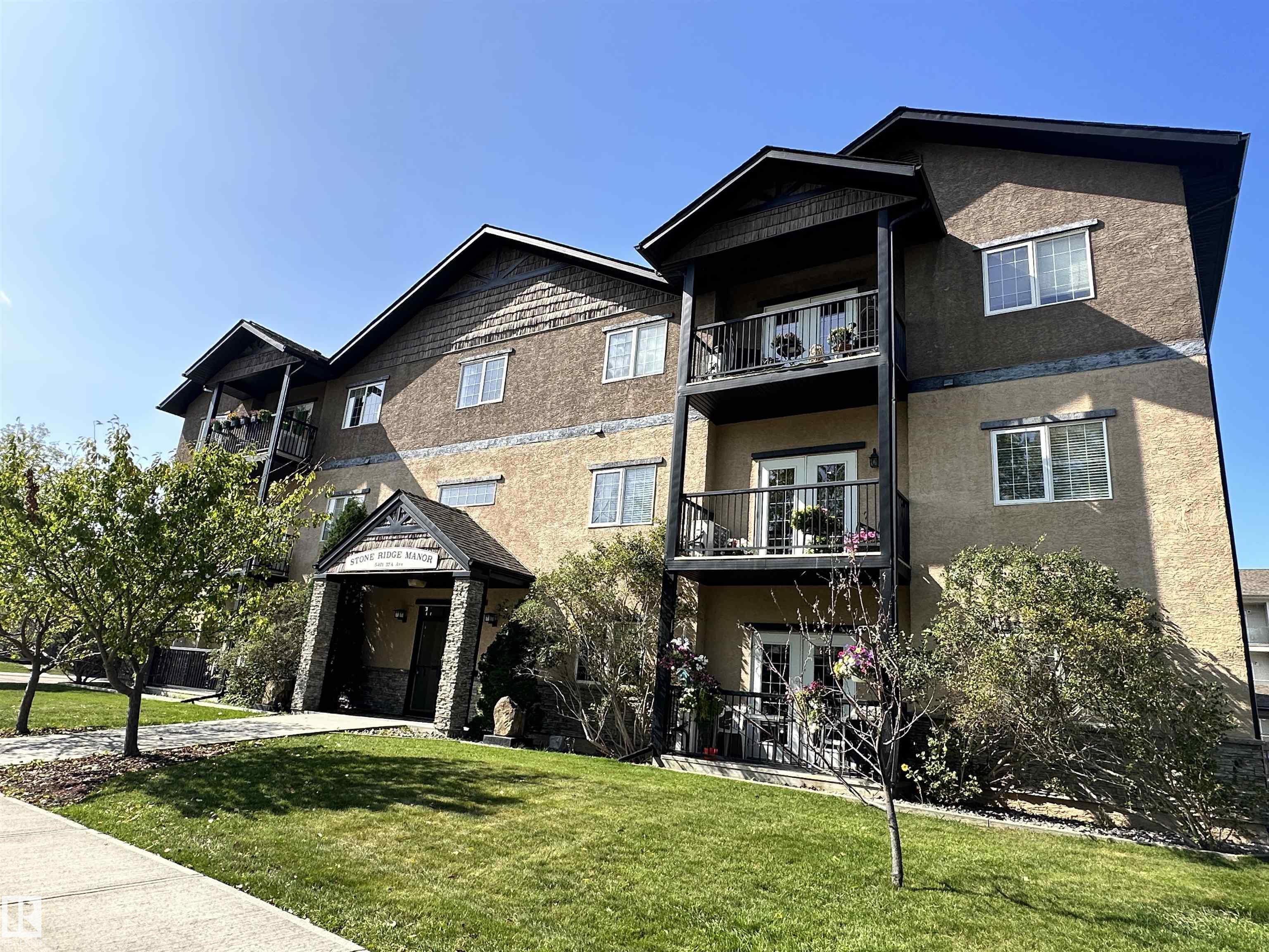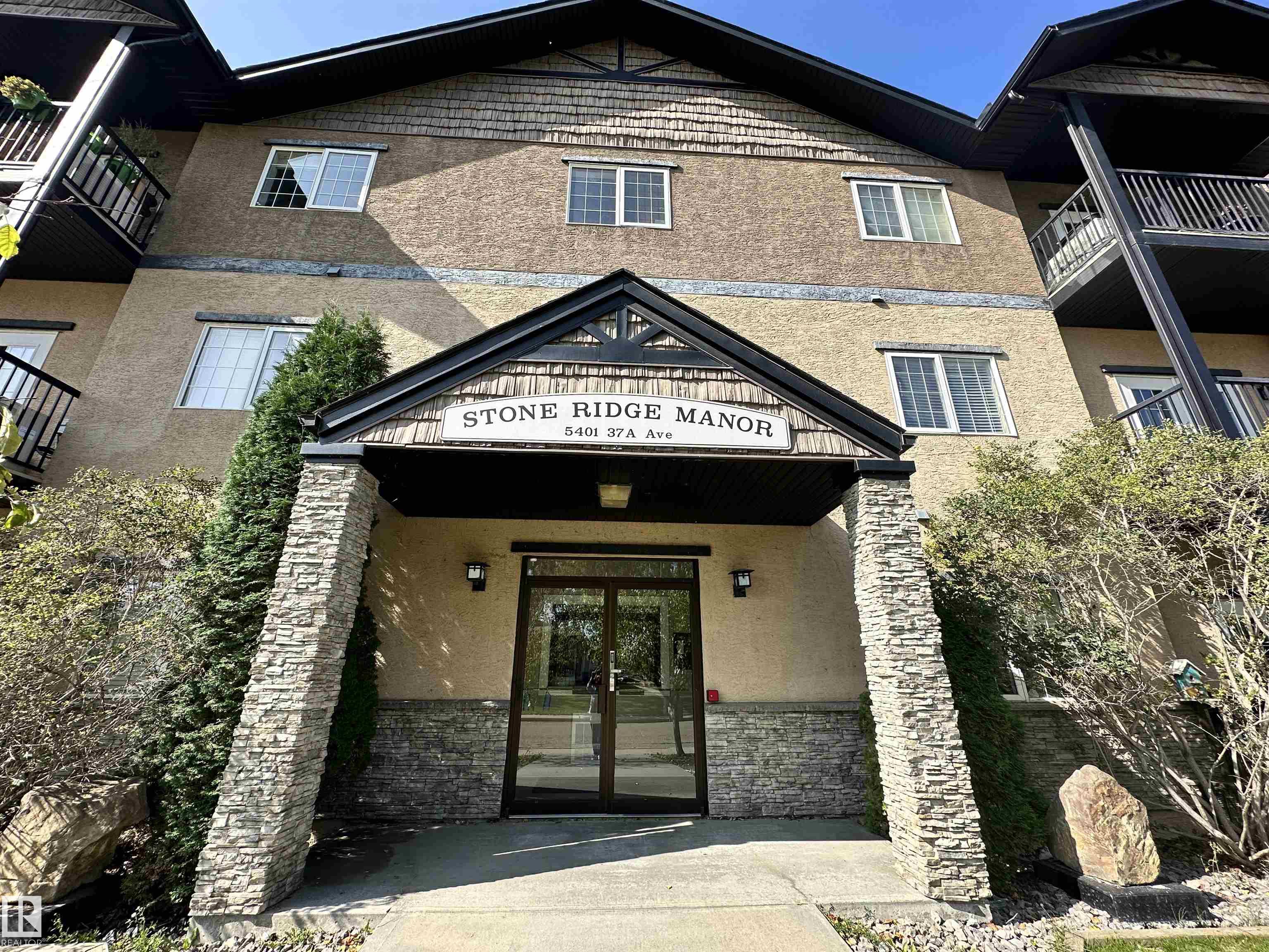 Welcome to this gorgeous move-in ready residential suite in Stone Ridge Manor! This unit has lots of space, boasting almost 1,200 sq ft, has 2 bedrooms, 2 full baths, professionally refinished bathroom, kitchen and brand-new floorings. It is equipped with new appliances including vented microwave, fridge, stove and dishwasher; all installed in 2025. Primary bedroom has 3-piece ensuite bathroom and walk in closet. Has decent size storage and laundry room. Fully central air-conditioning perfect for hot summer months and has a nice fireplace for warmth and cozy nights on winter months. It has its own designated parking stall and is professionally managed with utilities covered including heat, water, sewer and garbage. Plus, a pet is welcome! If your looking for a simple living and less maintenance, this is the perfect place for you. Don't miss this great opportunity!