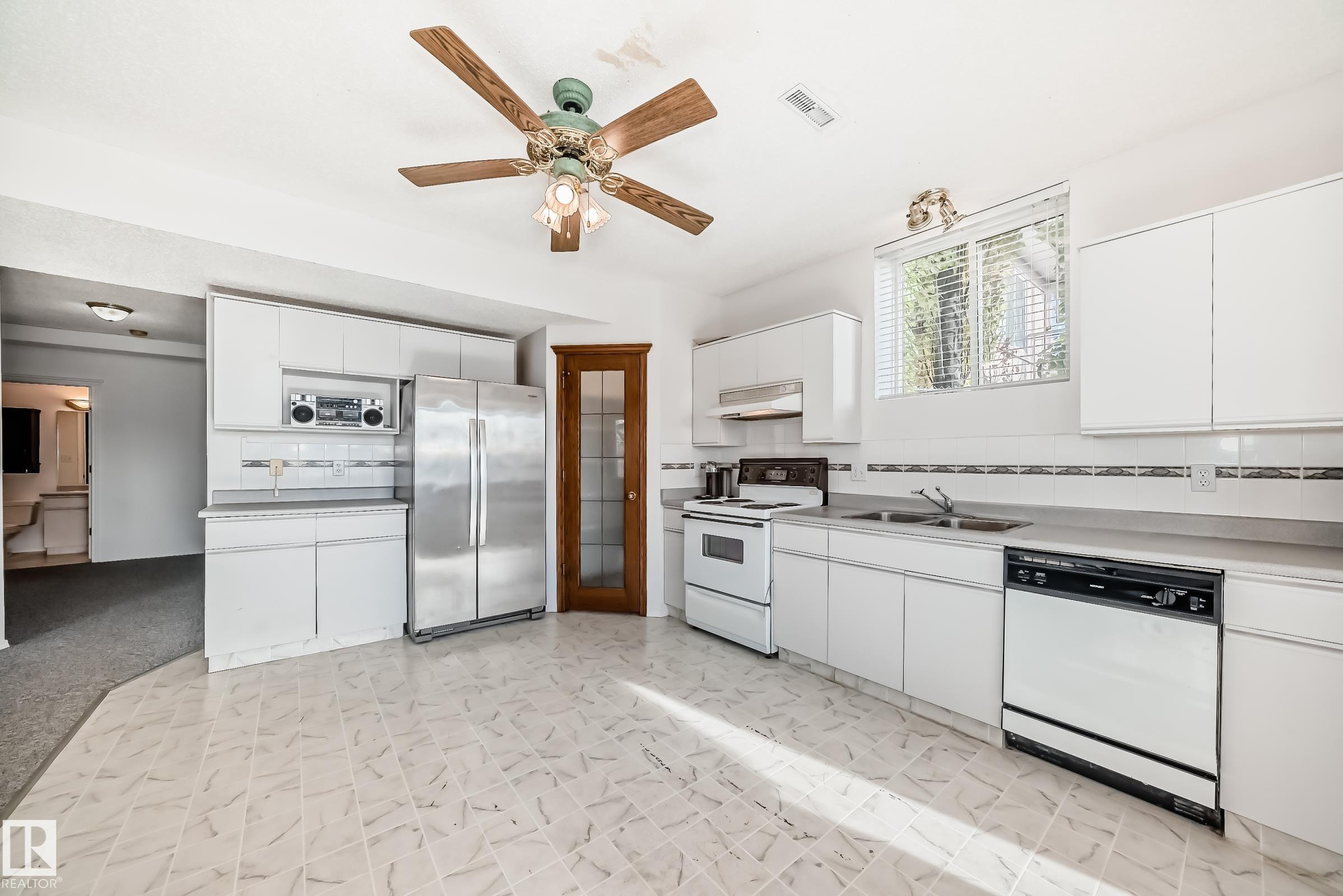 Located in the highly desired community of Elsinore. Walk-out basement, lake backing, A/C and a second kitchen. Welcome to this stunning home featuring black stucco and stone exterior, exposed aggregate with stamp border driveway and heated triple garage. Step inside to a grand formal dining area that flows seamlessly into the open-concept kitchen, complete with a large island, breakfast nook surrounded by windows, and a spacious walk-in pantry. The inviting living room offers a cozy fireplace, perfect for relaxing evenings. Upstairs you?ll find three generous bedrooms, 2 full bath, including a beautiful primary suite with a luxurious ensuite featuring a soaker tub and separate standup shower. The fully finished basement offers incredible versatility with a second kitchen, additional living room, bedroom, and full bathroom, ideal for extended family or guests. Enjoy outdoor living on the large deck overlooking the lake and expansive backyard, perfect for entertaining or quiet nights taking in the view.