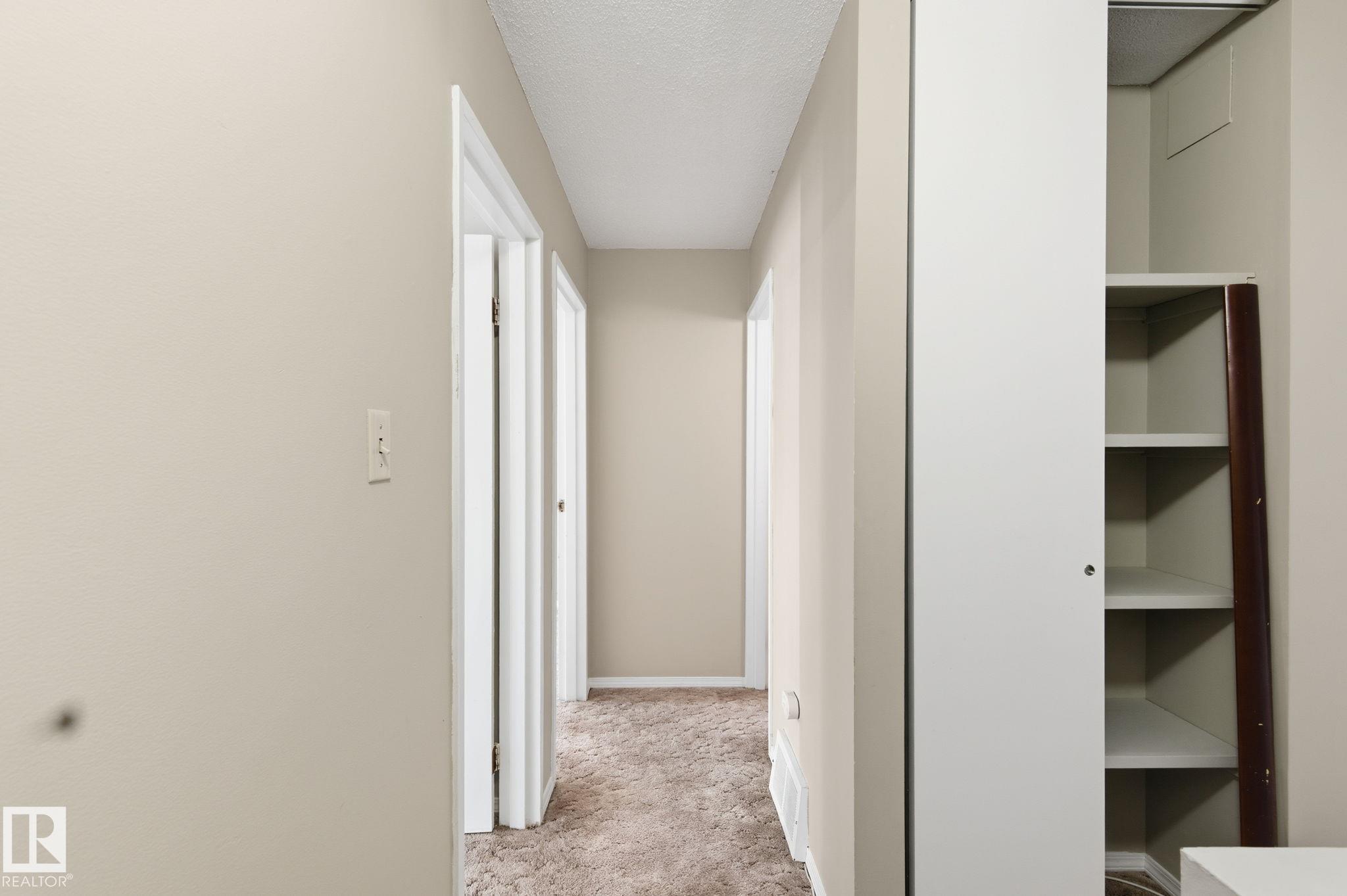 Fantastic opportunity for a well priced townhome in the family friendly community of Duggan. Great location across the street from two schools, playgrounds and sports fields. Spacious townhouse with over 1300 sq.ft. plus a basement. Upstairs offers 3 spacious bedrooms with ample closet space and 4 piece bathroom. Main floor has huge living room with patio doors leading to private fenced backyard. Kitchen, breakfast nook/dining and 2 piece bathroom complete the main floor. Basement is partially finished with laundry room and newer furnace. Well managed complex in close proximity to Southgate shopping center and LRT station. This is a great opportunity for first time buyer, someone looking to downsize or investor looking for rental property. Some photos have been virtually staged.