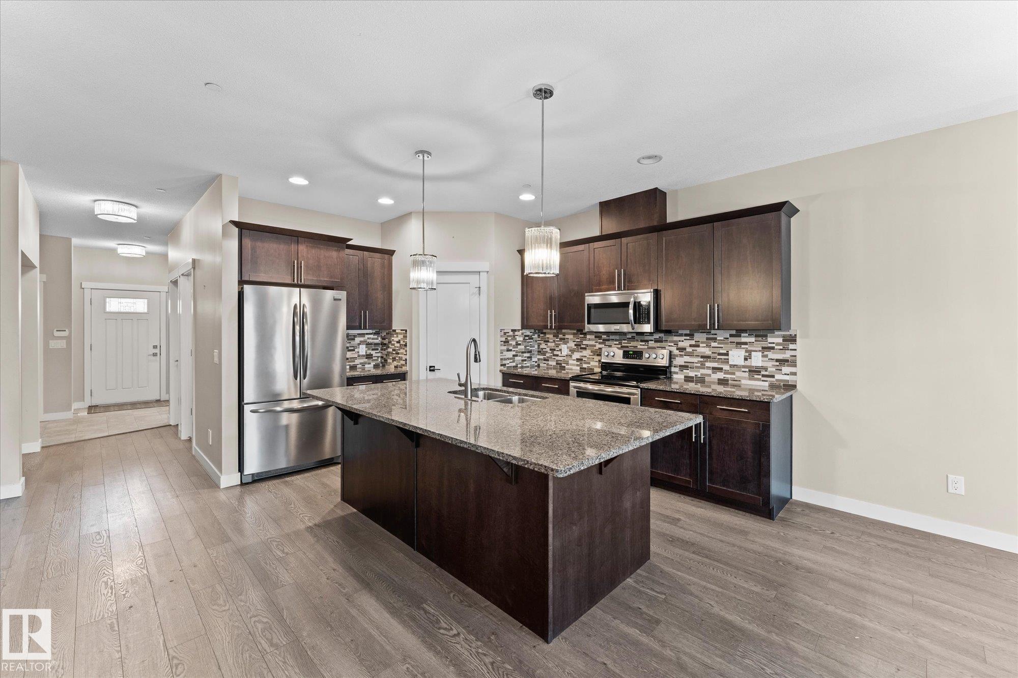 Welcome to this highly desirable attached bungalow in a sought-after 35+ community where comfort and convenience collide! This well-kept HOA neighborhood offers a low-maintenance lifestyle with landscaping and snow removal included for only $110 a month . The main floor has two bedrooms with the generous master boasting 2 closets and a grand ensuite with a soaker tub and walk-in shower. Laundry room is off the foyer for convenience. Granite counter tops gleam in the open concept kitchen which showcases tall dark cabinetry with a huge walk-in pantry and large island. The living room and dining room are generous sizes perfect for entertaining. The fully finished basement has a sprawling entertainment space, a 3rd bedroom, and full bathroom. Enjoy morning coffee or quiet evenings on the south-facing patio surrounded by beautifully maintained grounds. This community is known for friendly neighbors and pride of ownership. Come see why homes in this community are so sought after!