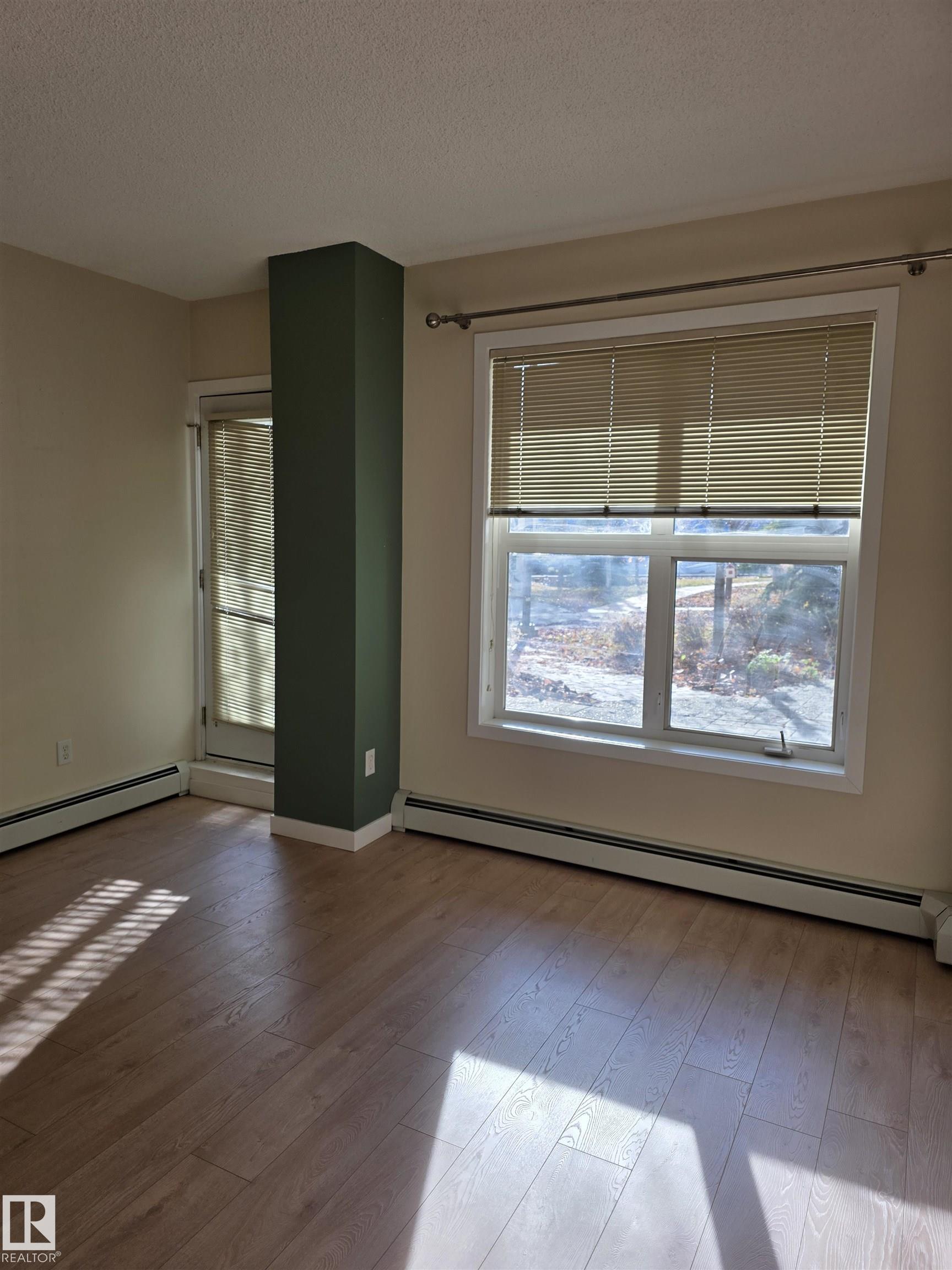 Beautifully upgraded 1-bedroom, 1-bathroom ground-floor suite featuring a private courtyard and exterior entrance. Available for immediate possession.  This bright, south-facing unit offers 9 ft ceilings, large vinyl windows, and luxury vinyl plank flooring throughout. Recent updates include fresh paint, new baseboards, and updated casings. The kitchen is equipped with nearly new stainless steel appliances, new light fixtures, and a modern backsplash.  The bathroom features updated fixtures and a convenient pocket door entry from the bedroom. In-suite laundry is included for added convenience.  An underground heated parking stall is assigned to this unit. Enjoy outdoor living with a private garden patio equipped with a gas line for BBQs.  Condo fees are very affordable and include all utilities ? even electricity. Located within walking distance to shopping centres, restaurants, and the Clareview LRT station.  This property offers an ideal combination of privacy, comfort, and convenience.