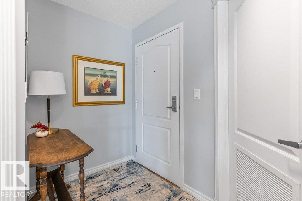 Modern, Bright & Open describe this spacious one bedroom condominium in sought after Estates at Lakeside. This home has a wide open floor plan with over 903 sq/ft of living space. The kitchen overlooks the great room & has gleaming white cabinets complimented with new quartz counter tops, undermount sink, modern appliances & ample work & storage space. The wide open great room with sunny south west windows provides ample natural light & direct access to a great covered balcony. The inviting primary bedroom has a walk in closet & direct access to the fully updated wheel chair accessible bath with a full sized walk in shower. The laundry room holds a full sized washer & dryer & the large closet off the entrance door provides additional storage. The home comes with A/C & a Titled Underground parking stall with a Storage cage. Building has a gym, car wash, social, billiards, crafts, library, theatre & internet cafe' rooms. Please note this is age restricted 55+, no pets, no smoking in building or grounds.