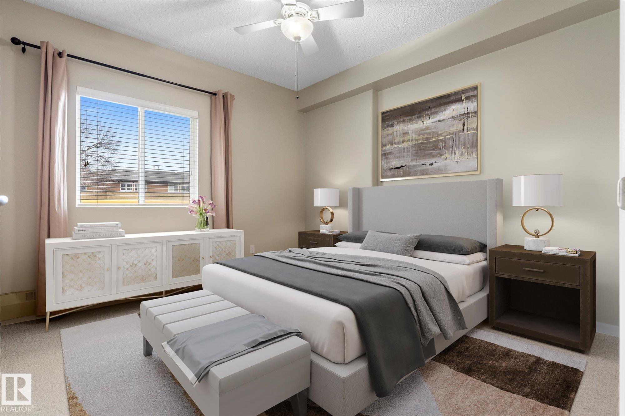 Immaculate and move-in ready! This stunning condo feels like a show suite and is located in a highly sought-after concrete and steel building overlooking the North Saskatchewan River and Edmonton?s beautiful river valley. You will be welcomed by brand-new vinyl plank flooring throughout. The updated kitchen features stylish cabinetry, stainless steel appliances, a designer hood fan, and endless counter space that opens to a spacious dining area and bright living room. Large windows flood the space with natural light, and a garden door leads to your patio. The primary bedroom offers a large walk-in closet with convenient in-suite laundry, plus there is a 2nd bedroom down the hall, additional storage room, and a separate secure storage cage on the basement level. Heated underground parking includes a car wash bay, and owners enjoy top-tier amenities: library, social lounge, billiards room, craft space, and workshop. Steps from river valley trails, shopping, and transit, this one truly checks all the boxes!