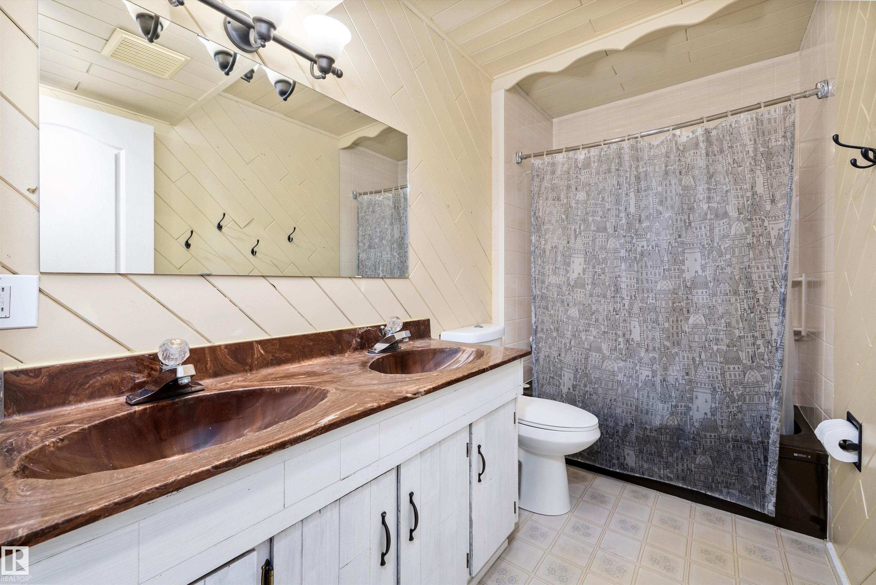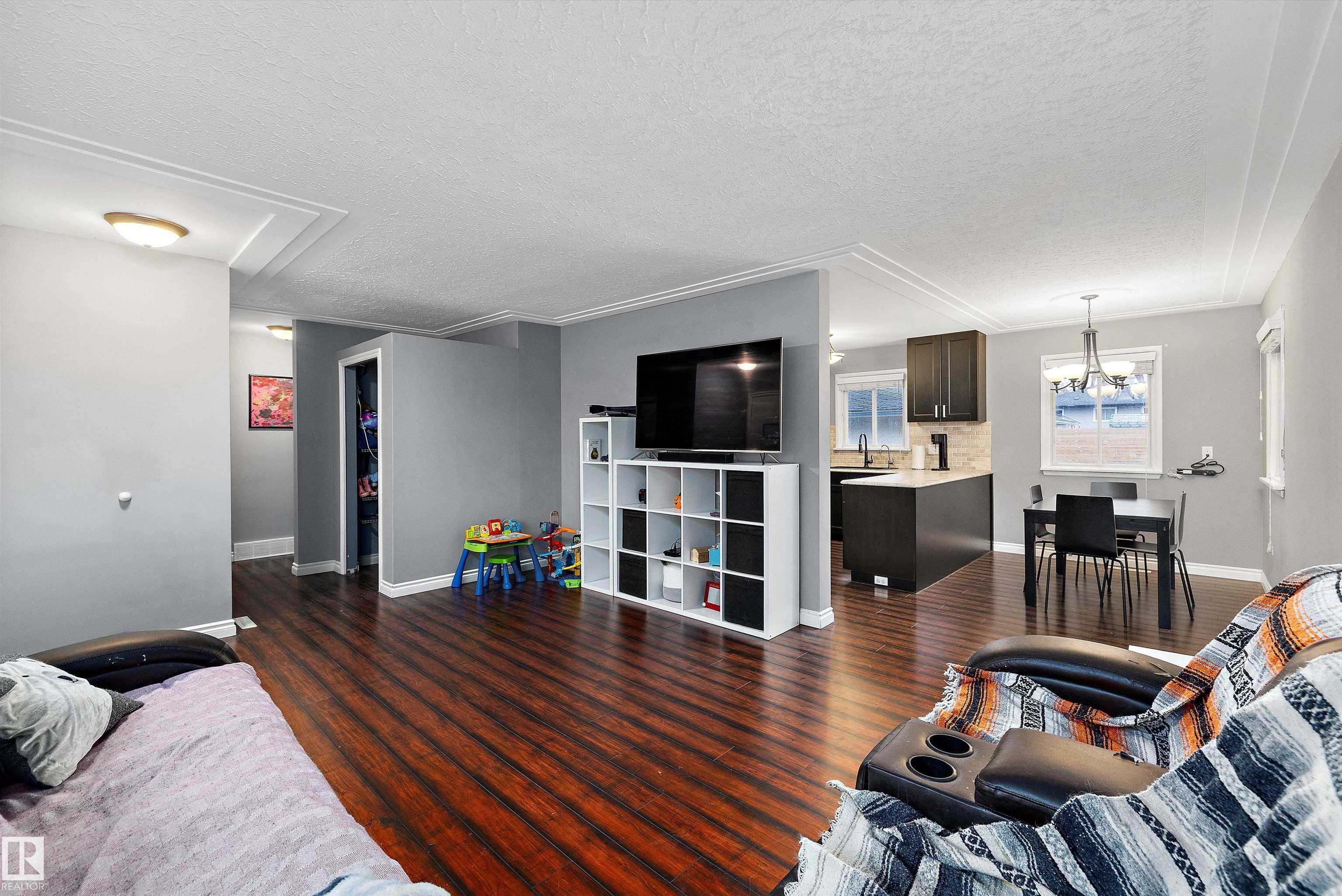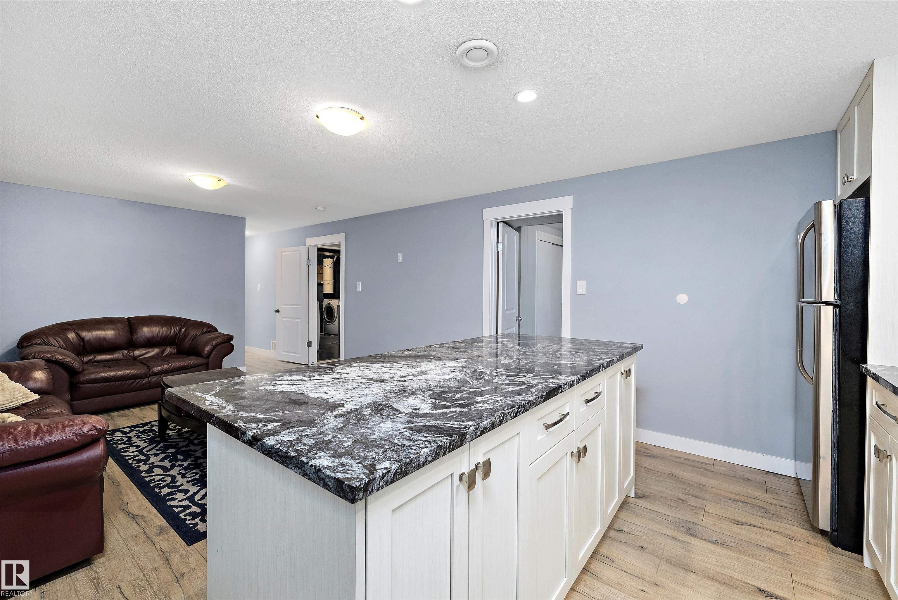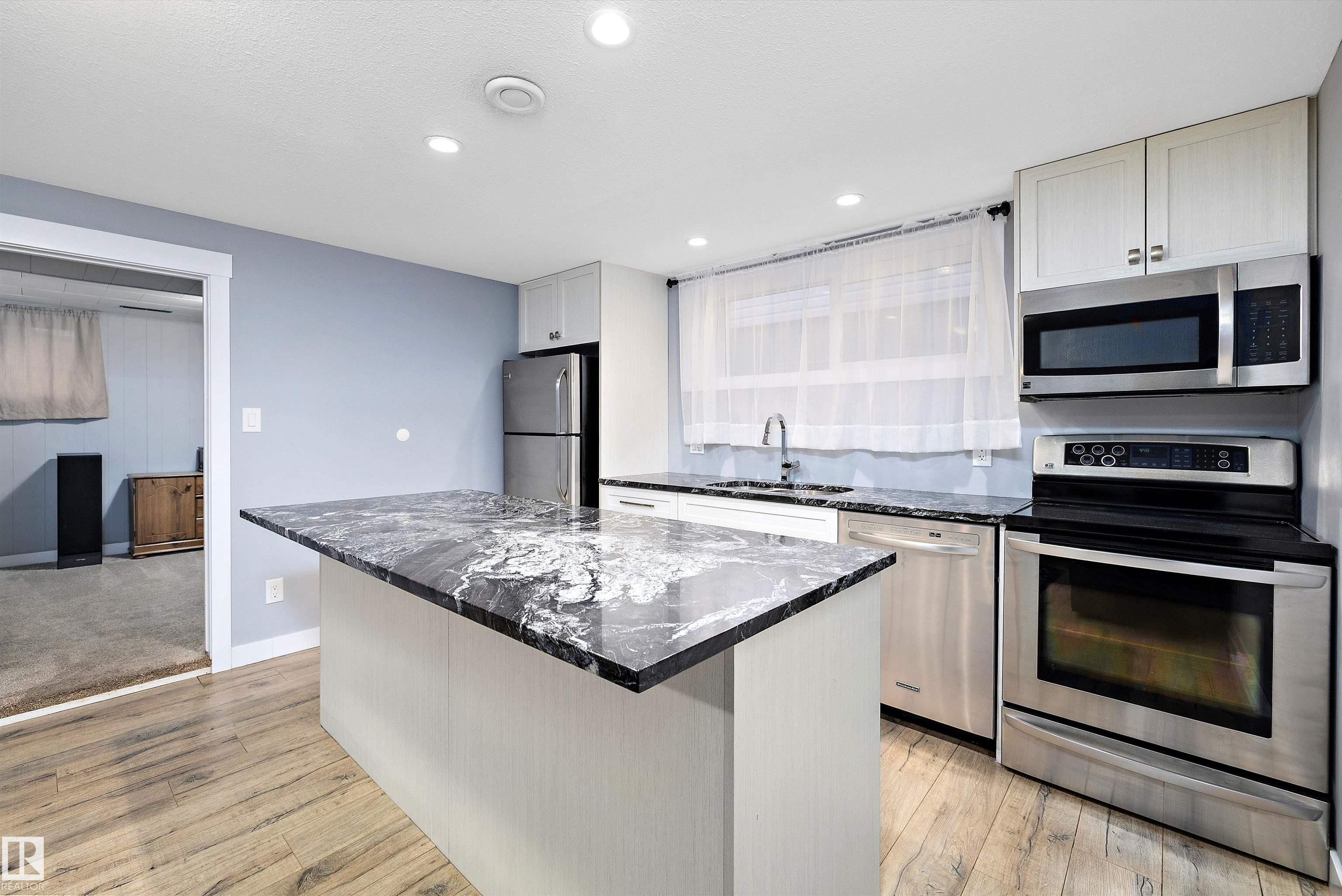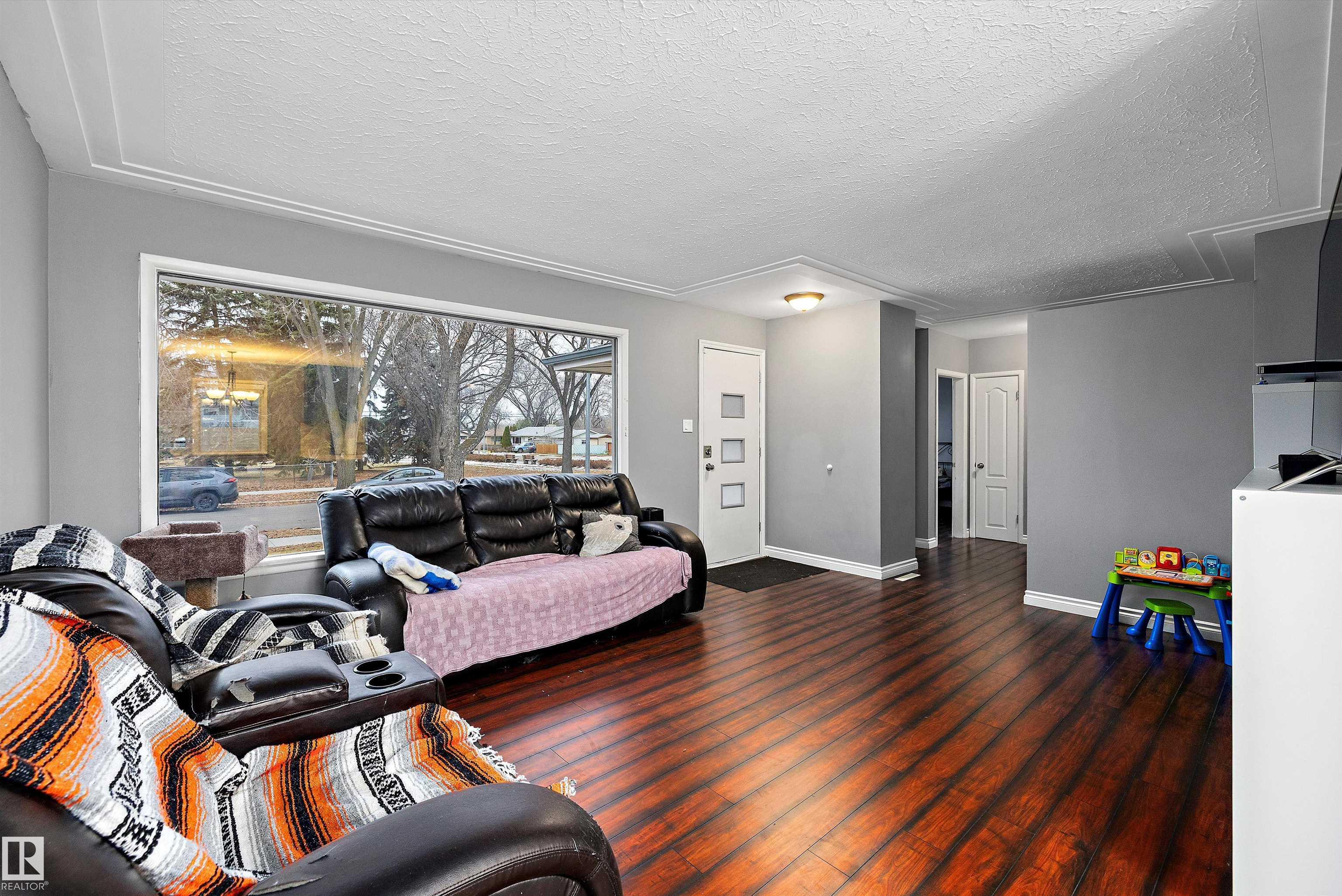 Welcome to this 5 bedroom, 2+1 Full bathroom Bungalow located in the quiet community of Newton. Property features include a classic open floor plan, L shaped living and dining area, spacious kitchen with newer cabinets, stainless steel appliances, granite sink, dishwasher, countertops & backsplash. Good sized bedrooms and 5pc bathroom complete the main floor. Fully finished basement non conforming suite offers big rec room with 2nd kitchen, 2 Full bedrooms, 4pc and another 3 pc bathroom. Central vac, insulated roof, newer flooring, baseboards, lighting, handles, faucets, paint, toilets, window coverings, newer sewer line and upgraded electrical Located on a large TREED LOT FACING THE PARK, this property also comes with an HEATED DOUBLE GARAGE & RV PARKING! Close to schools, shopping, Public transportation, This is a perfect place to call home and start building equity.