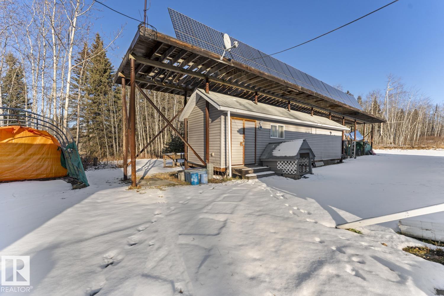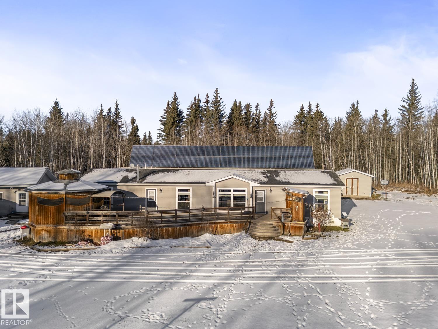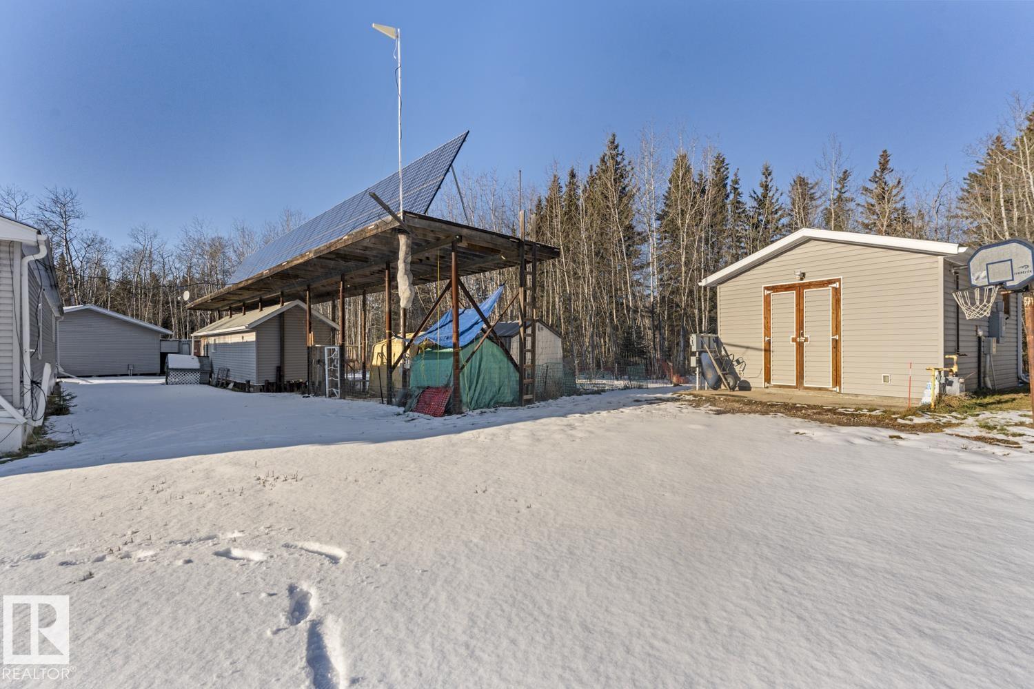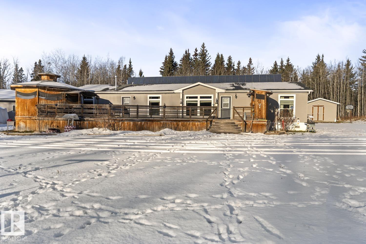 Golden opportunity for hobby farm with potential for off-grid living! 136 acres in Riverhurst area with two power sources (Atco and elaborate solar power system). Very privately situated, this property is mostly treed and backs onto Hwy 55. The manufactured home features vaulted ceilings, centre island in kitchen, 4 bedrooms, 2 bathrooms, garden door to large deck with gazebo housing a hot tub. Across the yard is above ground swimming pool area with pool deck & pool storage/change room. Large HEATED WORKSHOP, paint room, storage sheds, fenced chicken coop area (or use as dog run), fenced garden area, designated area for future garage although existing tarp sheds will stay. This property must be seen to be fully and truly appreciated - careful thought and planning has gone into developing this exceptional property. Only 10 minutes from Cold Lake, close to Imperial Oil, Strathcona, CLAWR, 30 minutes to Bonnyville and 20 steps to nature's beauty that can be your very own peaceful and private sanctuary.