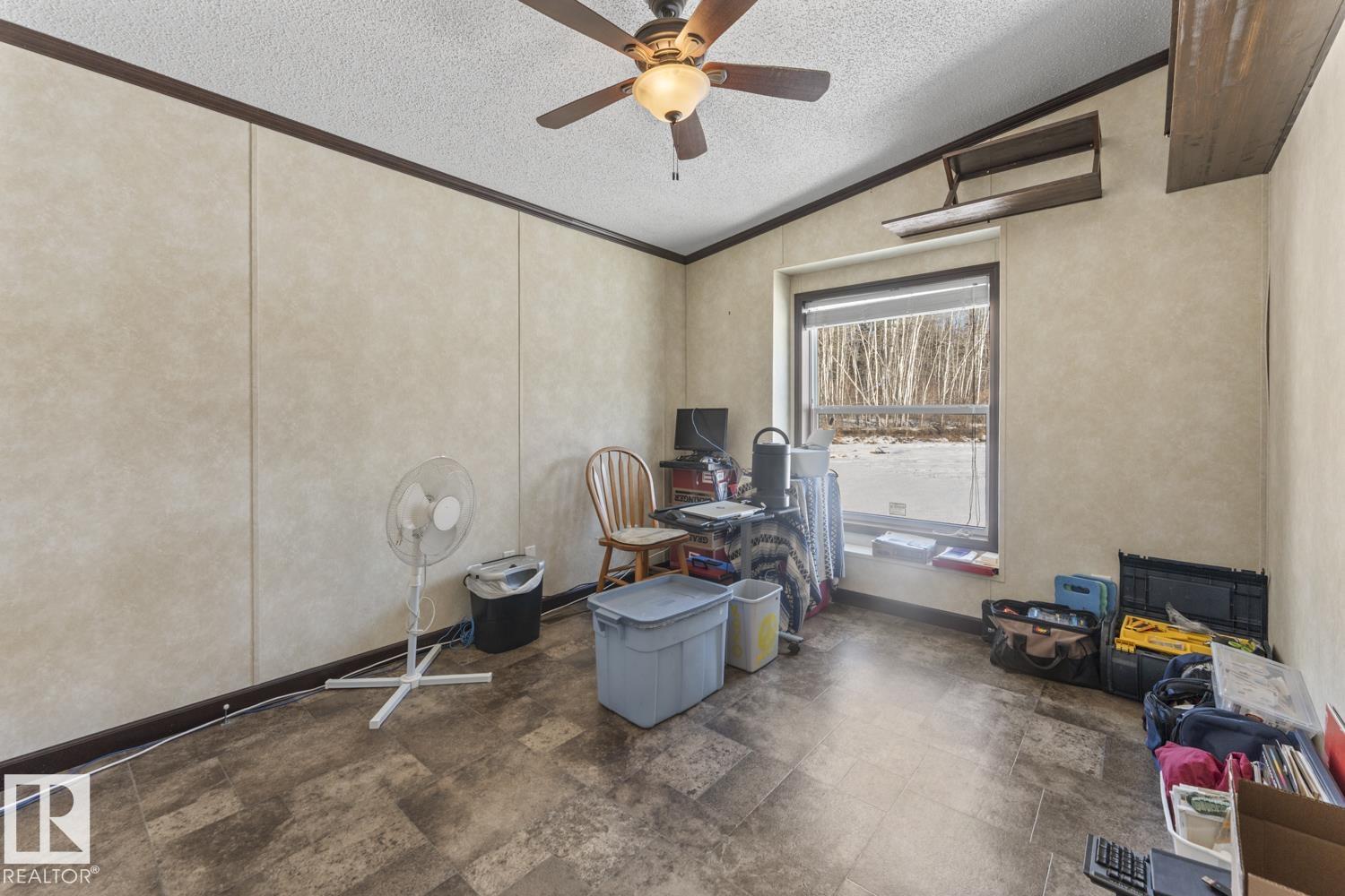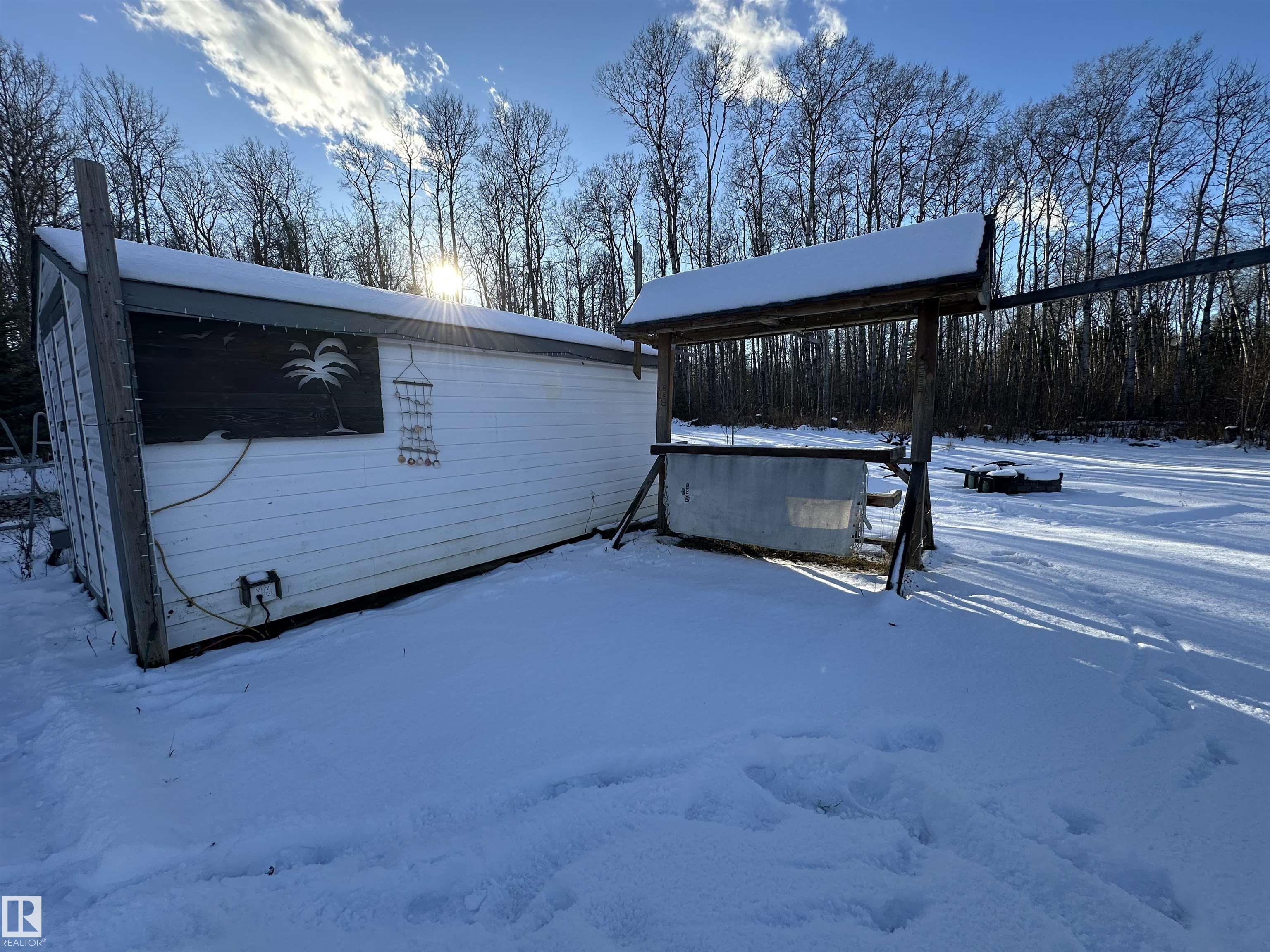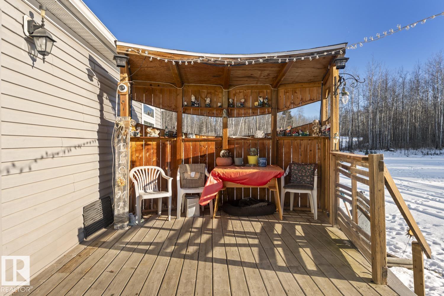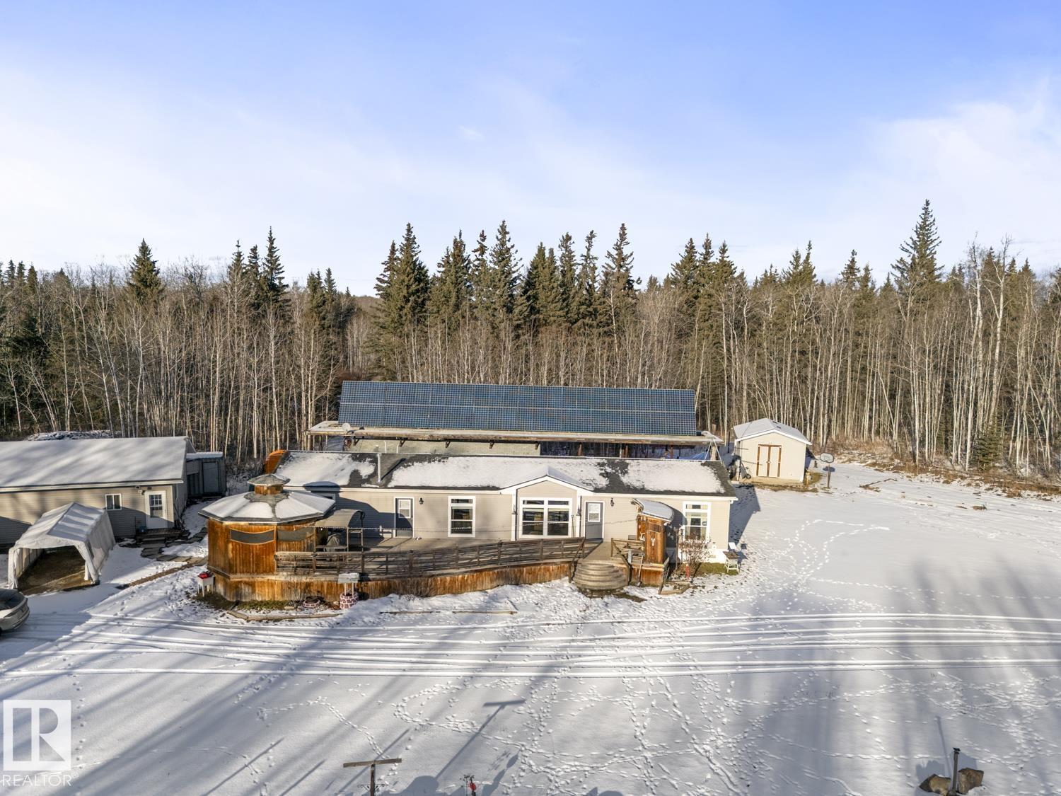 Golden opportunity for hobby farm with potential for off-grid living! 136 acres in Riverhurst area with two power sources (Atco and elaborate solar power system). Very privately situated, this property is mostly treed and backs onto Hwy 55. The manufactured home features vaulted ceilings, centre island in kitchen, 4 bedrooms, 2 bathrooms, garden door to large deck with gazebo housing a hot tub. Across the yard is above ground swimming pool area with pool deck & pool storage/change room. Large HEATED WORKSHOP, paint room, storage sheds, fenced chicken coop area (or use as dog run), fenced garden area, designated area for future garage although existing tarp sheds will stay. This property must be seen to be fully and truly appreciated - careful thought and planning has gone into developing this exceptional property. Only 10 minutes from Cold Lake, close to Imperial Oil, Strathcona, CLAWR, 30 minutes to Bonnyville and 20 steps to nature's beauty that can be your very own peaceful and private sanctuary.