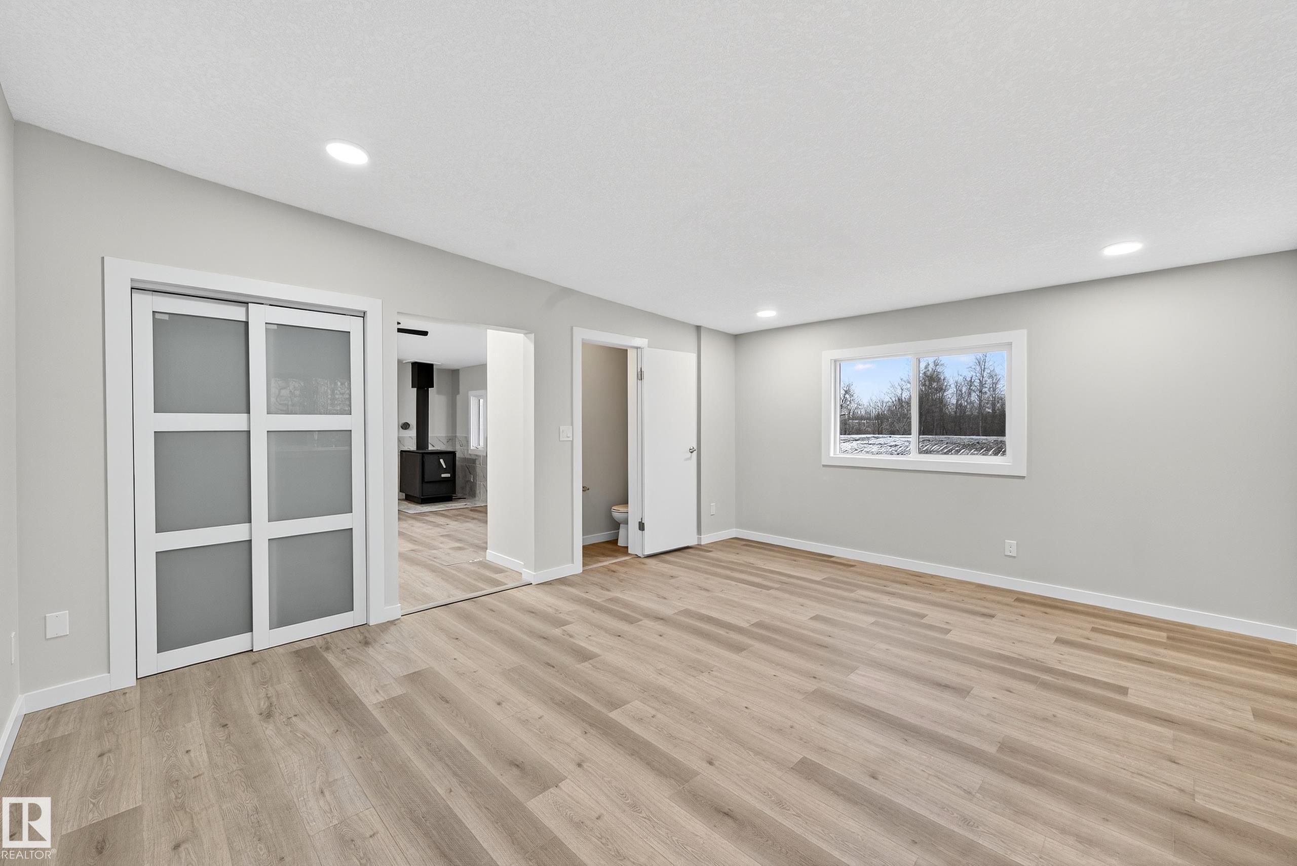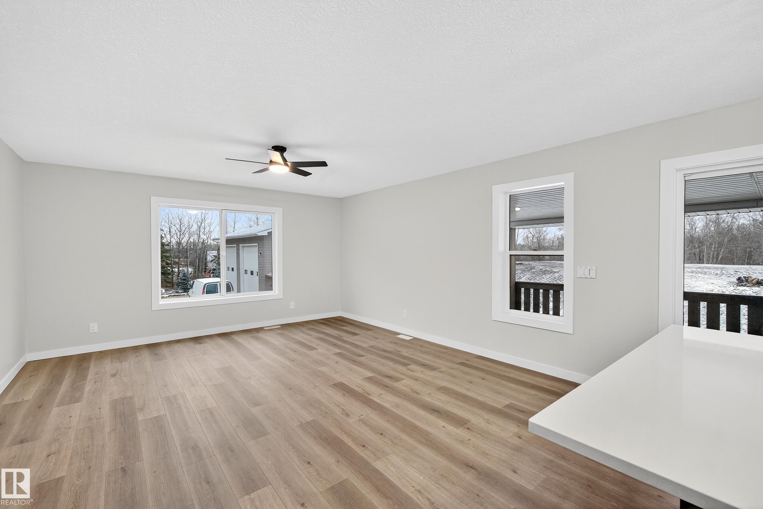 Nestled on 3.07 private acres with a DRILLED WELL and septic tank & field, this peaceful country retreat backs onto a serene creek and protected environmental reserve. A potential second building site offers walk-out basement possibilities with stunning natural views. Modern, fresh & bright, this extensively upgraded 1,548 sq ft home features new vinyl plank flooring & baseboards, vinyl windows, fresh paint, and updated lighting. The open-concept great room seamlessly connects living and dining with the chef?s kitchen, complete with quartz countertops, abundant cabinetry, a large island, and stainless steel appliances. The primary bedroom includes a 2-pc ensuite and private deck access, complemented by two additional bedrooms and full 4-pc bath. A convenient crawl space provides extra storage and wood burning stove adds cozy warmth. Completing this exceptional property is a BRAND-NEW 30' x 40' shop with 16' ceilings, two 14' industrial doors, and concrete slab reinforced with pilings...a mechanic?s dream!