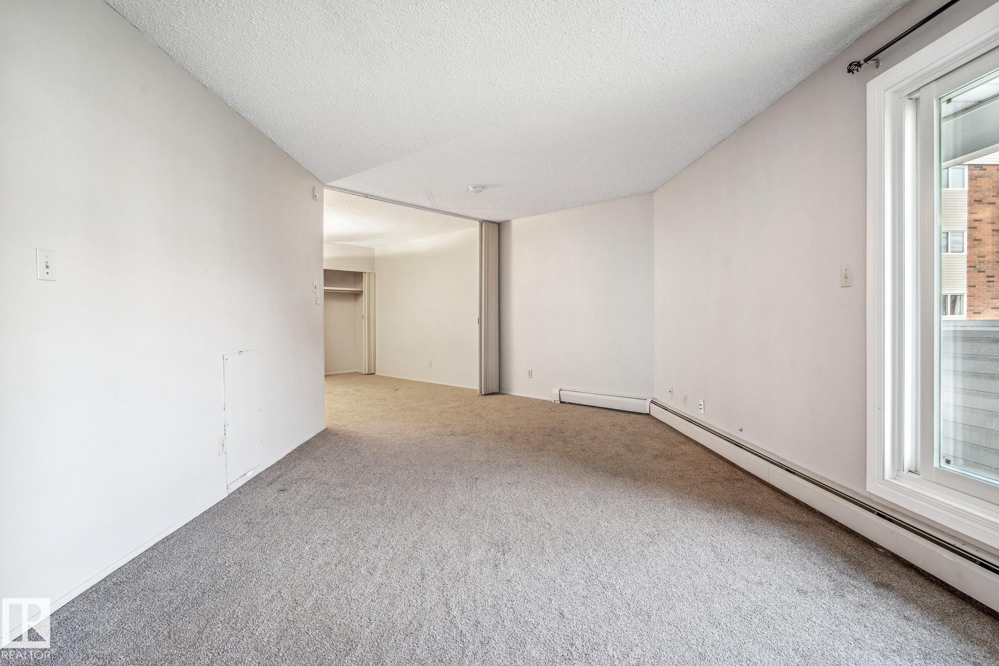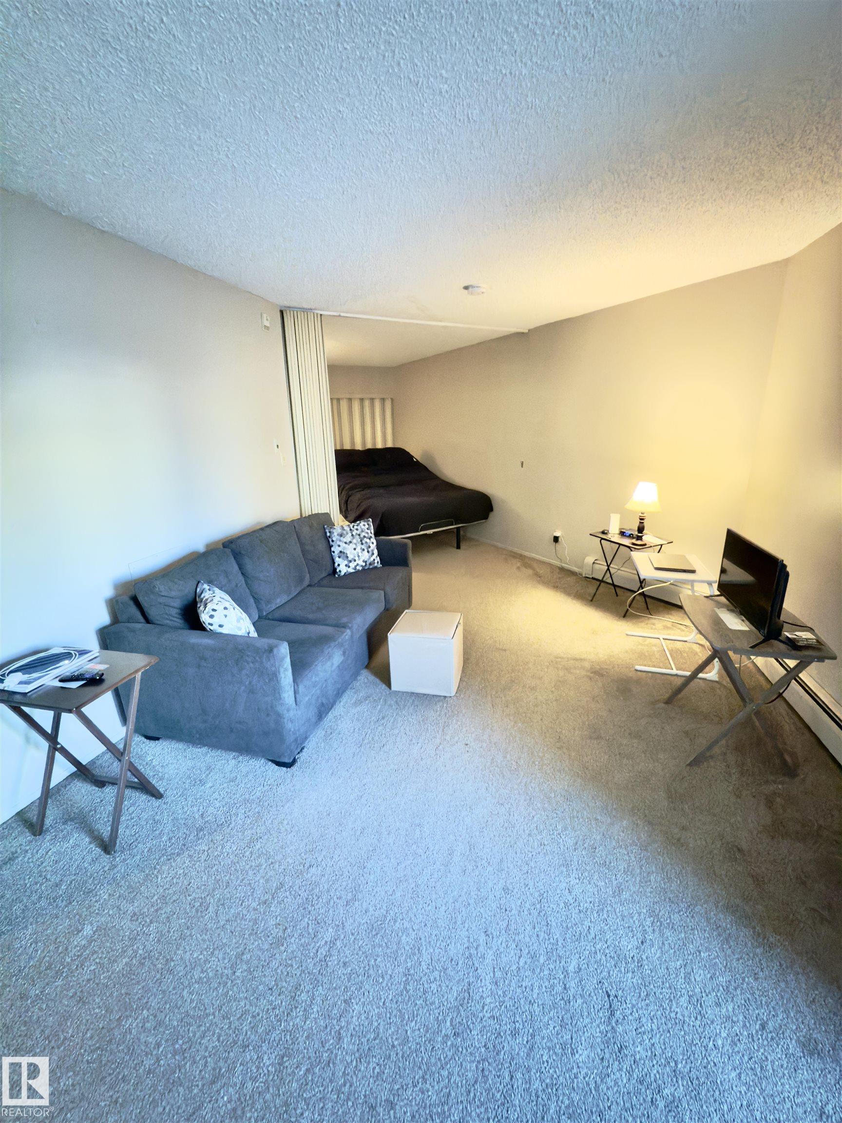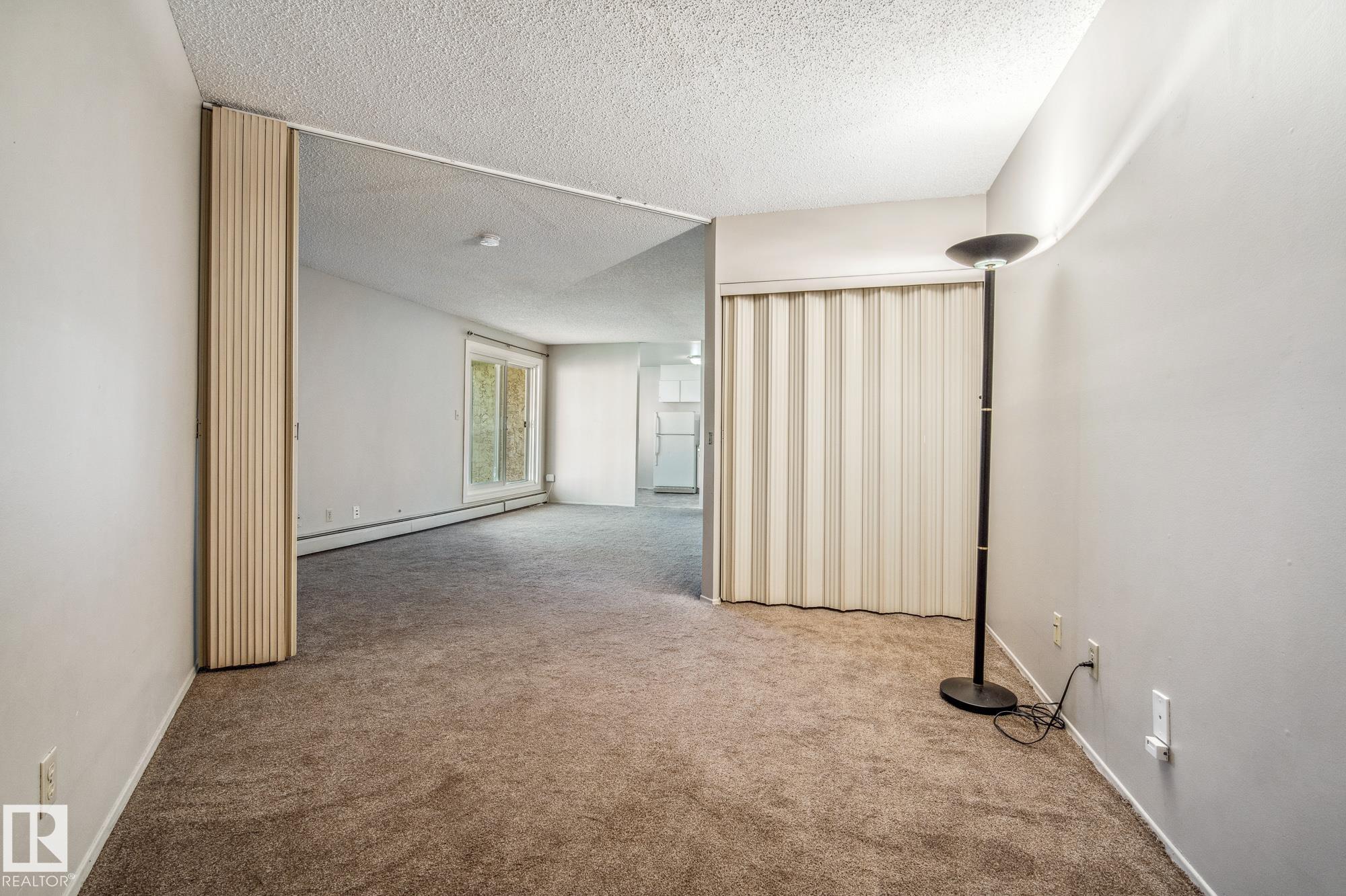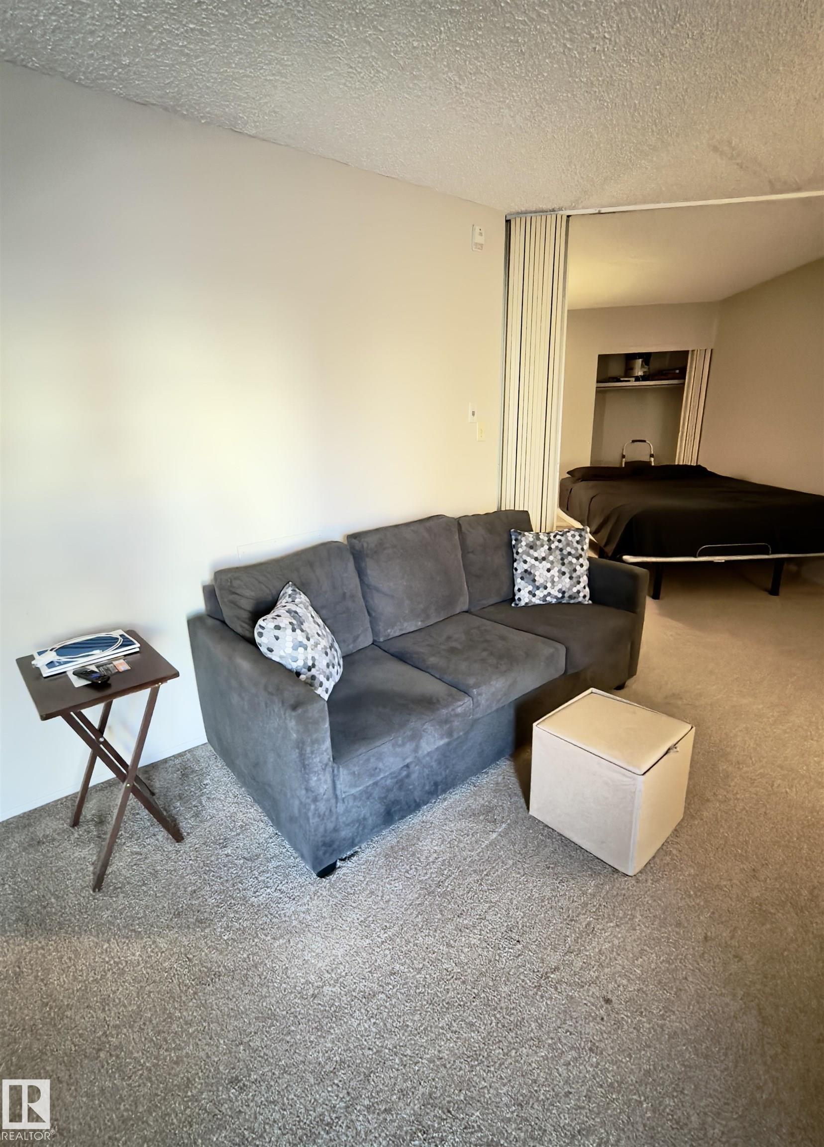 Amazing opportunity to own a spacious studio suite close to public transit, schools, malls, restaurants, and more! This unit features a large living space, a 4pc bathroom, an outdoor parking stall, & covered balcony. Updates include carpet, countertops, electric stove, paint, vinyl windows & patio door. Condo Fees include electricity, heat, water, & waste. The complex has onsite property management, an onsite daycare, outdoor tennis & basketball court, keyless entry, exercise room, indoor pool, and security cameras. Thinking of becoming an investor? You also have the option to enter into a rental pool managed by the property management. The furniture is also INCLUDED (purchased last year): dresser, mattress, adjustable bed frame, couch, side tables, kitchen dining table & kitchen chairs. The complex is surrounded by green space and is minutes from both Century Park & Southgate Transit Stations providing easy access throughout the city. This home is a great opportunity and available for quick possession!