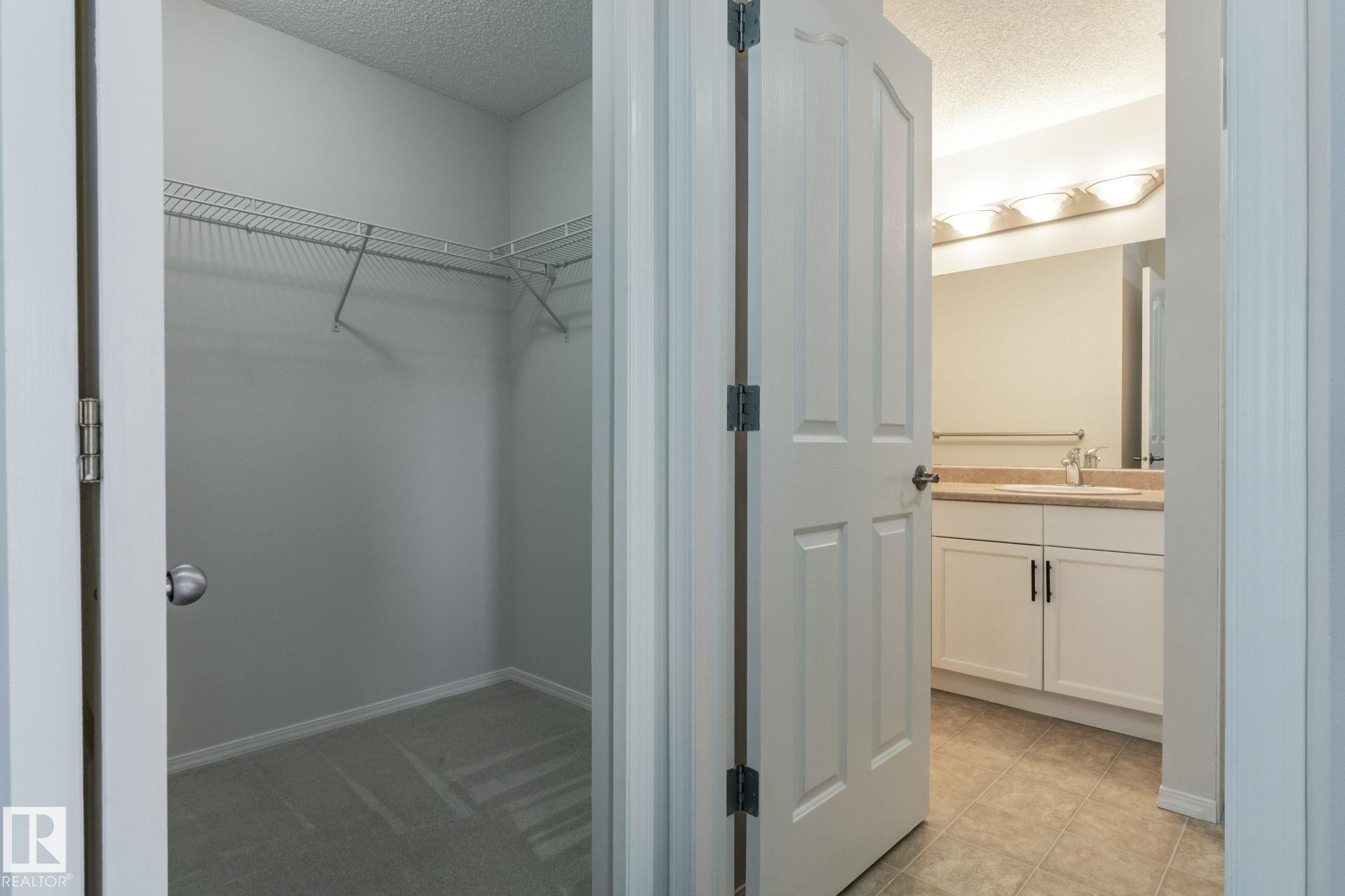Welcome to Grande Lewis Estates! This bright, 2-bed plus den/office unit blends comfort and convenience with wonderful outdoor space. Enjoy central AC, a cozy gas fireplace, and that spacious balcony with serene views. The kitchen features crisp white cabinetry, tile backsplash, and ample natural light. Double oven is a great chef's touch! Primary bedroom features an ensuite and walk-in closet. In-suite laundry is a convenient touch. Includes 2 parking stalls (#331 & #336) and is well located in the heart of Lewis Estates with quick access to Henday, Whitemud, shopping, and amenities. Building updates are fully paid, with a strong reserve fund for peace of mind. A rare find in a prime location across the road from Lewis Estates Golf Course.