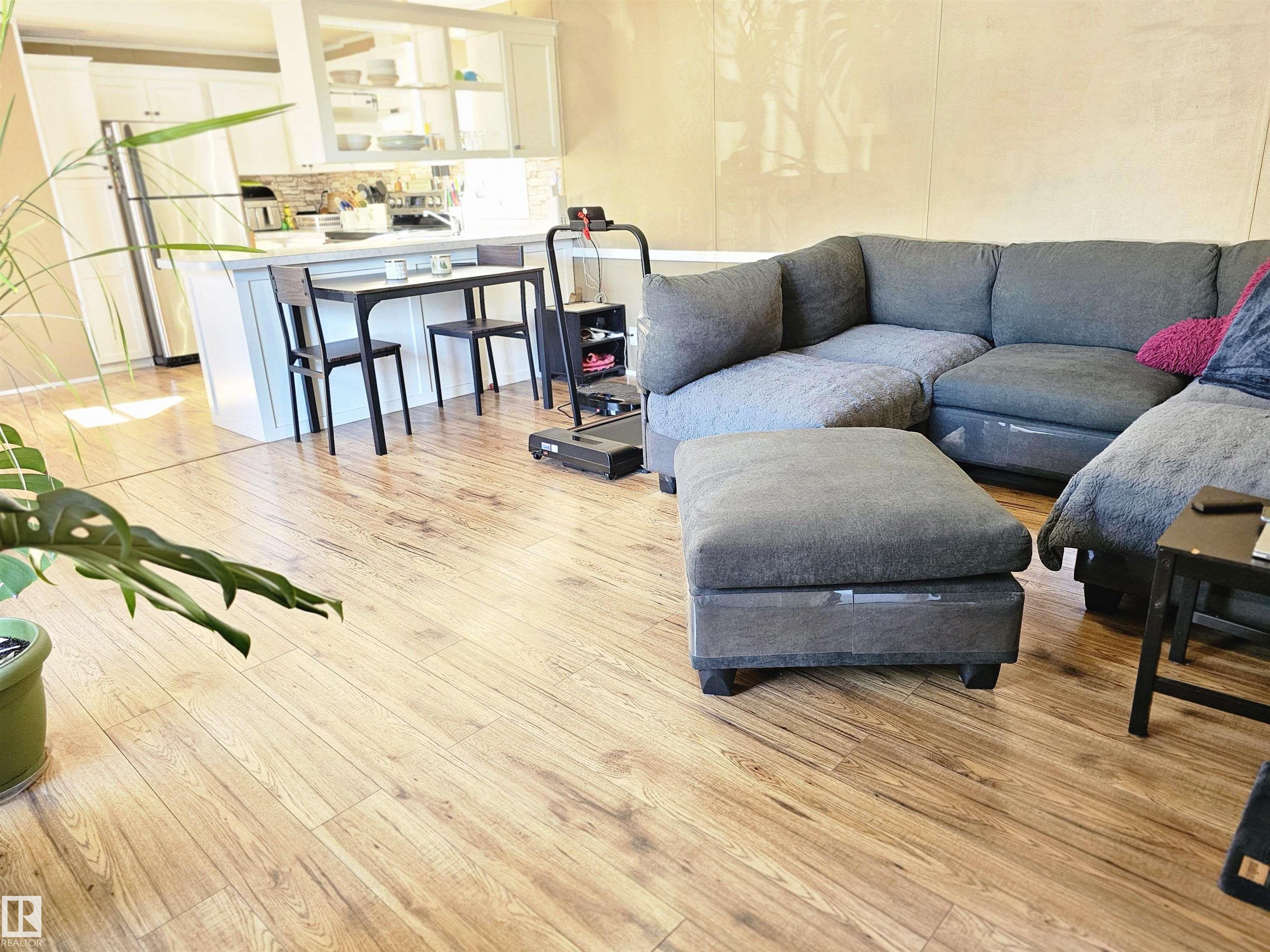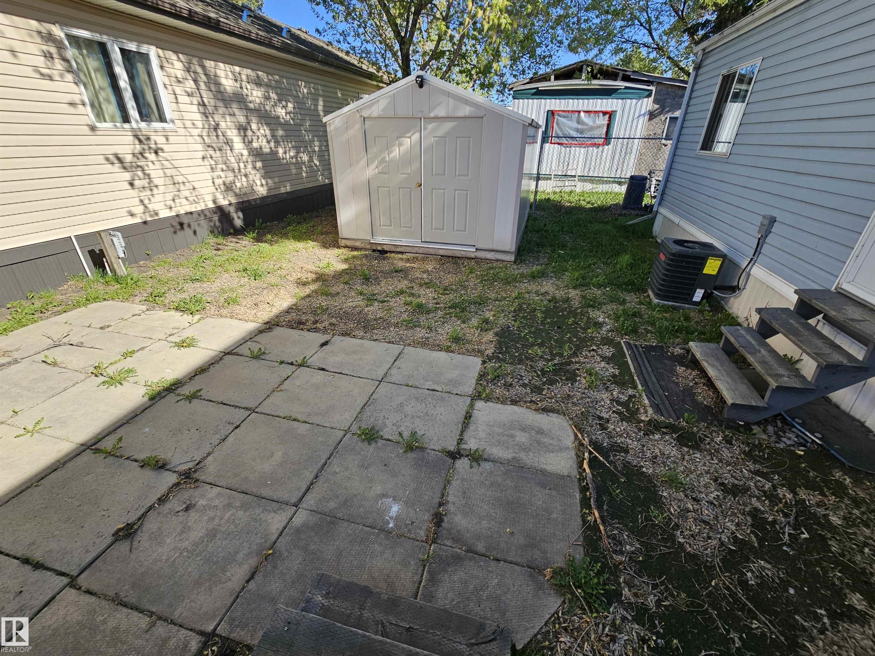 Welcome to this bright and modern 3-bedroom, 1-bath home located in Mobile City Estates. Recently renovated throughout, this home offers a fresh, inviting interior with an open-concept living area, upgraded flooring, and contemporary finishes. The kitchen features newer appliances, ample counter space, and great storage, making it perfect for everyday living and entertaining. Stay comfortable year-round with central A/C, and enjoy the convenience of a spacious primary bedroom plus two additional bedrooms ideal for family, guests, or a home office. Outside, the lot offers room for parking, a storage shed, and space for outdoor enjoyment. Move-in ready and walking distance to shopping, parks, and Spruce Grove amenities?this is an excellent opportunity to own an affordable, updated home in a well-managed community.