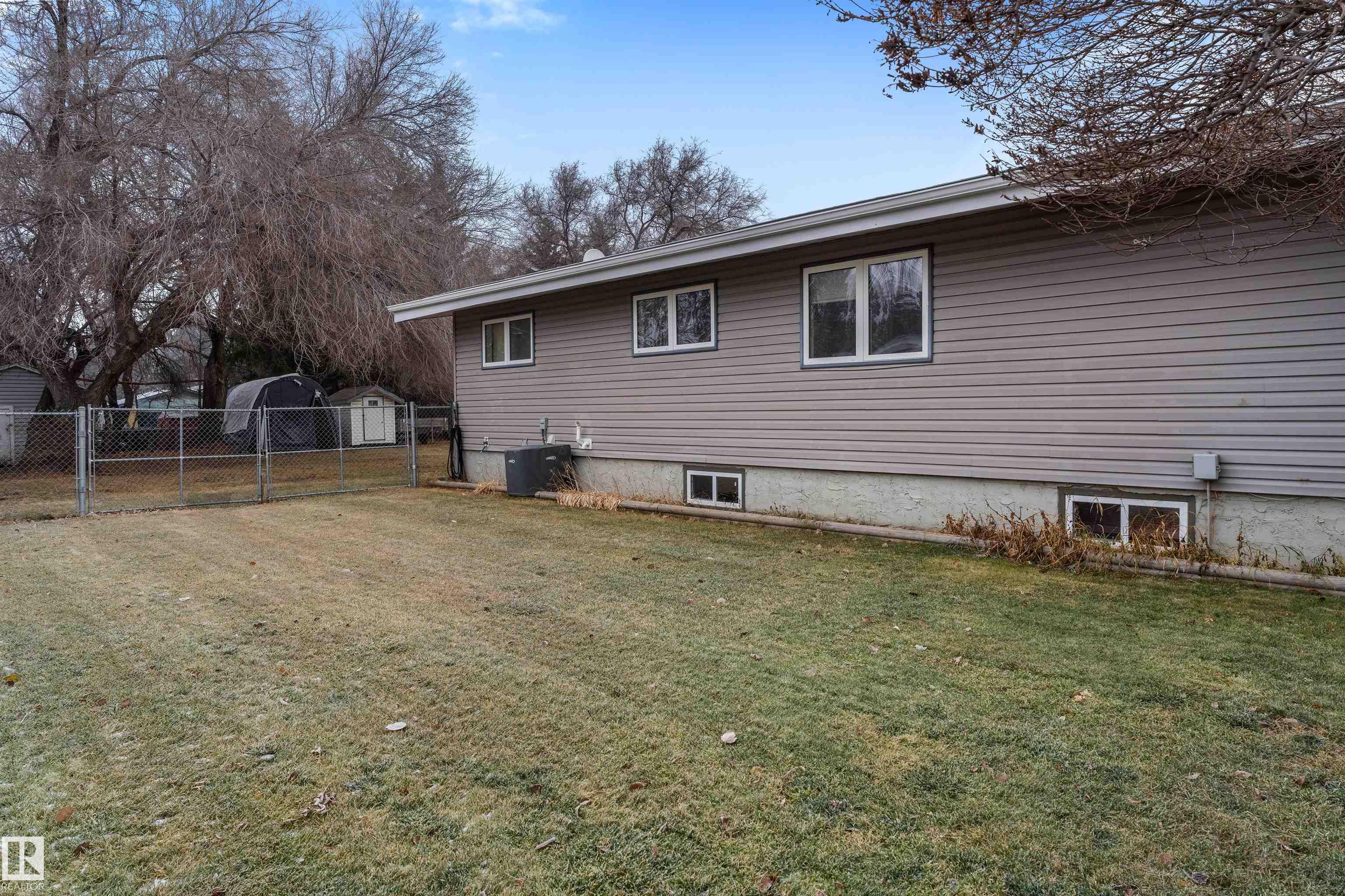 You won't believe just how massive this lot is; 1/3 of an acre right in town! Step into 2,281 sqft of timeless, air-conditioned living in this classic bungalow, peacefully nestled on a mature tree-lined street. The main level offers 3 bedrooms all serviced by a 4pc bathroom, including a serene primary retreat with private 2pc ensuite. A modern colour palette, & newer windows throughout enhance the home?s contemporary appeal, while hardwood flooring and vaulted ceiling add a touch of cozy elegance to the south-facing living room. The expansive kitchen exudes warmth & functionality, and paired with the dining room, they're ideal for everyday living & entertaining. A finished basement reveals a vast recreation room, cold room, storage area, & huge 4th bedroom, making convenient use of the 3pc bathroom & laundry. The sprawling lot showcases a beautifully fenced backyard with more than enough room for virtually any size garage or shop! 20ft gates on either side allow you to drive in one side and out the other!