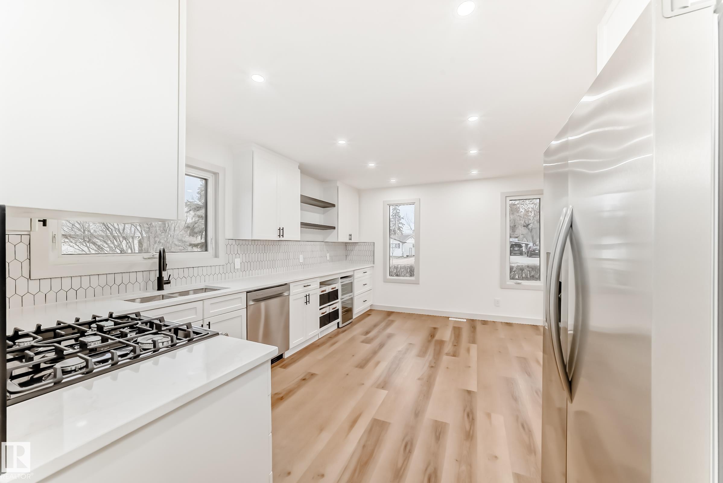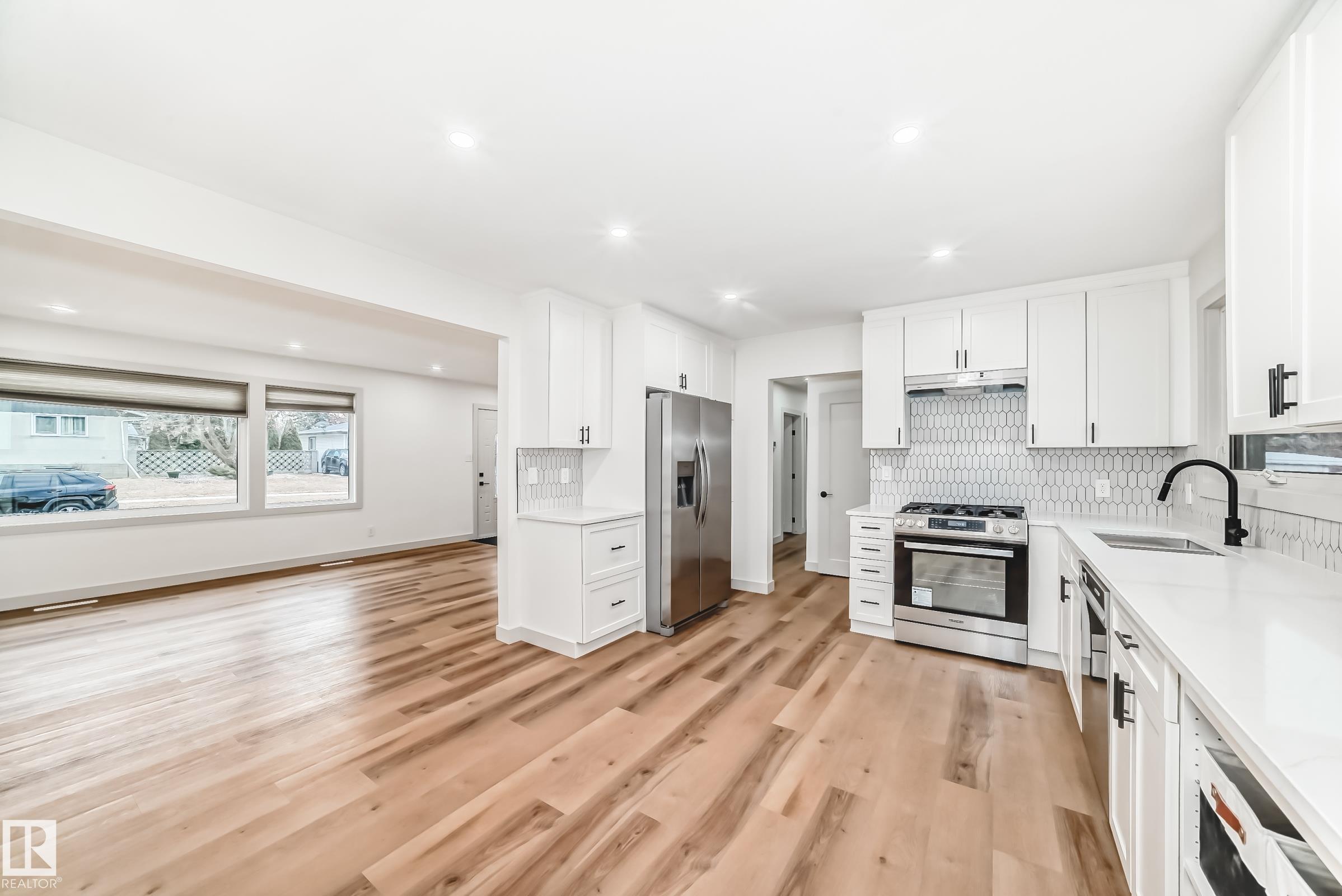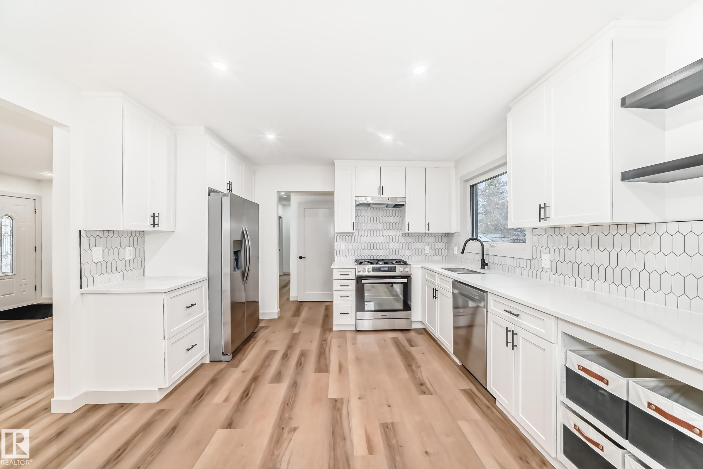 Welcome to this Stunning immaculate, fully renovated bungalow located in the picturesque Sturgeon Heights community. This beautiful four-bedroom, two-bath home features modern upgrades throughout, including brand-new vinyl flooring and exquisite quartz countertops. The kitchen boasts top-of-the-line, brand-new appliances, and the home is equipped with a high-efficiency furnace and a new water tank for peace of mind. Enjoy comfort year-round with air conditioning and a heated garage. Huge corner lot with potential RV parking The exterior is just as impressive, featuring brand-new vinyl siding and Hardie board for a sleek finish!