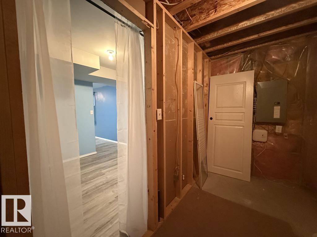 Charming 2 Storey in wonderful Spruce Village. Featuring 3 bedrooms up with 2 full baths and an additional 1 bedroom, 1 bath in the basement. This beautiful home is west facing with a covered front porch; enhancing the inviting curb appeal. The large welcoming front entrance, leads to a spacious, open concept main floor, where the living room / dining room / kitchen flow seamlessly together. Ideal for entertaining. The bonus space in the basement with a wet bar is prefect for a play space or tv room. Location is ideal for schools, parks, and shopping with quick access to HIWAY 16. Back alley access to the energized parking pad. Option to build a garage is there also.
