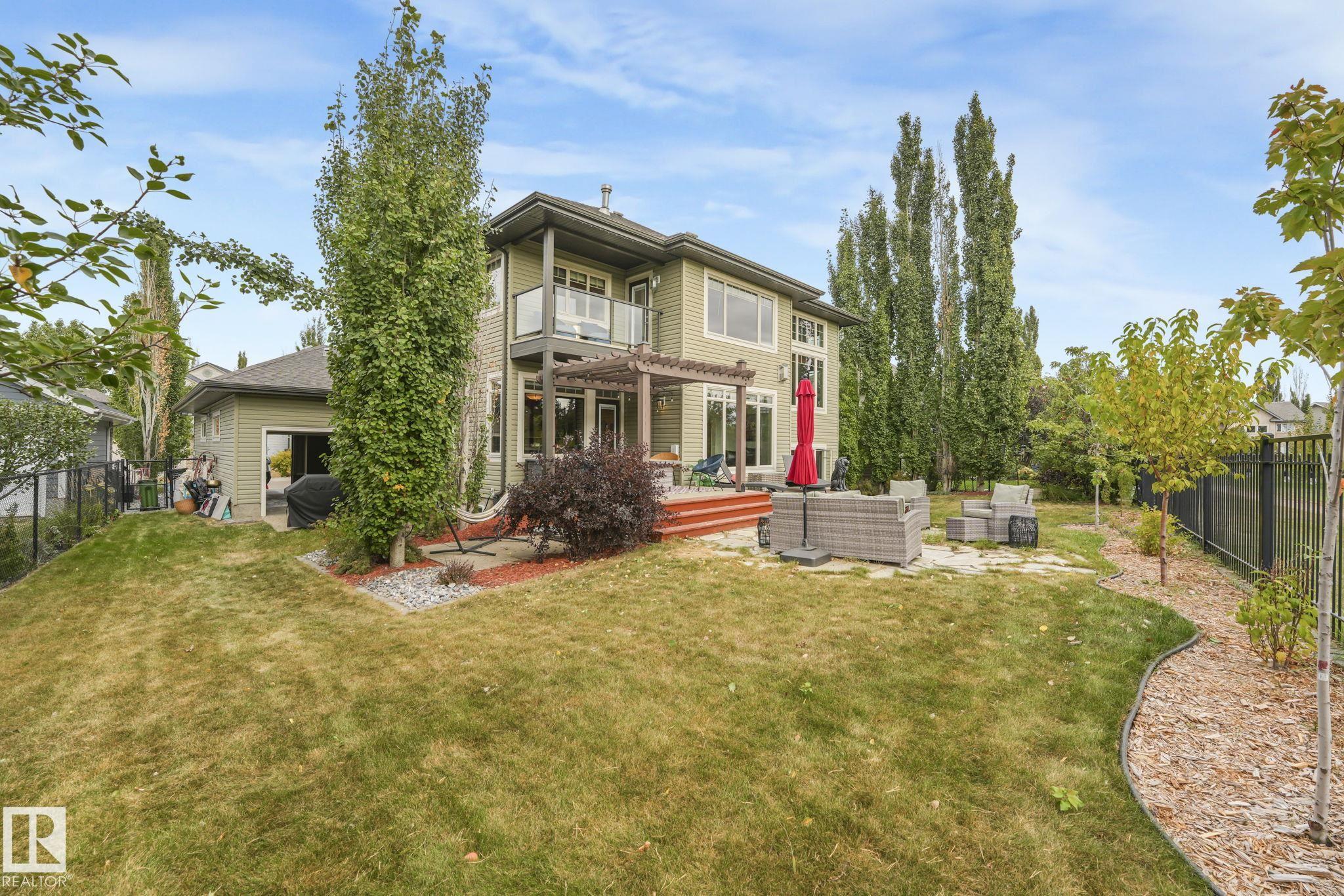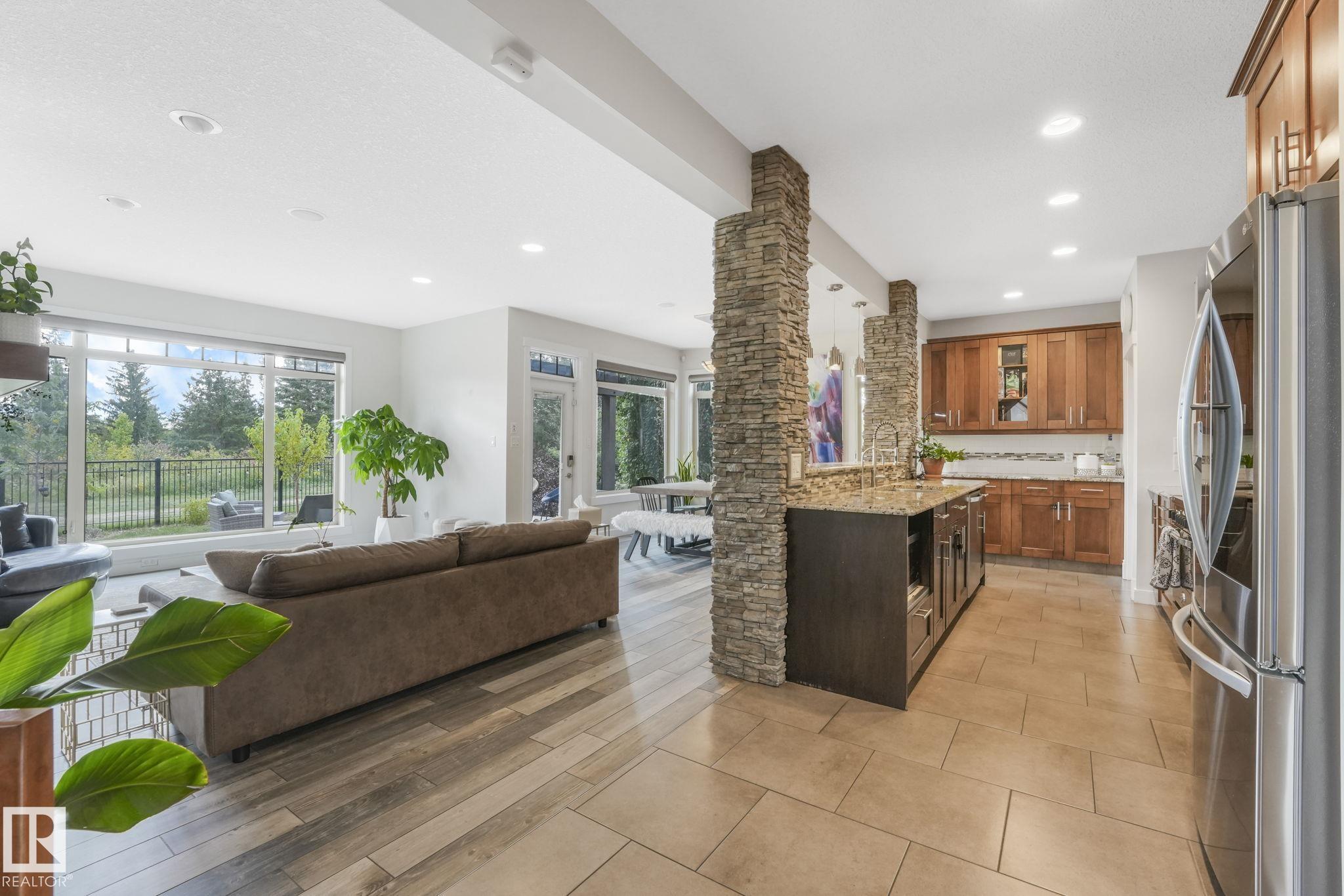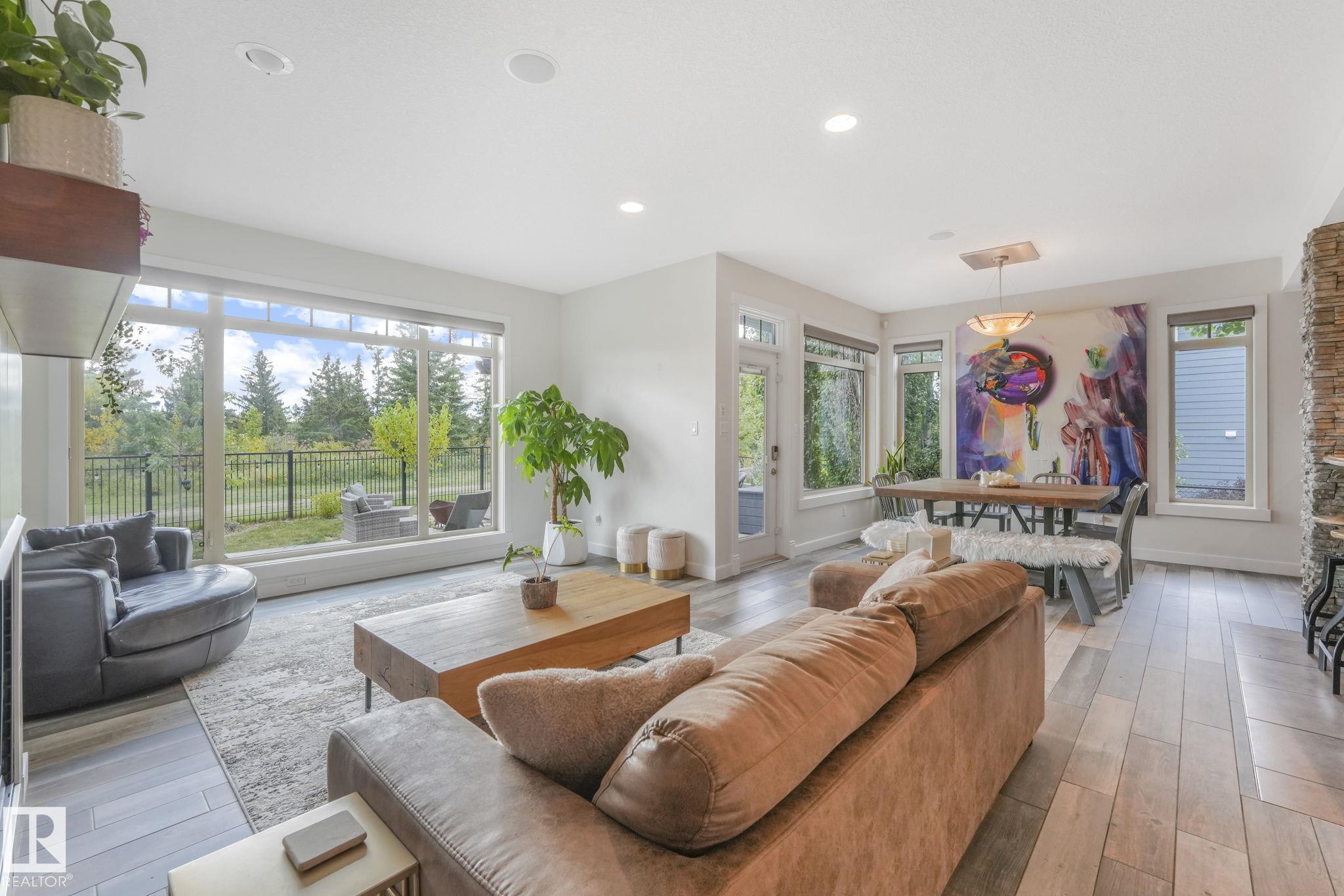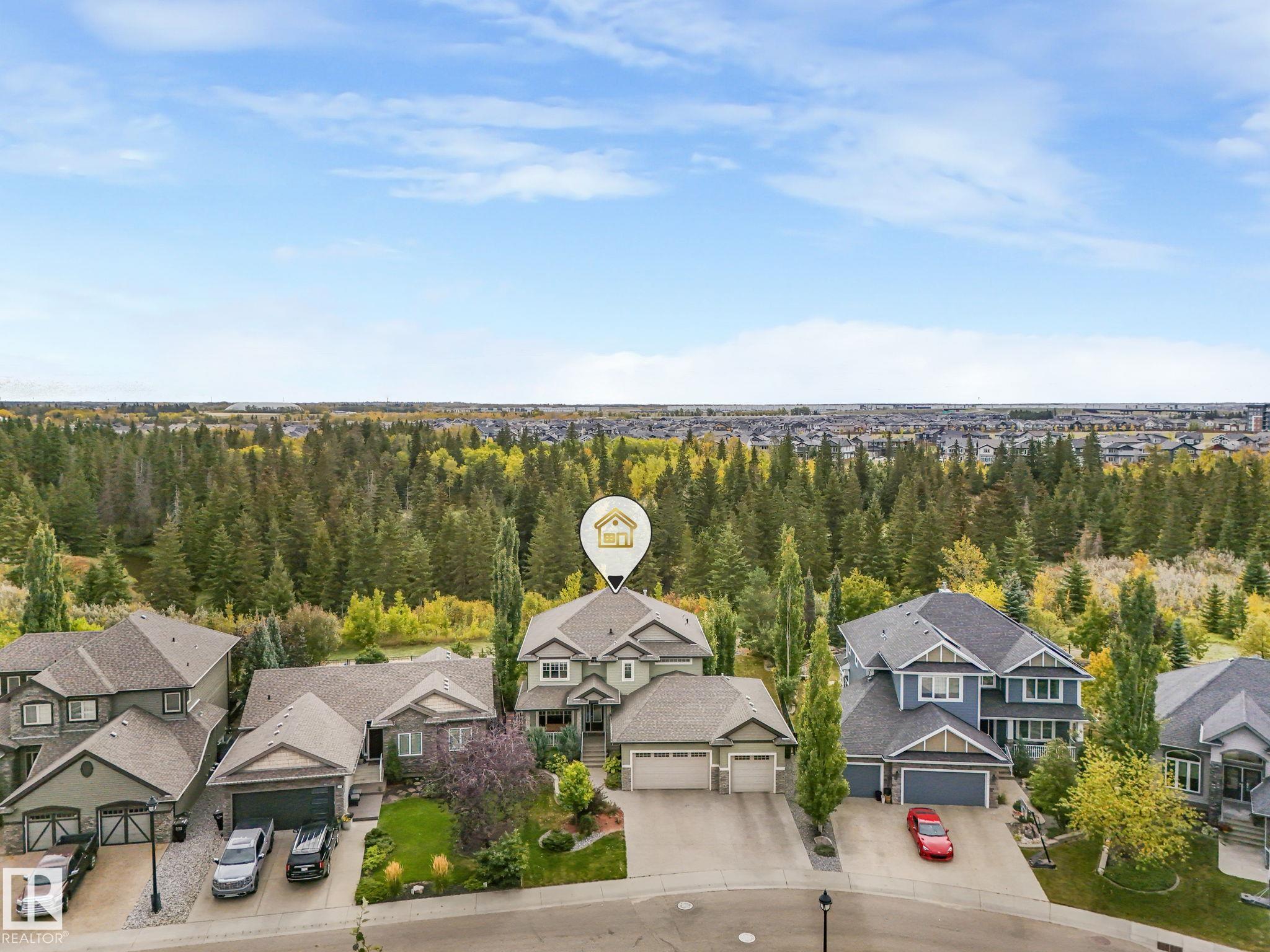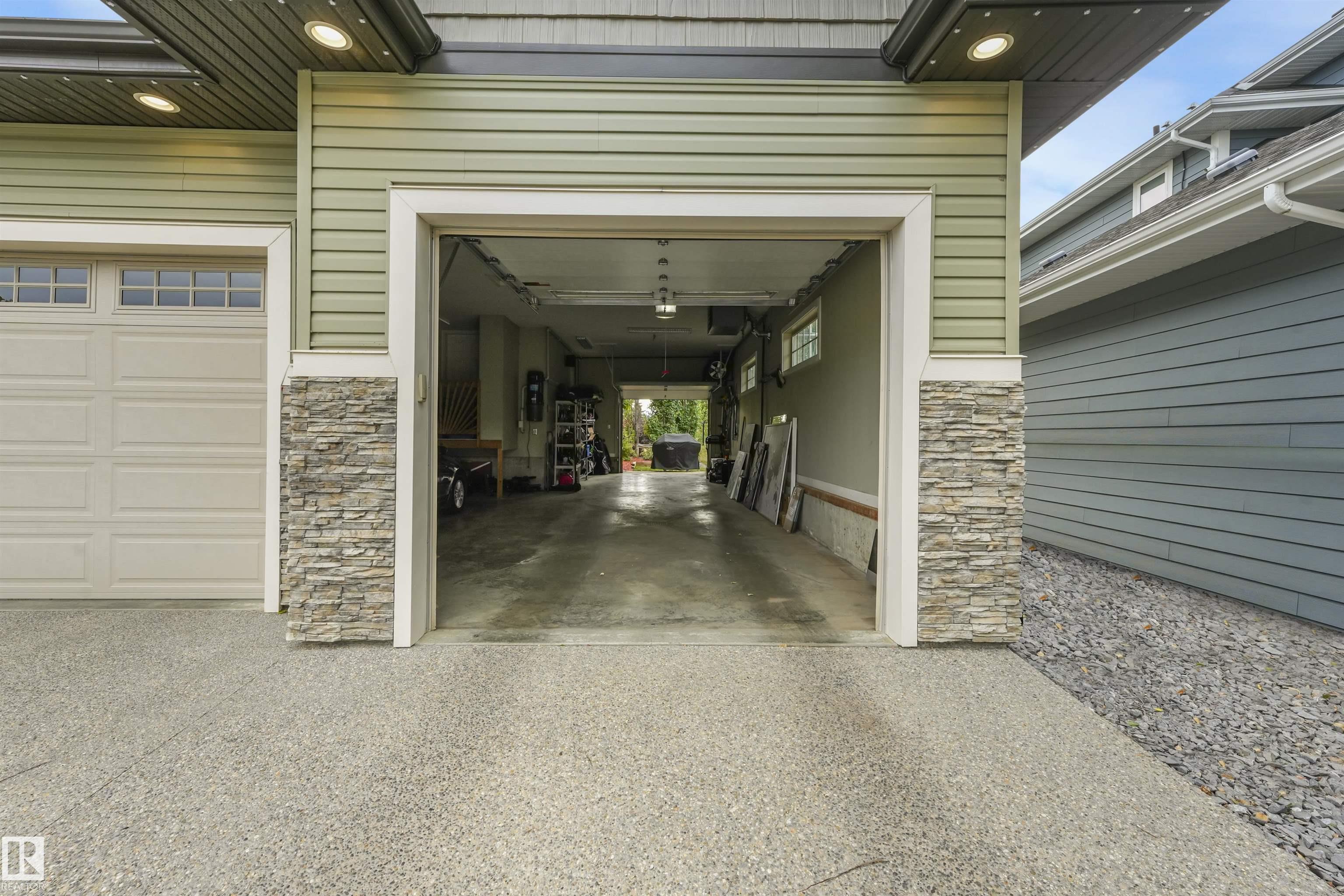 Stunning Ravine-Backing Executive Home! Over 3,800 SF with fully finished basement, this 2-storey split offers a RARE 4-CAR heated drive through garage a mechanics dream with drains & ceiling height for a hoist! From the charming verandah to the beautifully landscaped south-facing yard with breathtaking ravine views, every detail impresses. Inside, enjoy a gorgeous kitchen with custom cabinetry, granite counters & high-end SS appliances, open bright living/dining spaces & main floor den. The Bonus room has 13-ft ceilings & dramatic windows. A Luxurious primary retreat with spa-inspired ensuite, jetted tub, dual vanities, oversized shower & walk-in closet. 2 more bedrooms & full bath upstairs. The Basement is Amazing, features a GYM with Steam Room, 1 bedroom & full bath with 5th bedroom on the split lower level. Extras include tankless water heater, A/C, 2 fireplaces, built-in speakers, heated floors, vac system & wine cooler. A rare opportunity in a premier tranquil ravine location with a beautiful lot!