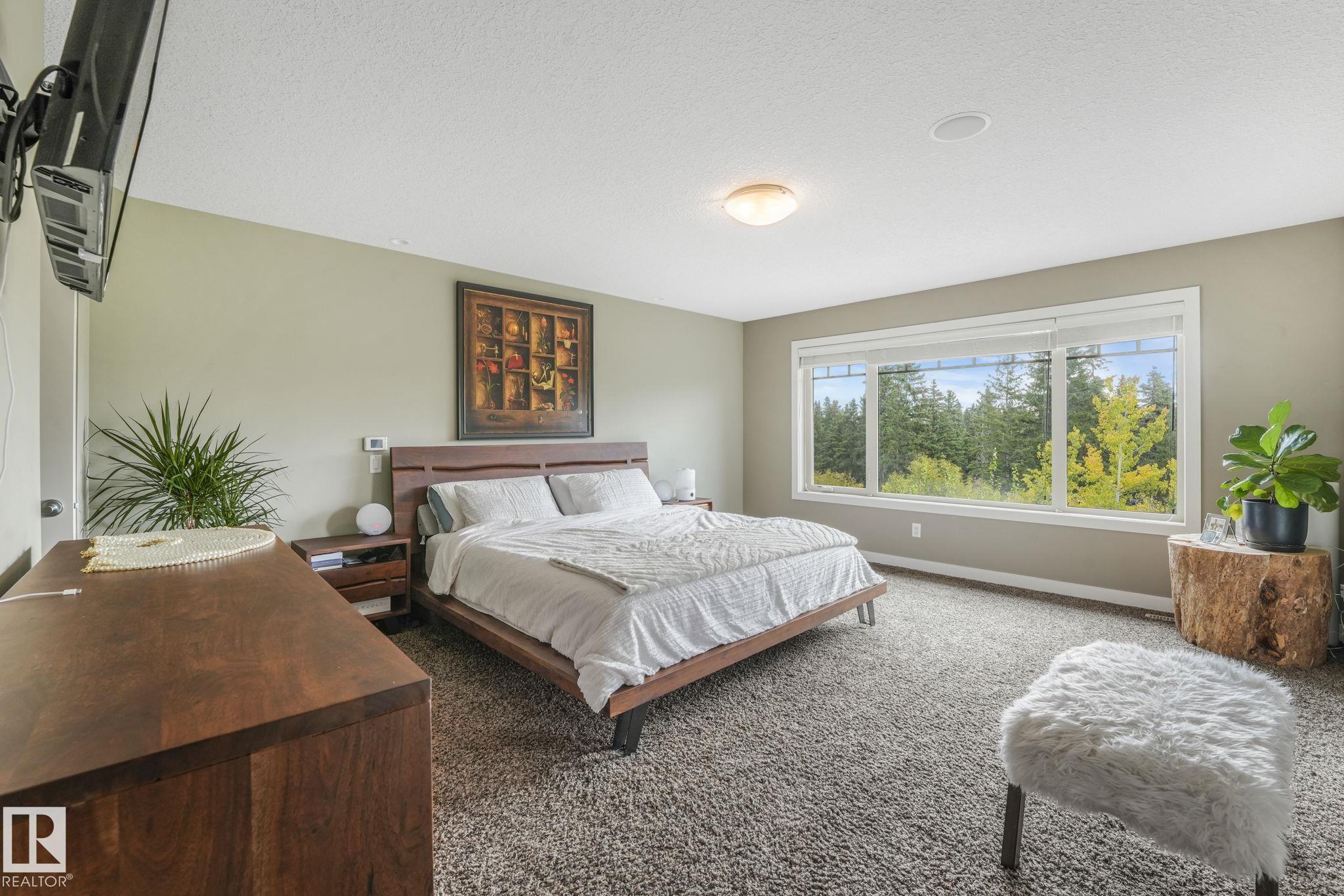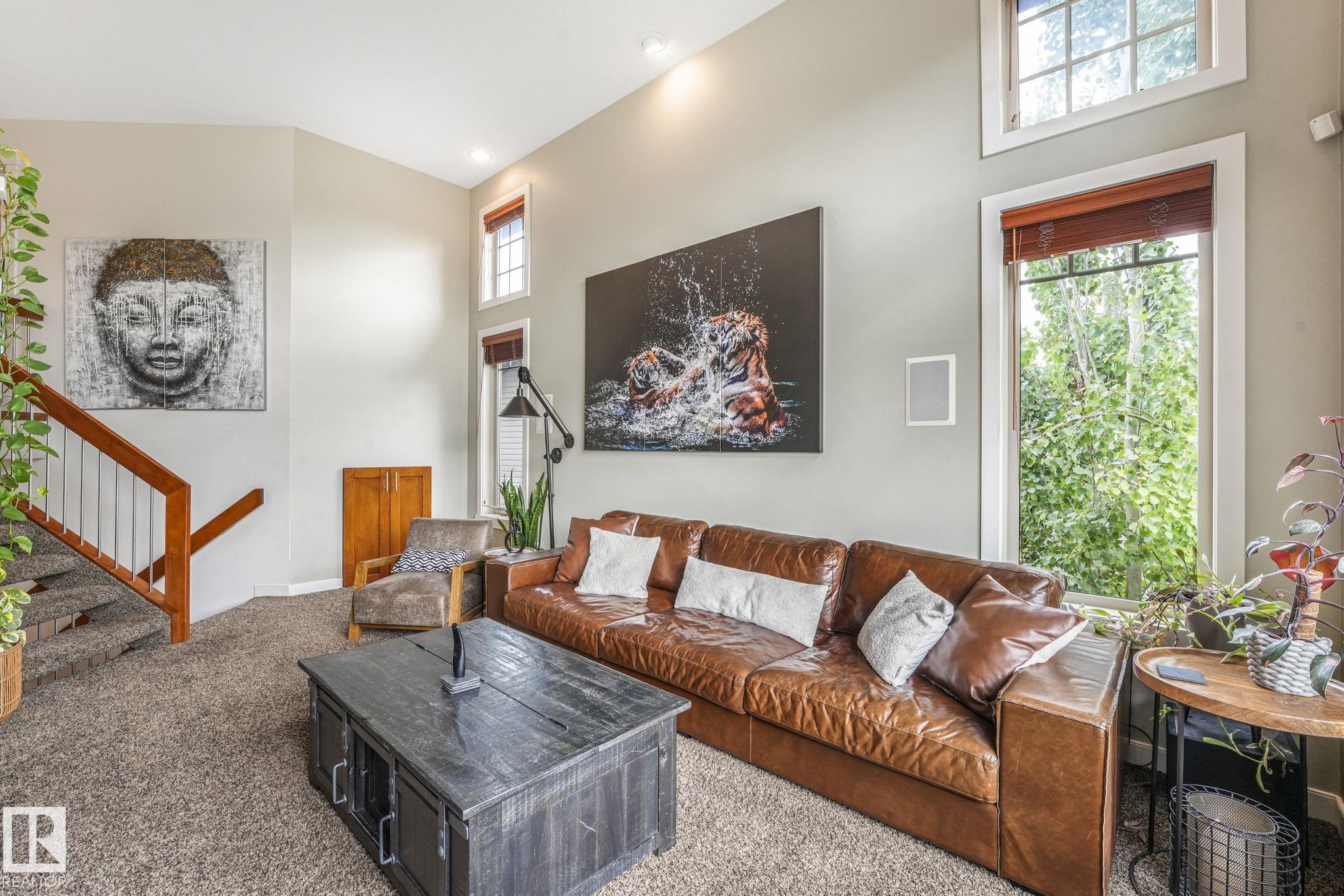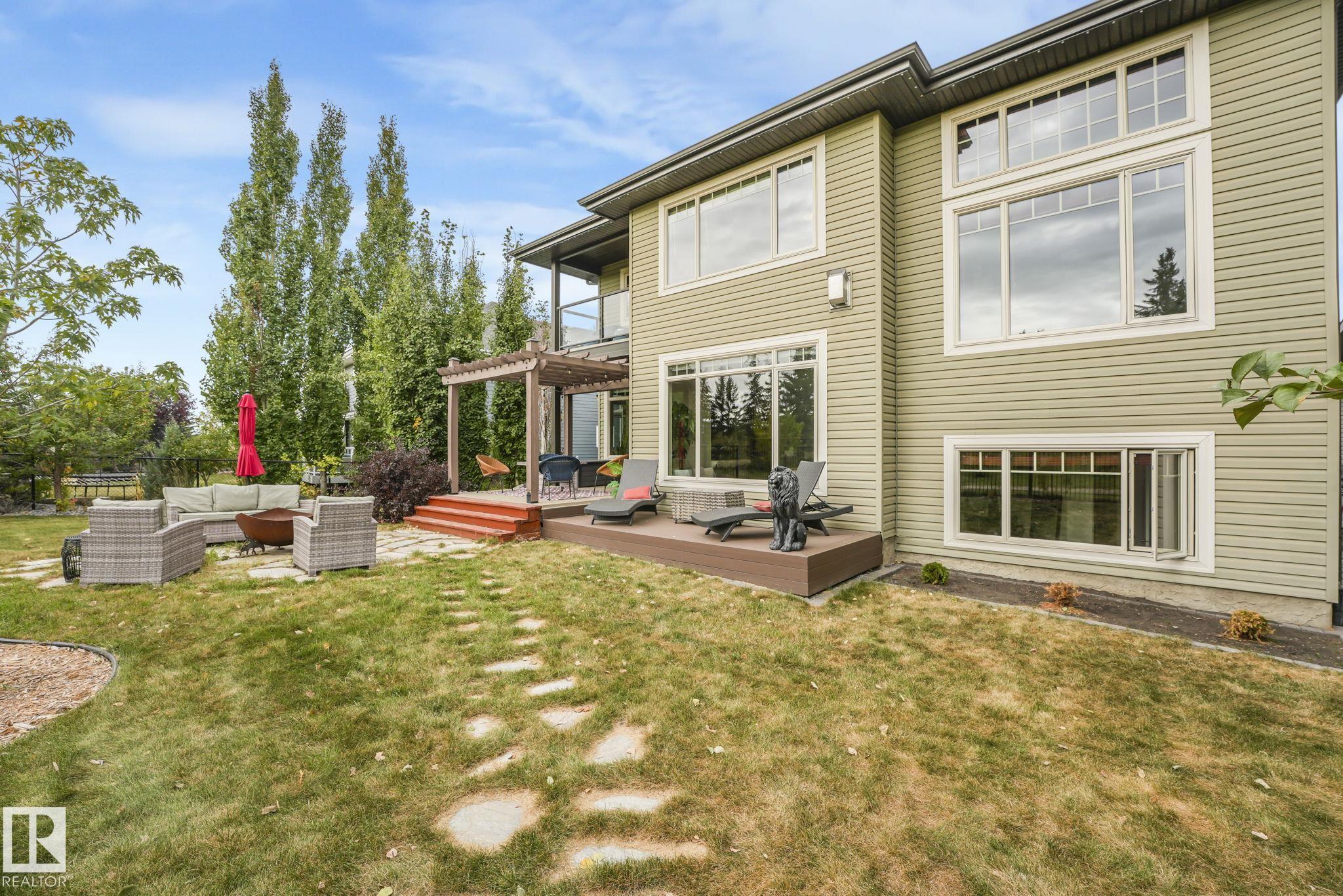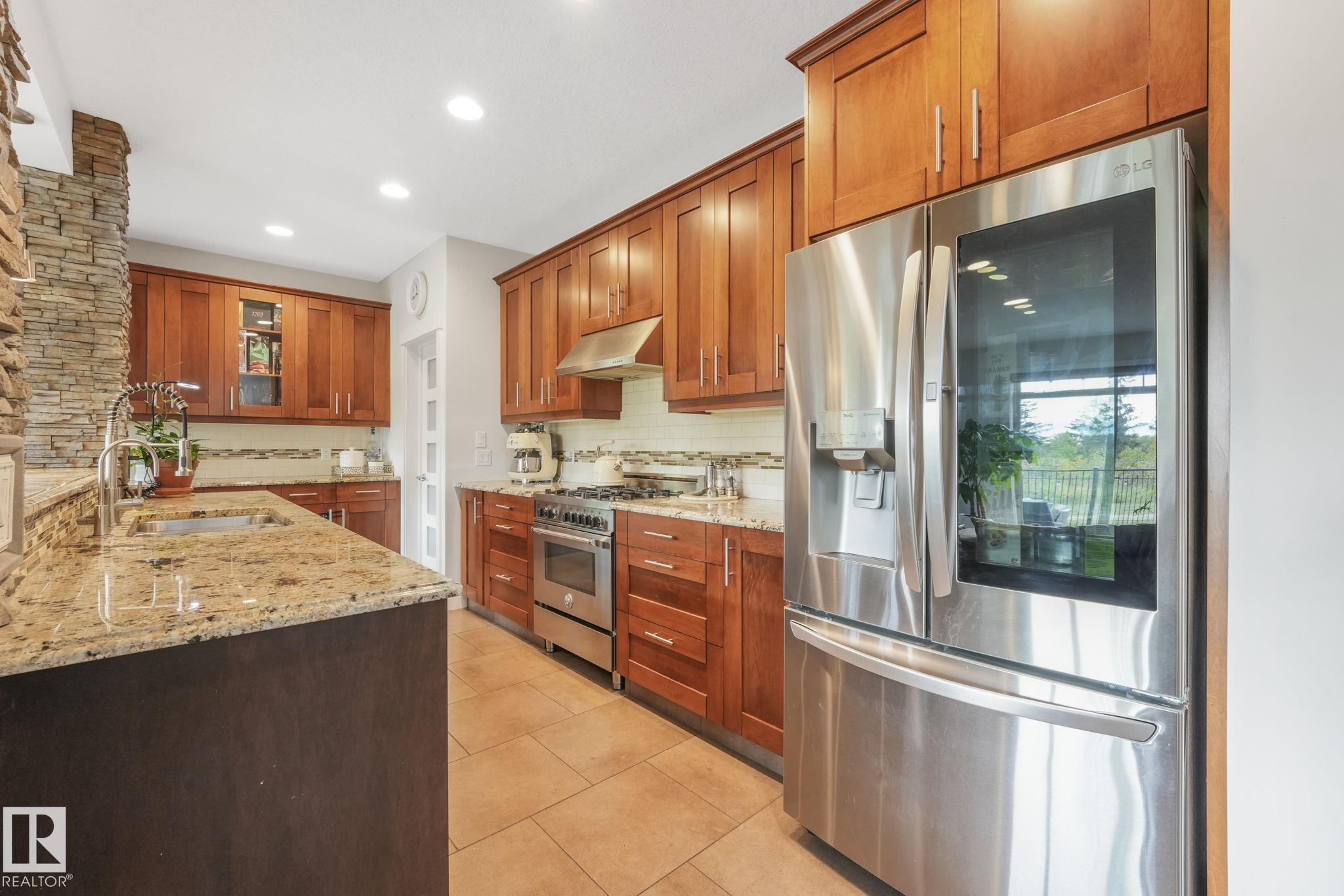 Stunning Ravine-Backing Executive Home! Over 3,800 SF with fully finished basement, this 2-storey split offers a RARE 4-CAR heated drive through garage a mechanics dream with drains & ceiling height for a hoist! From the charming verandah to the beautifully landscaped south-facing yard with breathtaking ravine views, every detail impresses. Inside, enjoy a gorgeous kitchen with custom cabinetry, granite counters & high-end SS appliances, open bright living/dining spaces & main floor den. The Bonus room has 13-ft ceilings & dramatic windows. A Luxurious primary retreat with spa-inspired ensuite, jetted tub, dual vanities, oversized shower & walk-in closet. 2 more bedrooms & full bath upstairs. The Basement is Amazing, features a GYM with Steam Room, 1 bedroom & full bath with 5th bedroom on the split lower level. Extras include tankless water heater, A/C, 2 fireplaces, built-in speakers, heated floors, vac system & wine cooler. A rare opportunity in a premier tranquil ravine location with a beautiful lot!