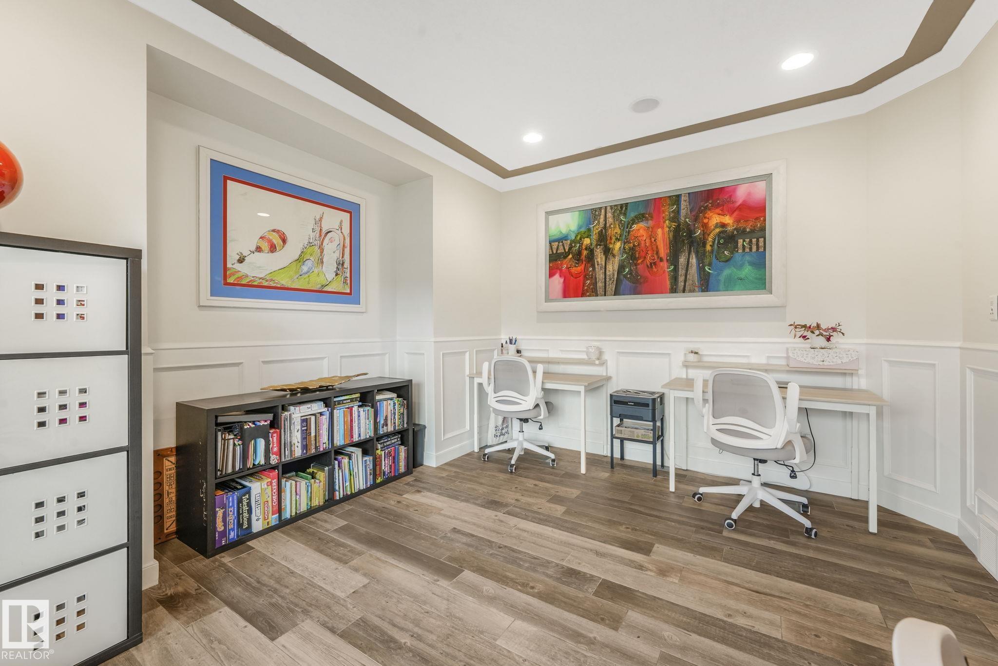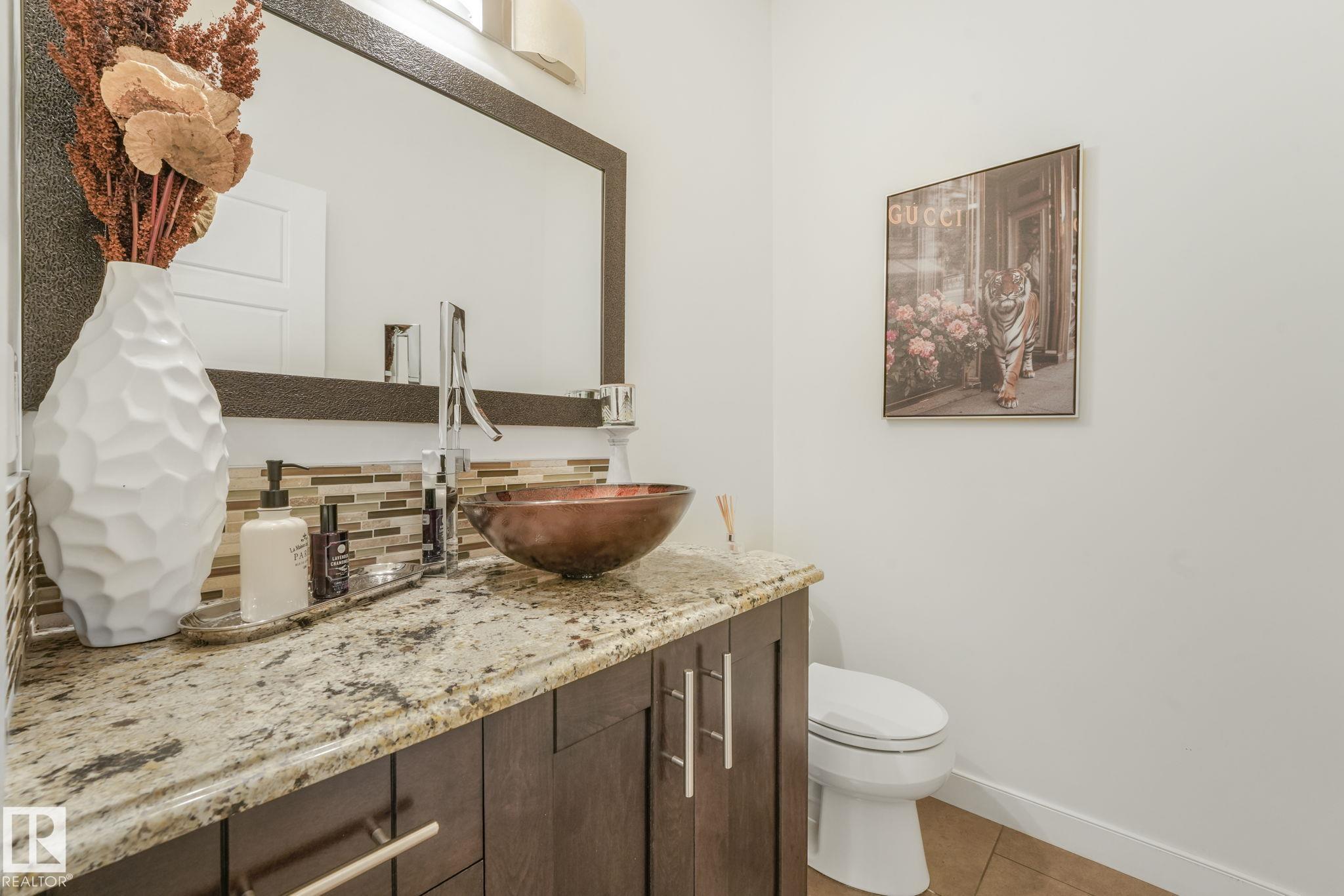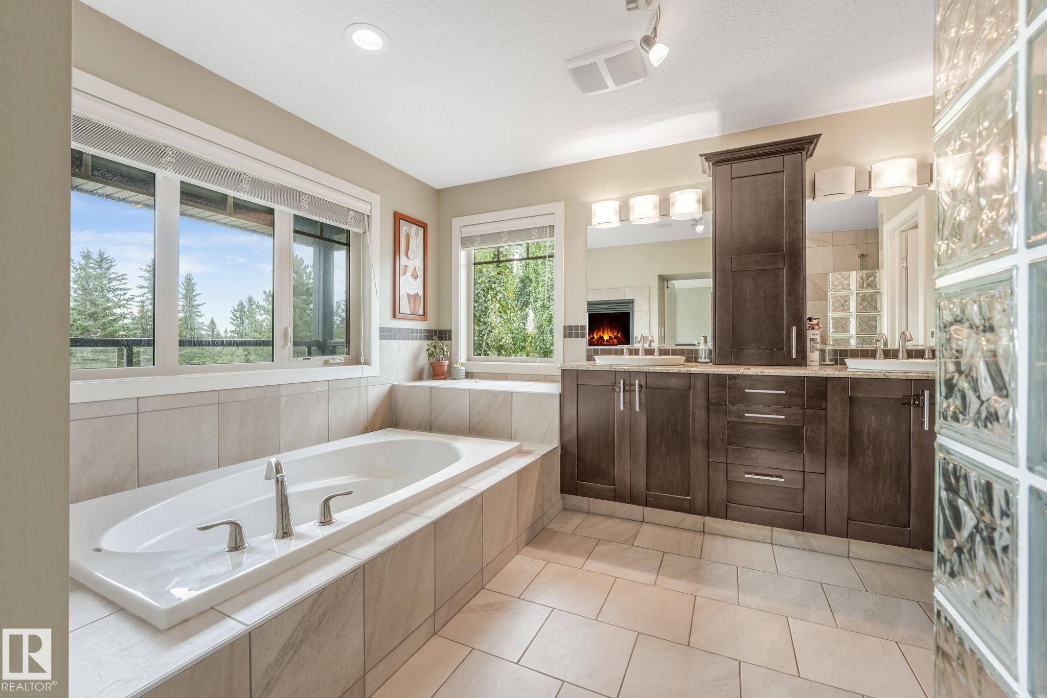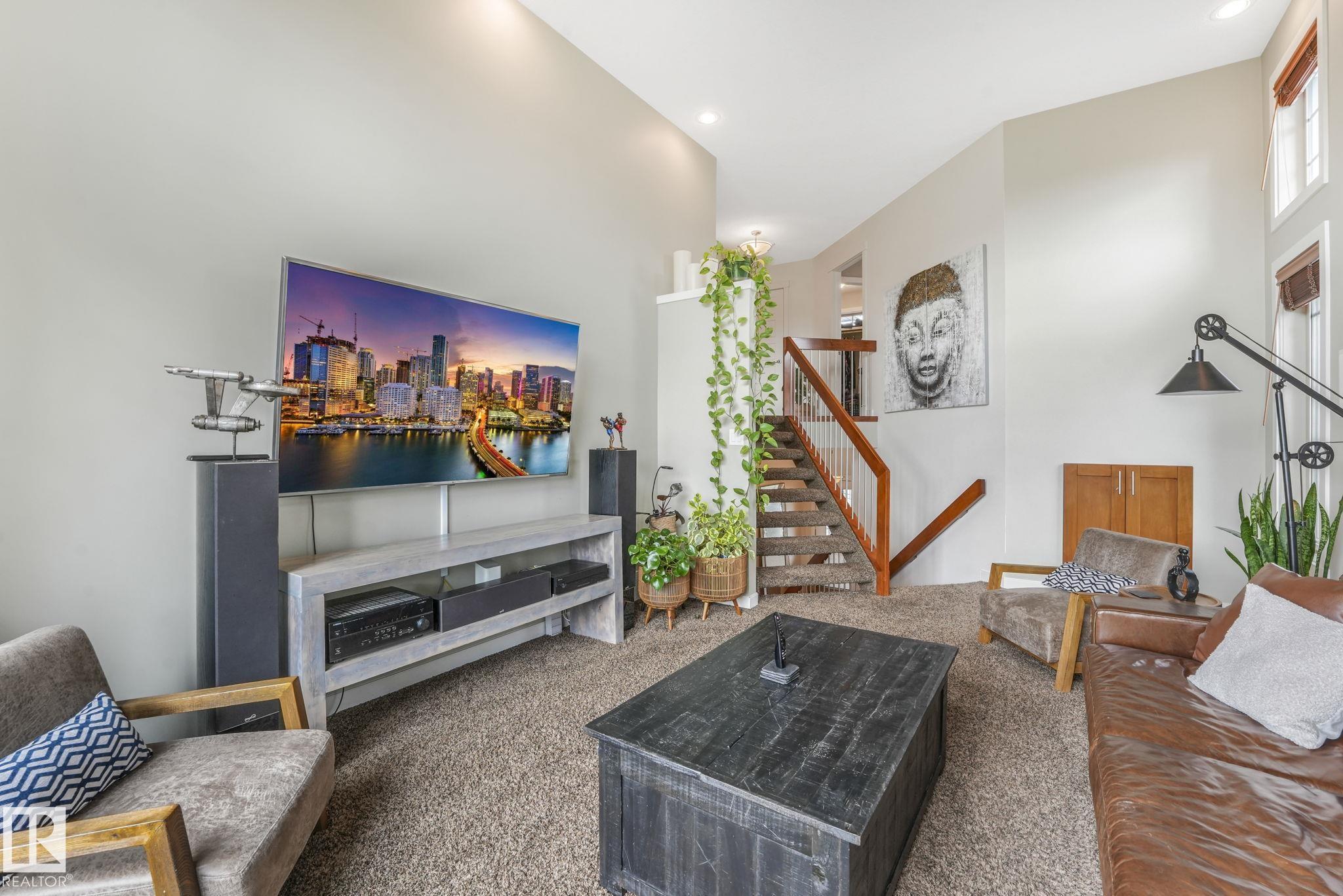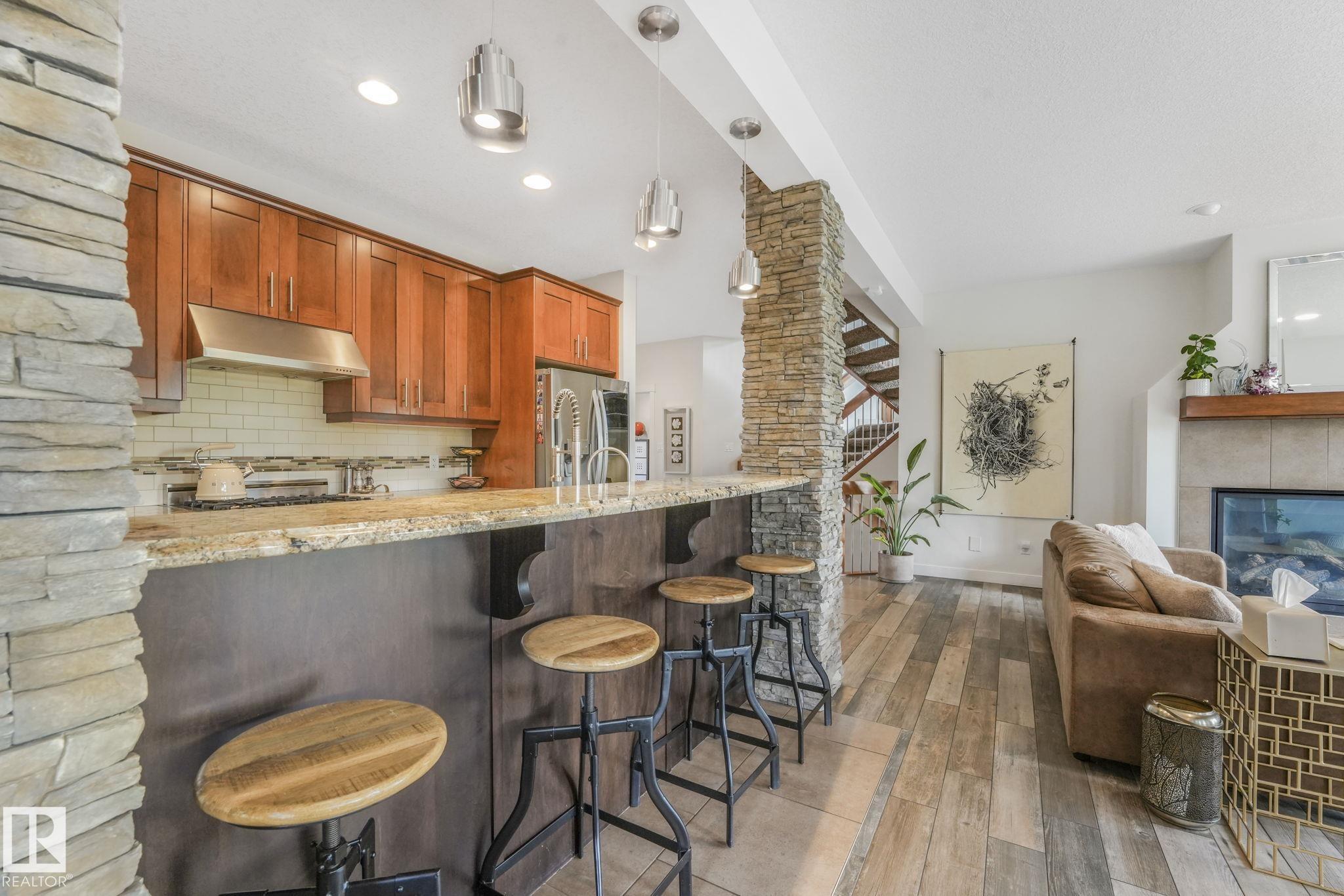 Stunning Ravine-Backing Executive Home! Over 3,800 SF with fully finished basement, this 2-storey split offers a RARE 4-CAR heated drive through garage a mechanics dream with drains & ceiling height for a hoist! From the charming verandah to the beautifully landscaped south-facing yard with breathtaking ravine views, every detail impresses. Inside, enjoy a gorgeous kitchen with custom cabinetry, granite counters & high-end SS appliances, open bright living/dining spaces & main floor den. The Bonus room has 13-ft ceilings & dramatic windows. A Luxurious primary retreat with spa-inspired ensuite, jetted tub, dual vanities, oversized shower & walk-in closet. 2 more bedrooms & full bath upstairs. The Basement is Amazing, features a GYM with Steam Room, 1 bedroom & full bath with 5th bedroom on the split lower level. Extras include tankless water heater, A/C, 2 fireplaces, built-in speakers, heated floors, vac system & wine cooler. A rare opportunity in a premier tranquil ravine location with a beautiful lot!