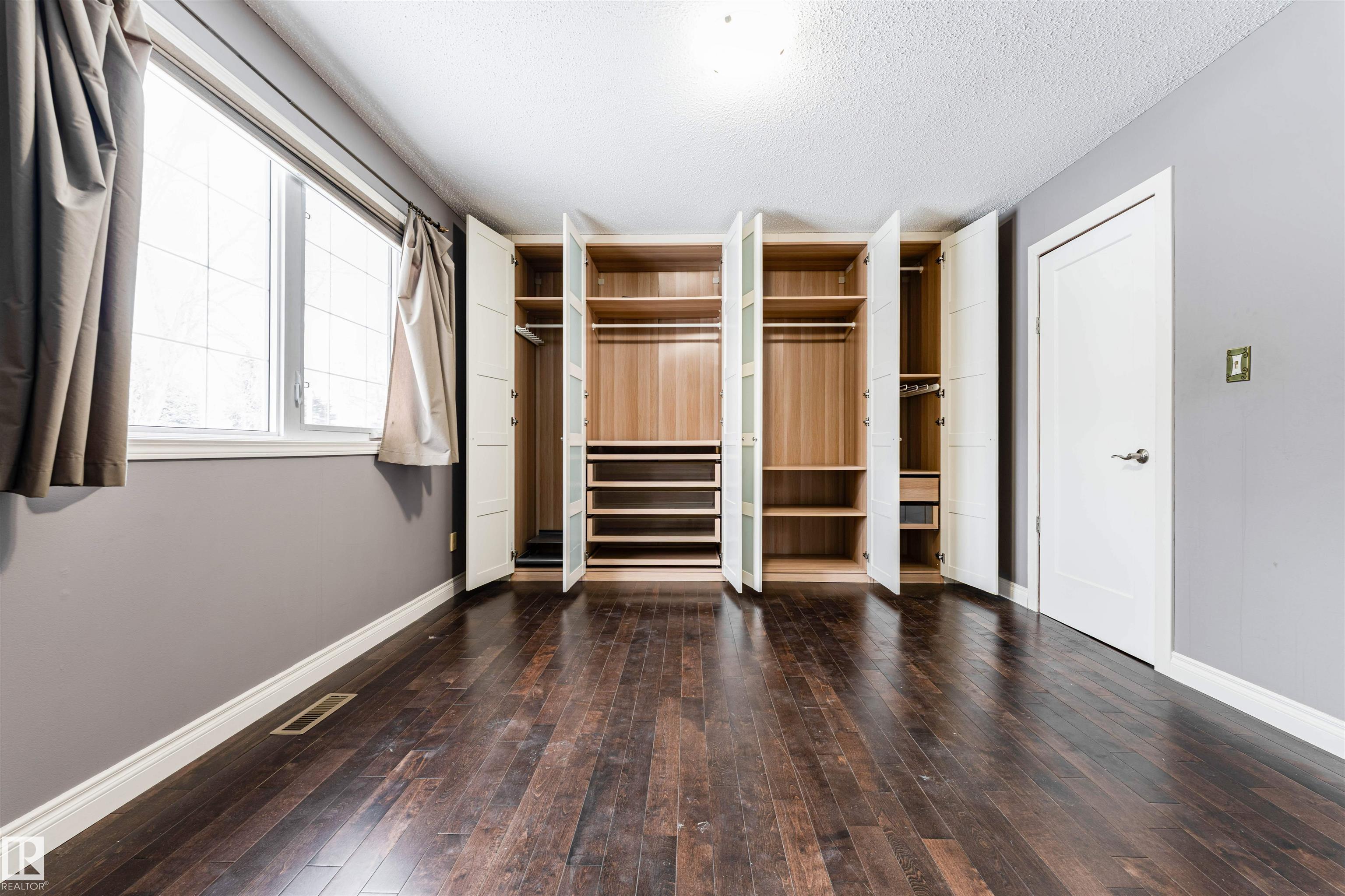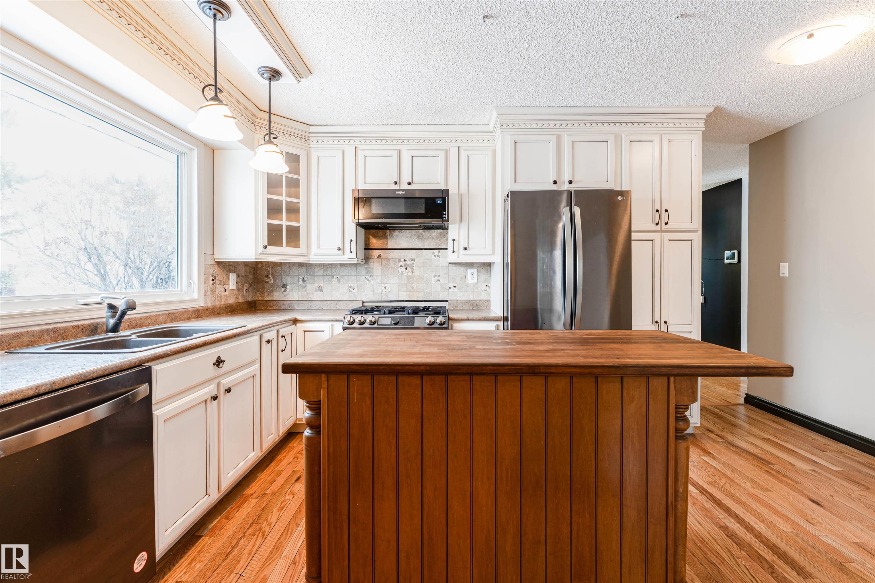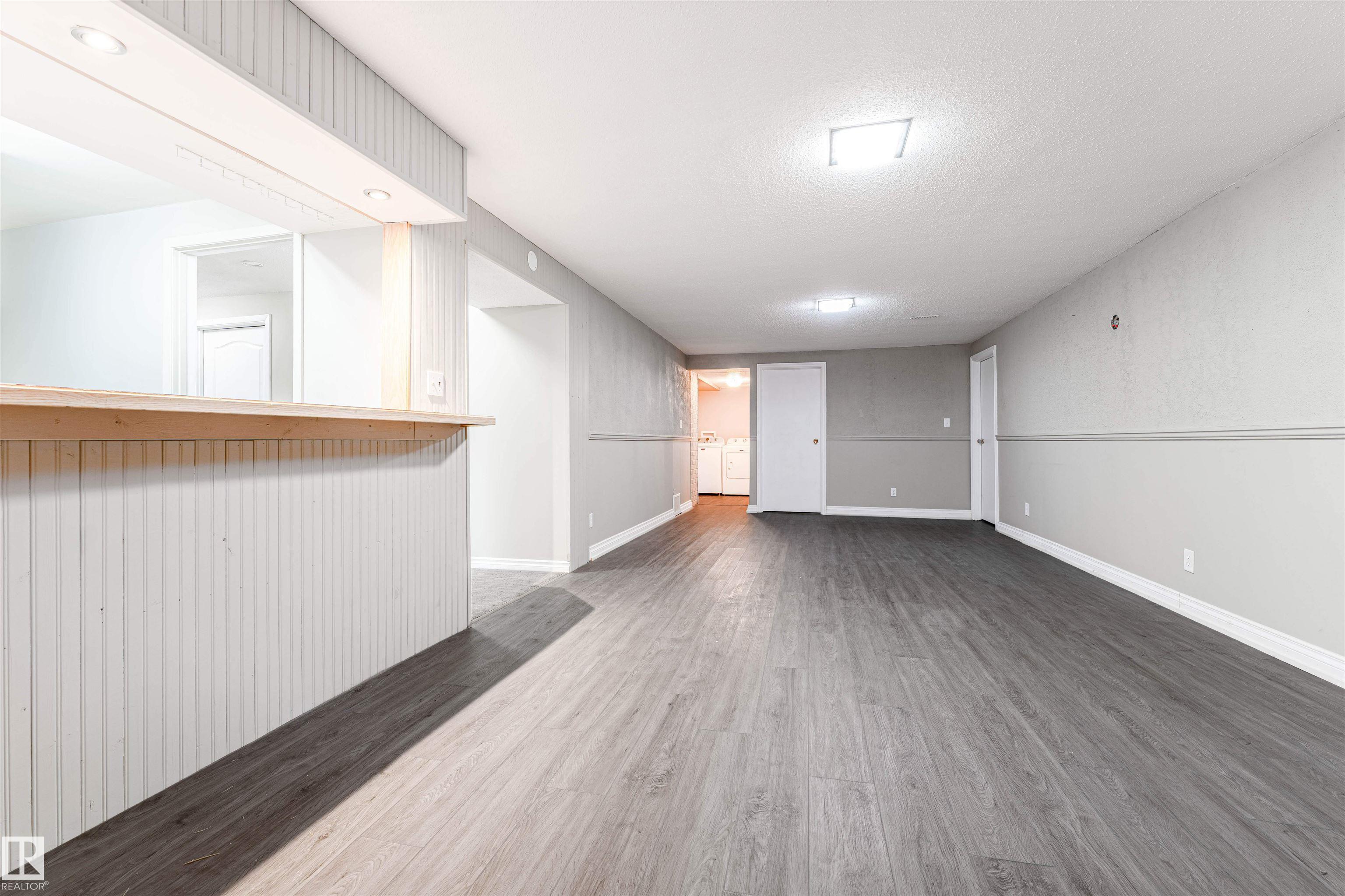 Well-maintained bungalow on a large pie-shaped lot with no rear neighbours, close to schools & parks, with easy road access out of town. The main floor features hardwood flooring, an upgraded kitchen, three bedrooms, and a 1.5 bath layout including a full bathroom with tub/shower and a primary bedroom with ensuite & custom built-in closet system. The functional layout offers comfortable everyday living with excellent natural light. The fully developed basement includes a spacious rec room, enclosed bar area, two additional rooms suitable for a variety of uses such as office, hobby, or flex space, and a full bathroom with shower. Recent updates include newer furnace, hot water tank & shingles. Outside, the private backyard features mature trees, an 8? privacy fence, deck & hot tub. Beyond the privacy fence is a separate fenced section with a wide gate, offering excellent space for trailers, RVs, or additional storage. Double detached garage with rear lane access.