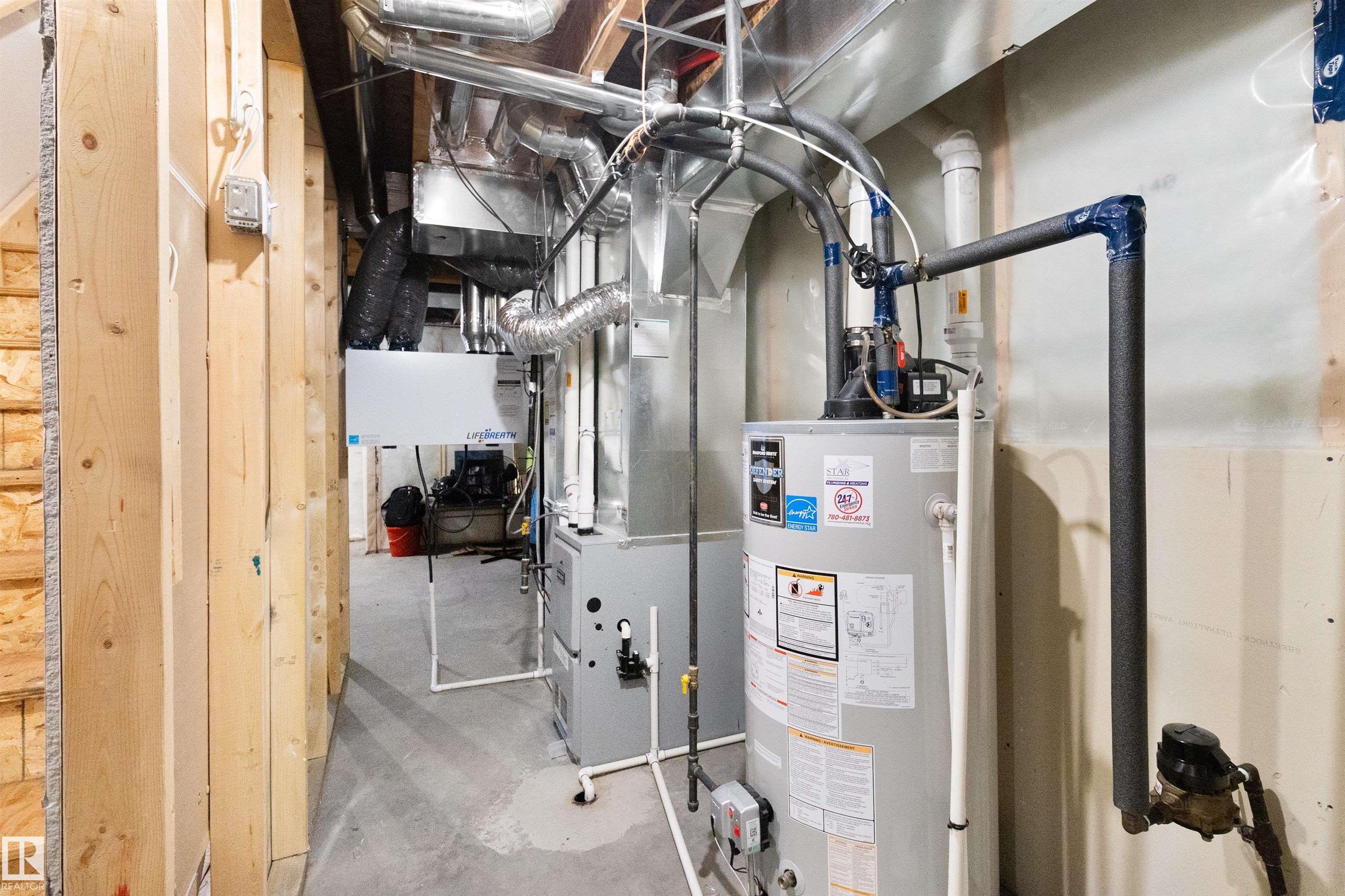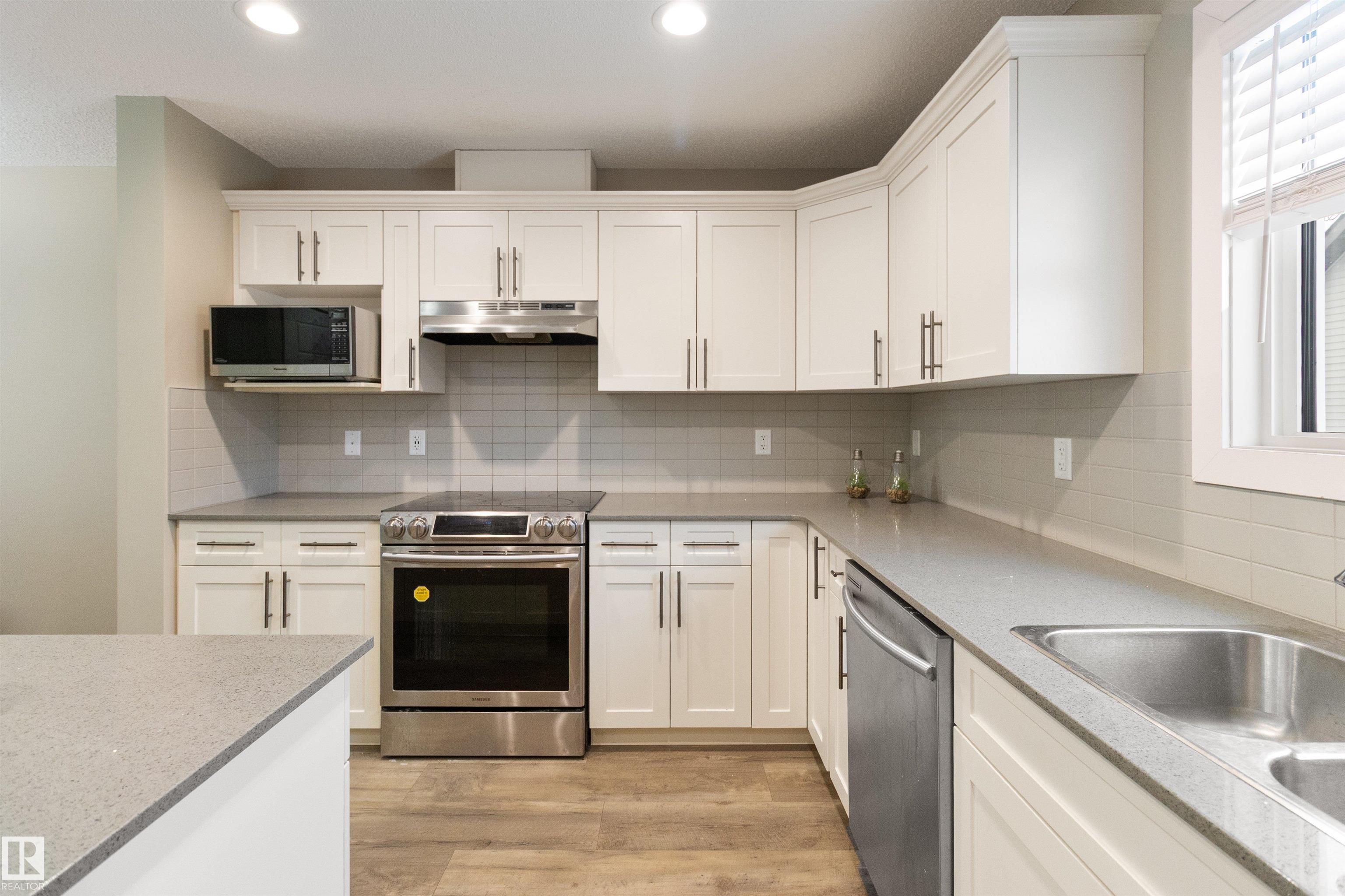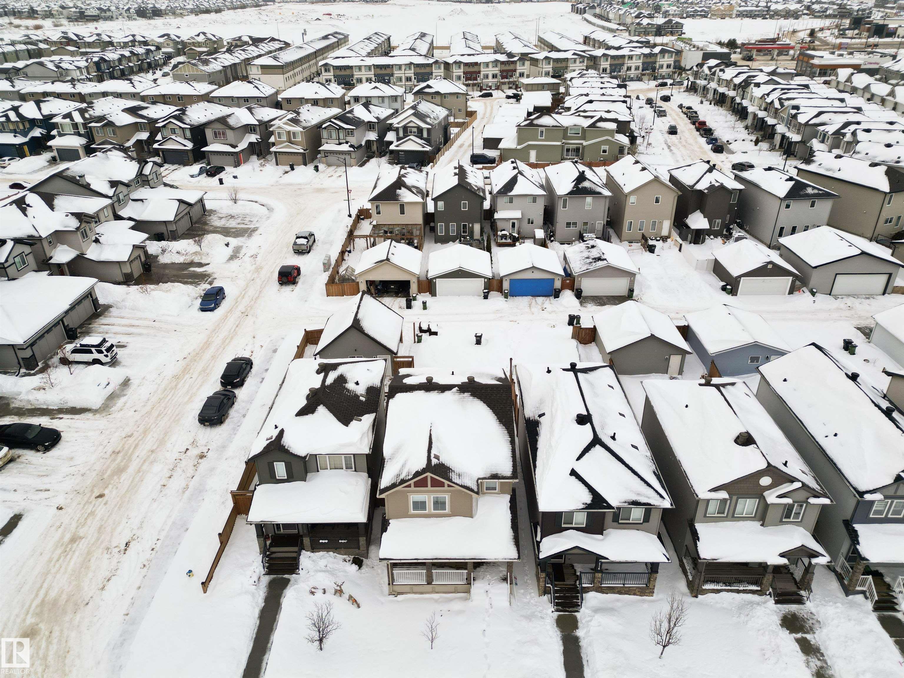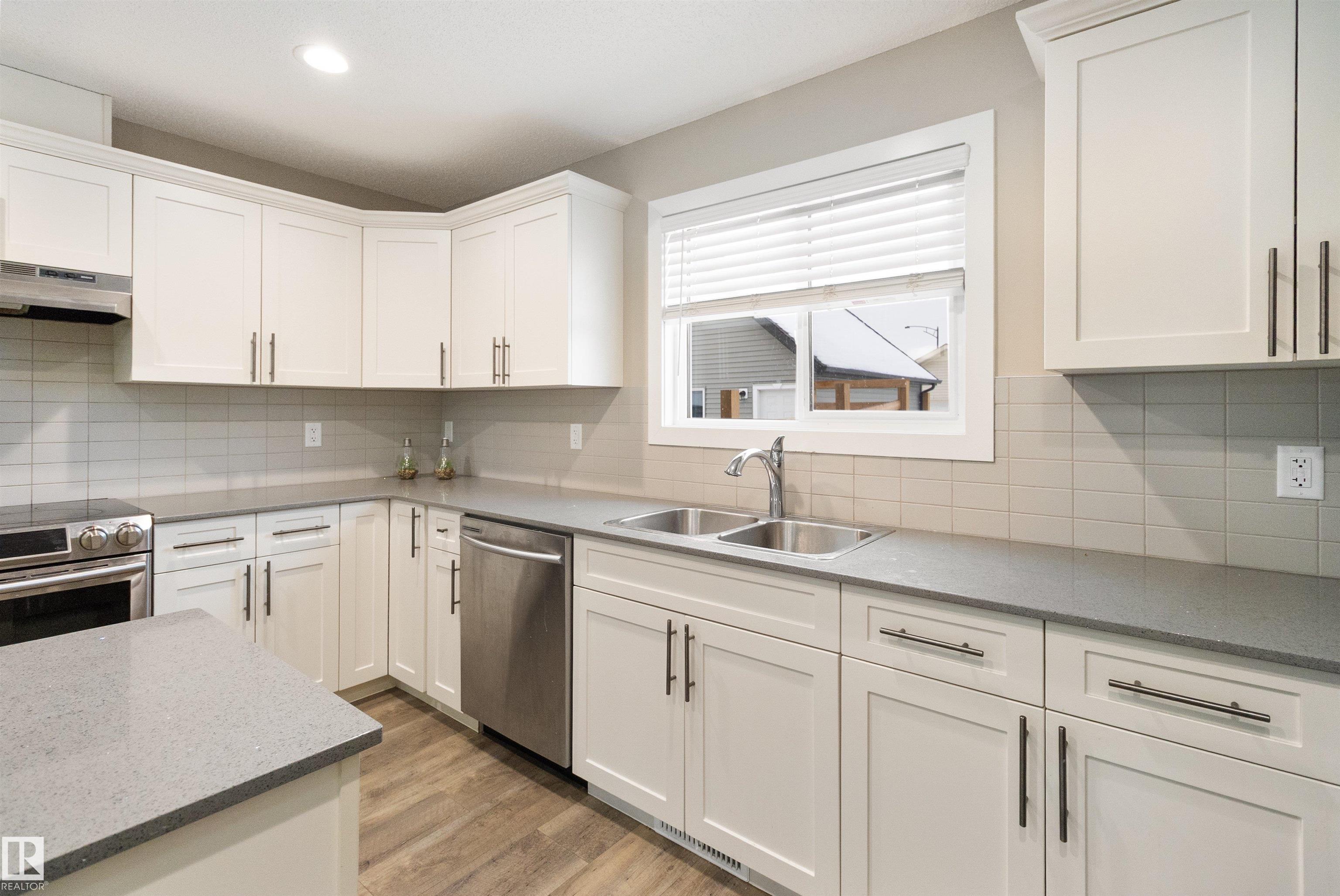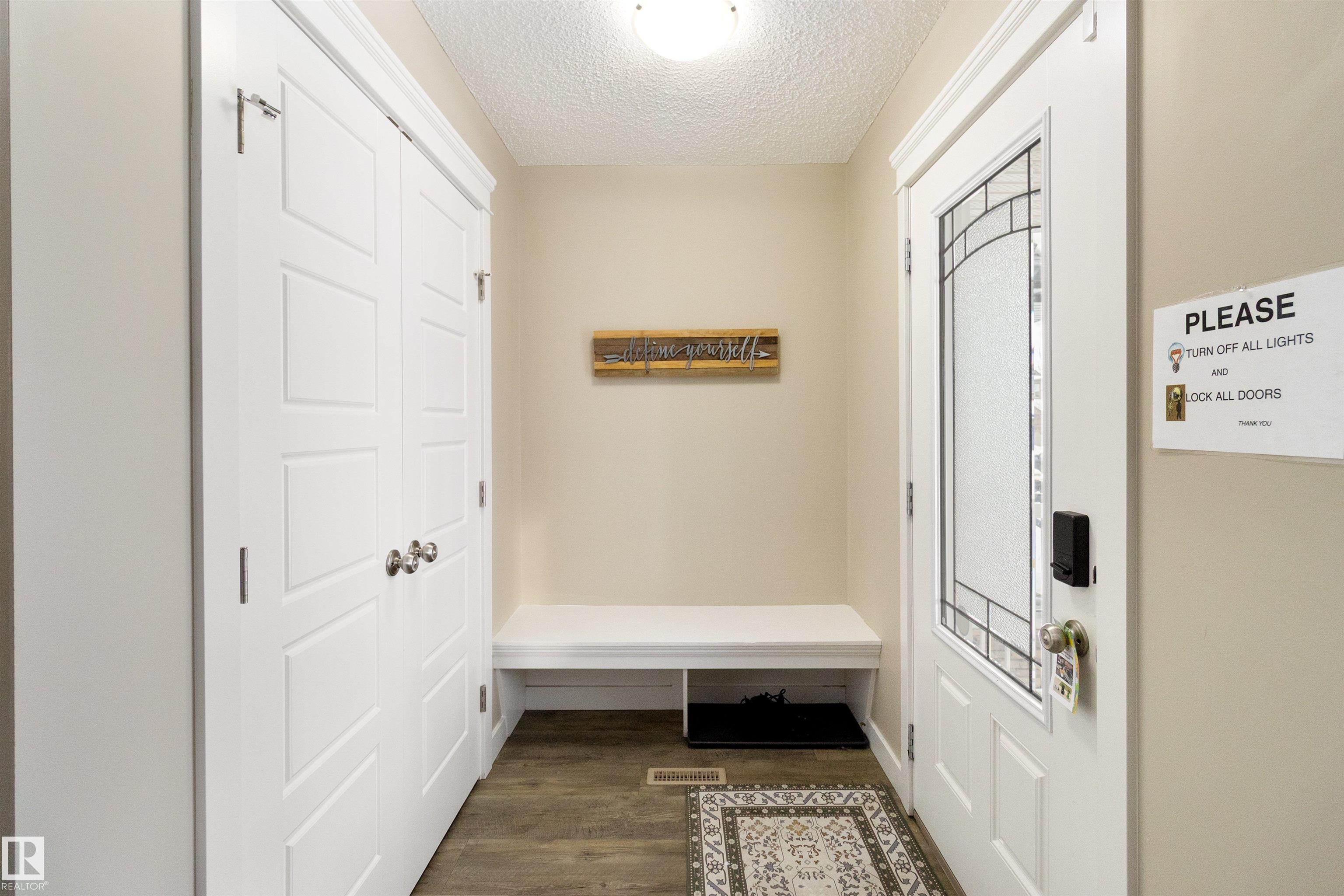 Welcome to this beautiful open-concept home in sought-after McConachie! Featuring a charming front porch, this property offers both style and functionality. The main floor boasts a bright, open layout with a spacious living room, eating nook, and a modern kitchen complete with quartz countertops, stainless steel appliances, ample cabinetry, and a large island with drawers?perfect for everyday living and entertaining. Additional main-floor conveniences include a 2-piece bath, laundry area, and rear entrance. Durable vinyl plank flooring complements the main level, with carpet throughout the upper floor. Upstairs, the generous primary bedroom features a walk-in closet and a 5-piece ensuite. Two additional well-sized bedrooms and a 4-piece main bath complete the second level. The unfinished basement offers excellent future development potential. Outside, the yard includes side fencing and a cement parking pad with power. Close to parks, schools, shopping, and amenities in a family-friendly area.