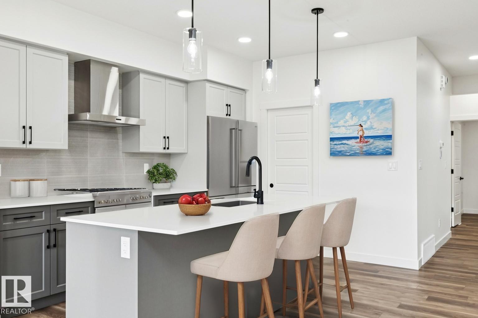 Step into elevated living with The Artemis, a beautifully designed home that balances modern luxury with everyday comfort. This home features a double attached garage widened by 2 ft, separate side entrance, and 9? ceilings on the main and basement levels. Luxury vinyl plank flooring and recessed lighting enhance the main floor. The foyer opens to a sitting room with a main-floor bedroom and 3-piece bath, ideal for guests or multi-generational living. The open-concept kitchen, nook, and great room showcase quartz countertops, a flush eating ledge island, soft-close cabinetry, plus a 17? open-to-above ceiling, and garden door. Upstairs offers a bonus room, laundry, two bedrooms with walk-in closets, and a primary suite with a 5-piece ensuite. Basement rough-ins included, finished with the Sterling Signature Specification.