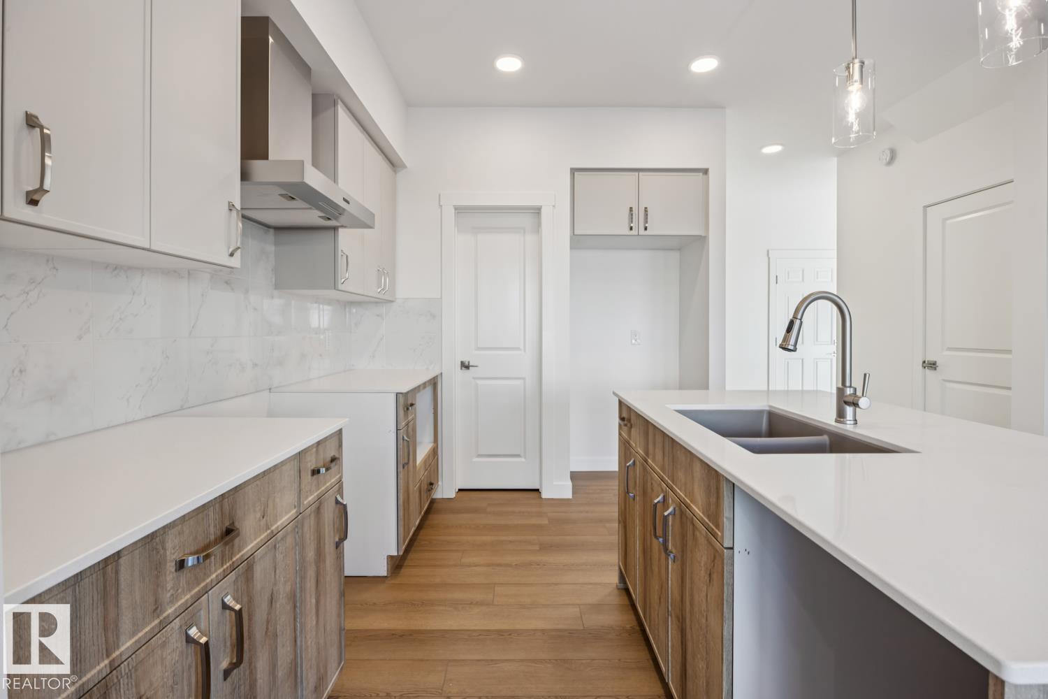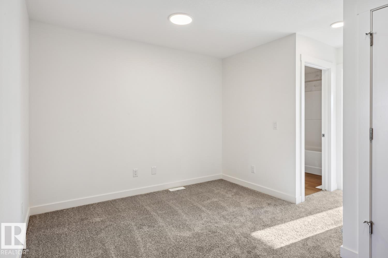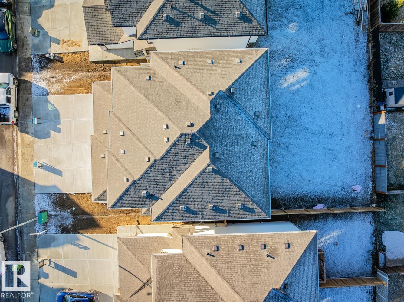 Welcome to the Renew by Sterling Homes, a beautifully finished half duplex designed for modern family living. This home features a double attached garage, separate side entrance, and 9? ceilings on main and basement levels. The open-concept main floor is complete with luxury vinyl plank flooring, a welcoming foyer with coat closet, and a half bath with pedestal sink. The kitchen offers quartz countertops throughout, Thermofoil cabinets, island with flush eating ledge, corner pantry, built-in microwave, Silgranit undermount sink, full-height backsplash, pendant lighting, and chimney-style hood fan. Large windows brighten the great room and nook, with a patio door providing access to a future deck and backyard. Upstairs, enjoy a bonus room, 3-piece main bath, laundry area, and a primary suite with walk-in closet and 3-piece ensuite with stand-up shower, plus two generously sized secondary bedrooms. Brushed nickel fixtures and basement rough-in plumbing complete this home.