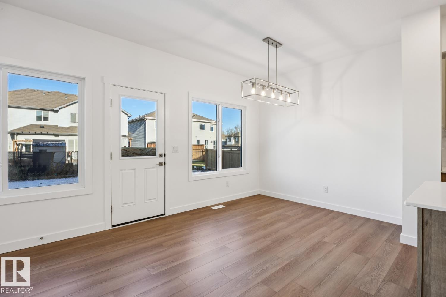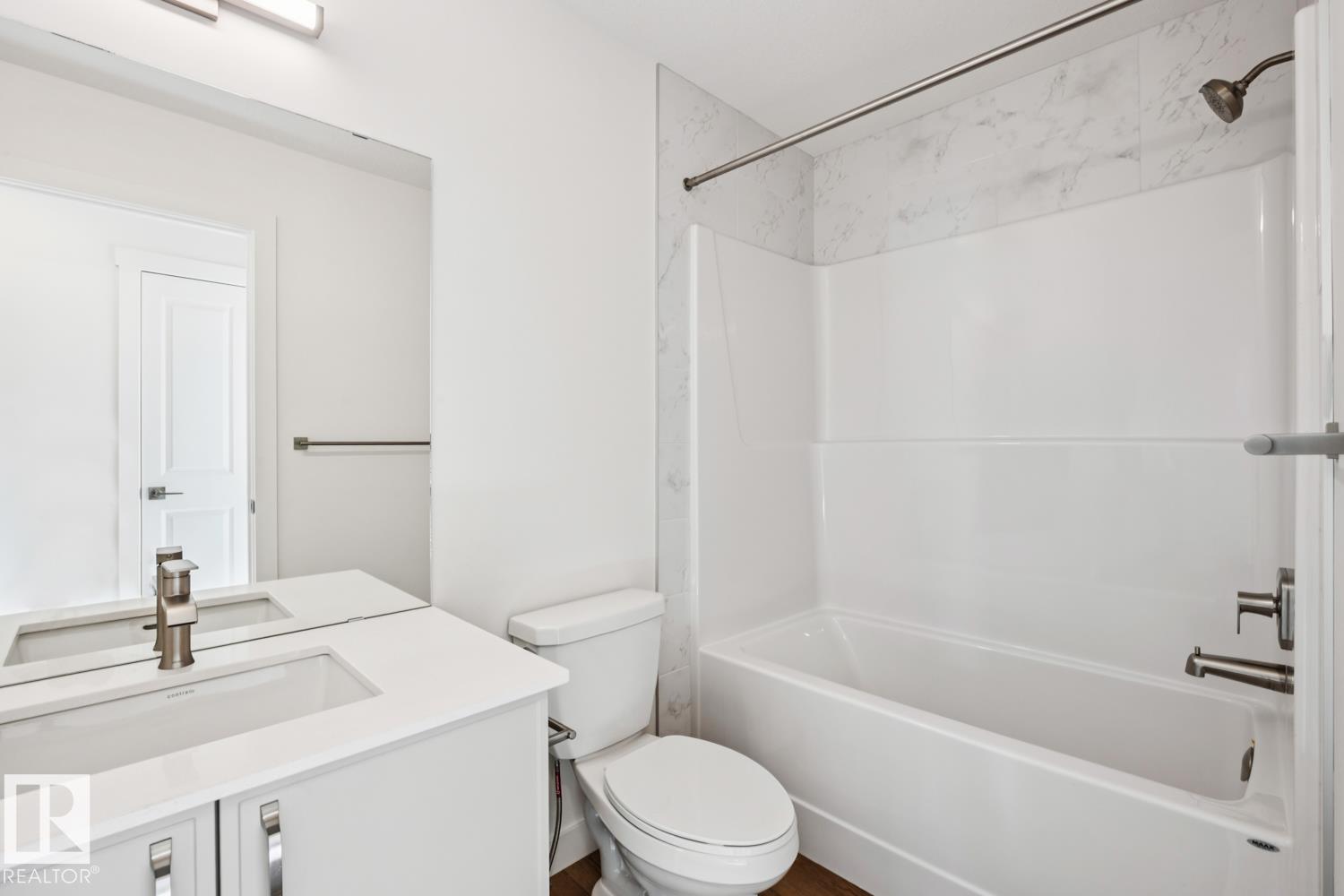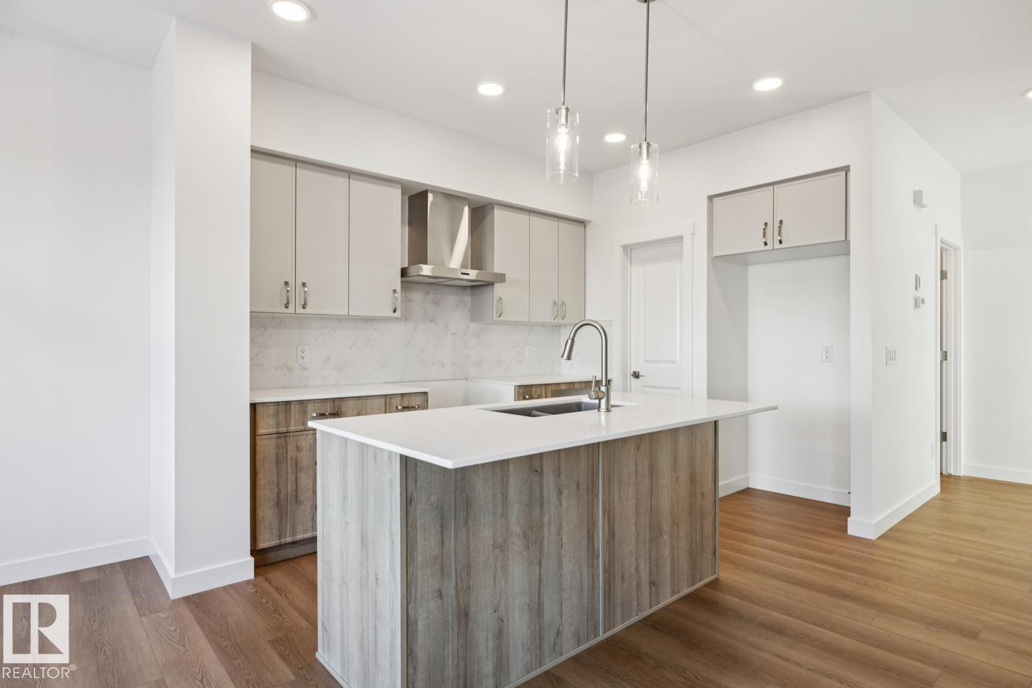 Welcome to the Renew by Sterling Homes, a beautifully finished half duplex designed for modern family living. This home features a double attached garage, separate side entrance, and 9? ceilings on main and basement levels. The open-concept main floor is complete with luxury vinyl plank flooring, a welcoming foyer with coat closet, and a half bath with pedestal sink. The kitchen offers quartz countertops throughout, Thermofoil cabinets, island with flush eating ledge, corner pantry, built-in microwave, Silgranit undermount sink, full-height backsplash, pendant lighting, and chimney-style hood fan. Large windows brighten the great room and nook, with a patio door providing access to a future deck and backyard. Upstairs, enjoy a bonus room, 3-piece main bath, laundry area, and a primary suite with walk-in closet and 3-piece ensuite with stand-up shower, plus two generously sized secondary bedrooms. Brushed nickel fixtures and basement rough-in plumbing complete this home.