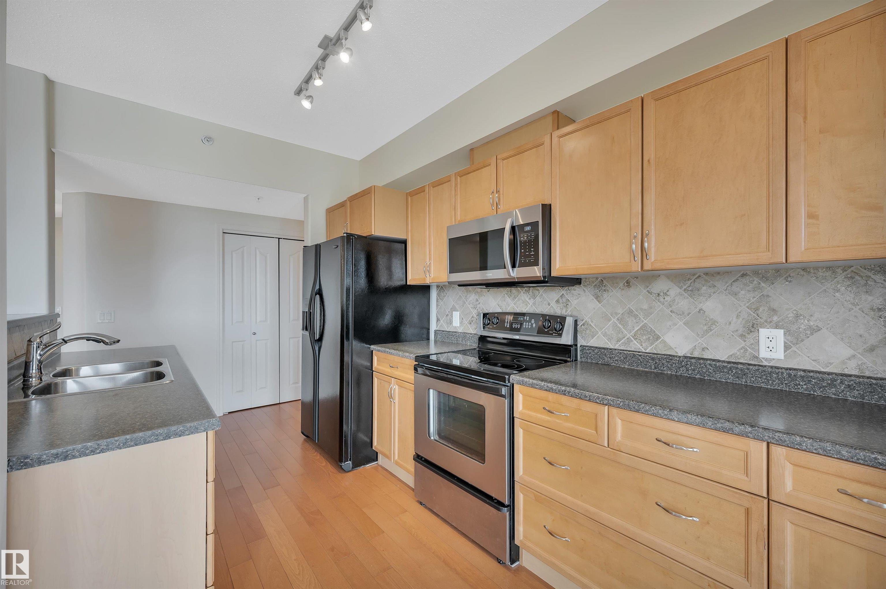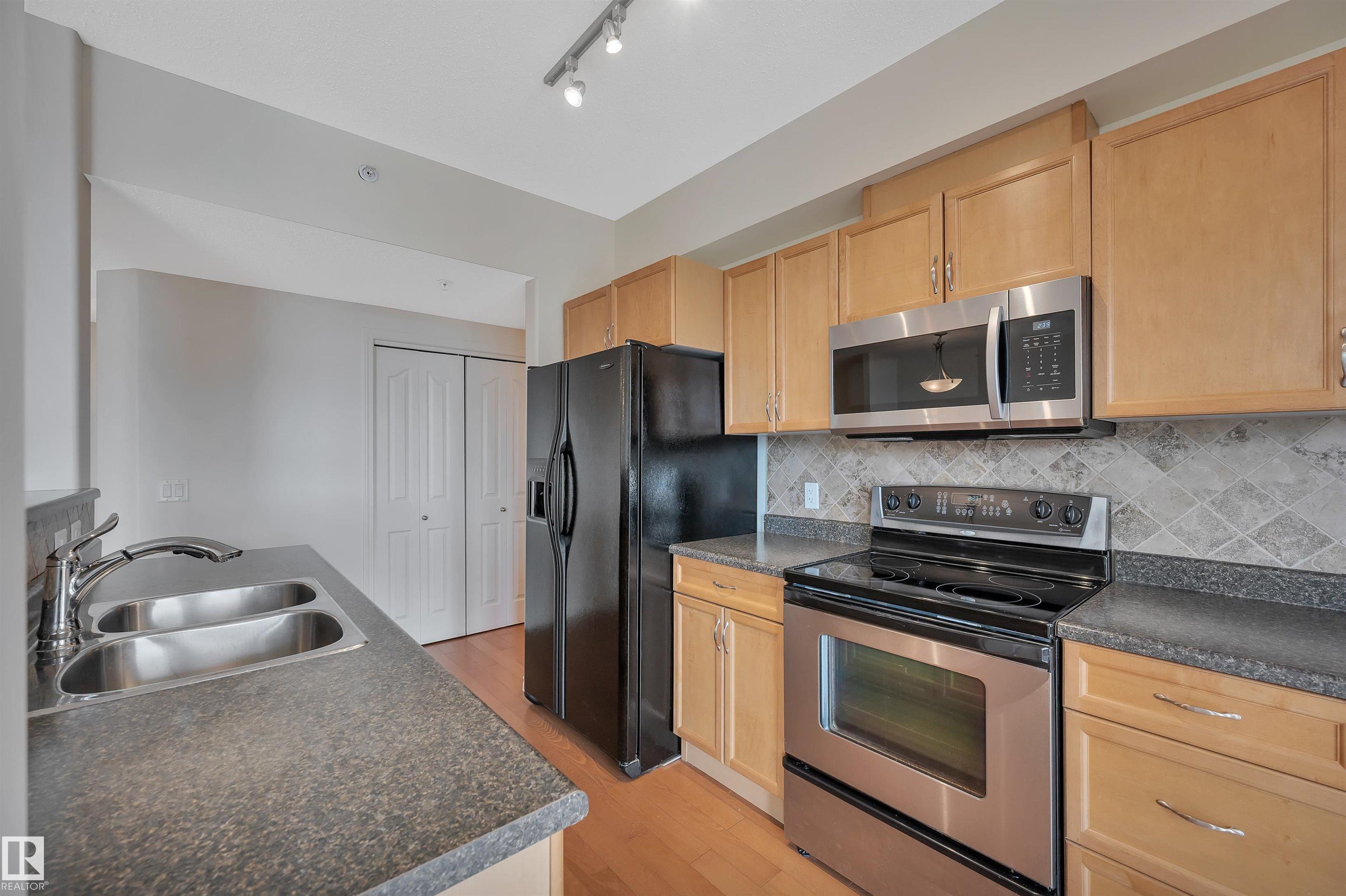 Unbeatable location situated in the centre of Sherwood Park?welcome to Park Vista. This stunning unit offers a private, titled underground double garage with additional storage?a rare find. Inside, you'll find large windows that fill the space with natural light, a gas fireplace in the living room, and access to a massive balcony perfect for outdoor seating and enjoying the view. This home features a generous primary bedroom with balcony access, a walk-through closet, and a 5-piece ensuite. A second bedroom and a full 4-piece bath offer additional space for guests or a home office. In-suite laundry adds everyday convenience. The building includes two fitness rooms and rentable guest suites for out-of-town visitors. All this in a secure, well-maintained building just steps from shopping, dining, and everything Sherwood Park has to offer.
