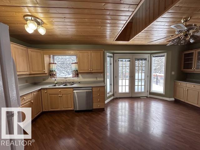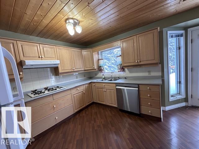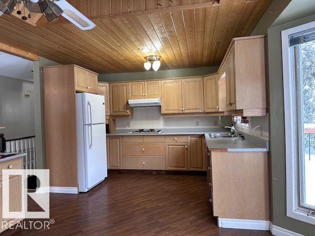 Backing onto Sturgeon River Ravine, huge lot with big trees it almost seems like an acreage. Bungalow with 1344 sf with Four (4) bedrooms 2 up and 3 down, fully finished with three bathrooms. White oak country kitchen with 4 APPLIANCES, with NEW AC ,5 SKYLIGHTS for super bright home, with fireplace and upgraded floor, The master Bdrm LOOKS OUT ONTO PRIVATE RAVINE SETTING AND HAS A TREMENDOUS 4 PC EN SUITE WITH A JACUZZI. Exposed aggregate driveway with Tandem Triple attached garage. LARGE DECK AND TREED YARD BACKING ONTO THE RAVINE. New roof , 2 new skylights, new hot water tank, new garage doors. Basement has extra kitchen area, This is a great family home !