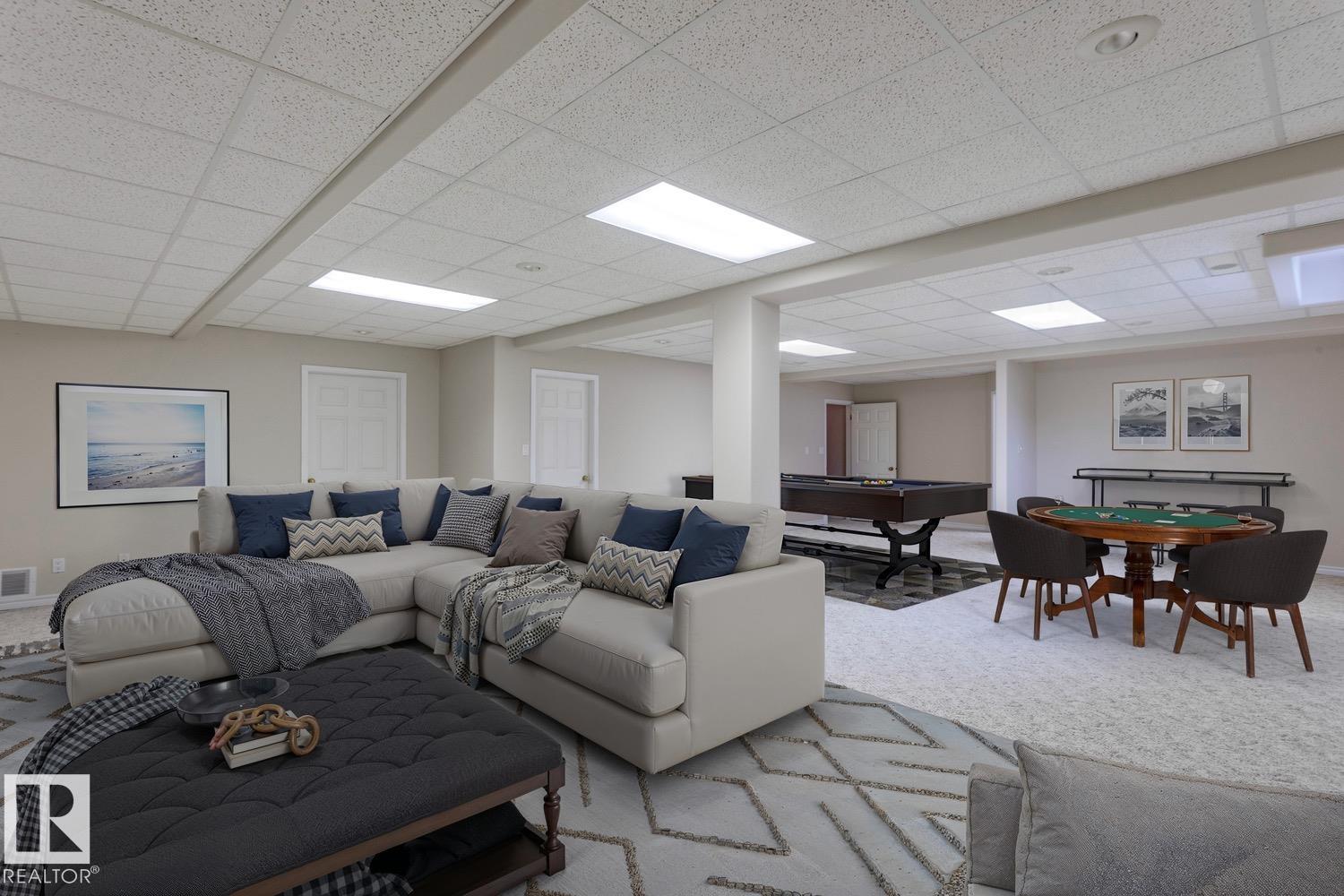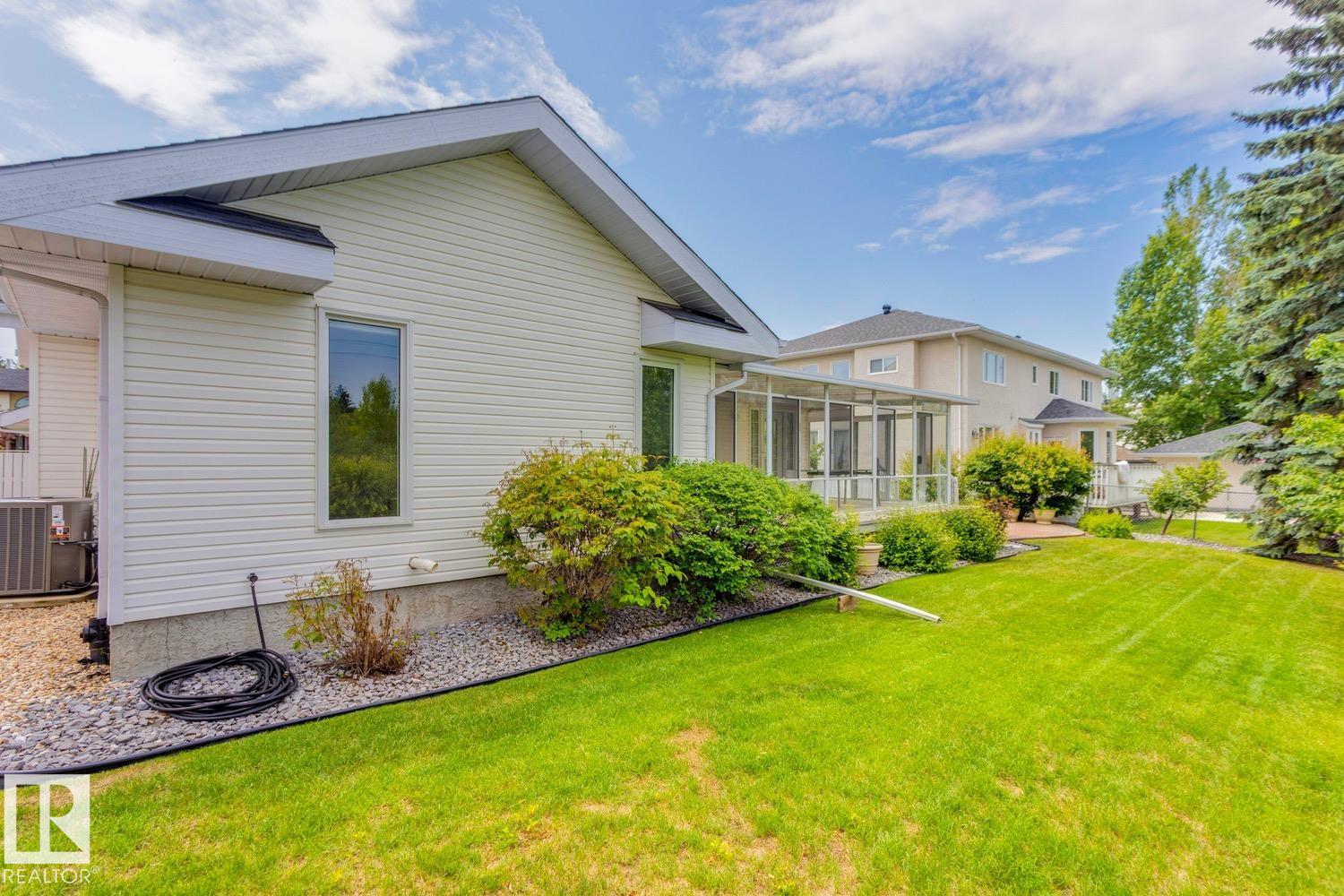 SPECTACULAR IN BLUE QUILL ESTATES! Amazing opportunity in this very desirable neighborhood! This gorgeous and meticulous Ace Lange built (original owner) bungalow offers 4200+ sqft of total living space, sits upon a beautiful 9400+ sqft lot, and is backing a lush green space. The sprawling main floor features a very welcoming entrance, huge family room, formal dining area, large kitchen w/s.s. appliances, living area w/fireplace, and soaring vaulted ceilings throughout. Spacious primary suite w/renovated 5-pc ensuite, 2 additional bedrooms, additional 4-pc bath, and laundry/mudroom. The lower level offers an enormous rec area, 2 bedrooms, 4-pc bath, and huge storage/work space. Other features include: newer roof, some windows, furnace, HWT, sunroom, and oversized garage. Located close to great schools (Westbrook/Vernon Barford), the Derrick Club, and steps to Whitemud Creek Ravine. Truly a great home!