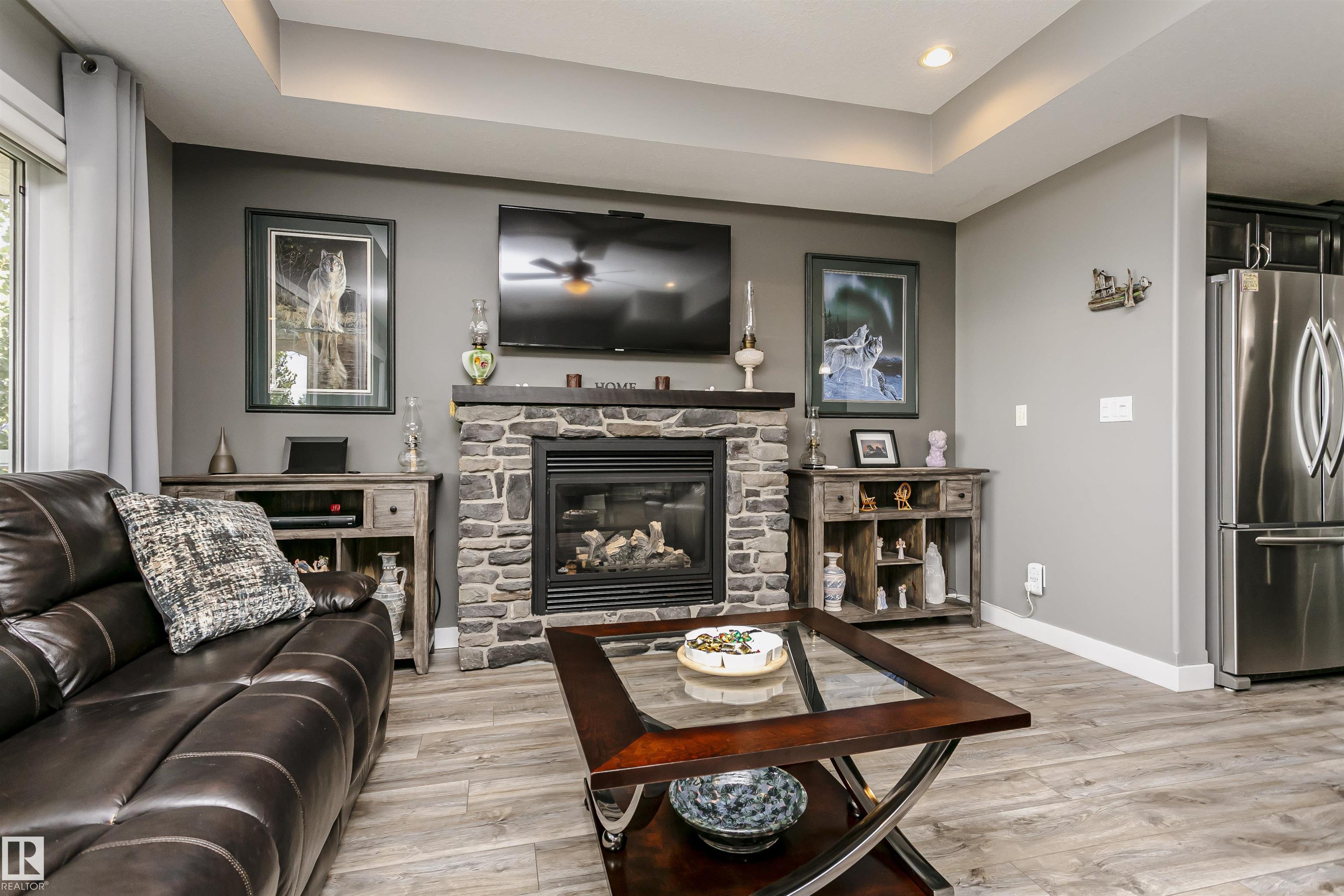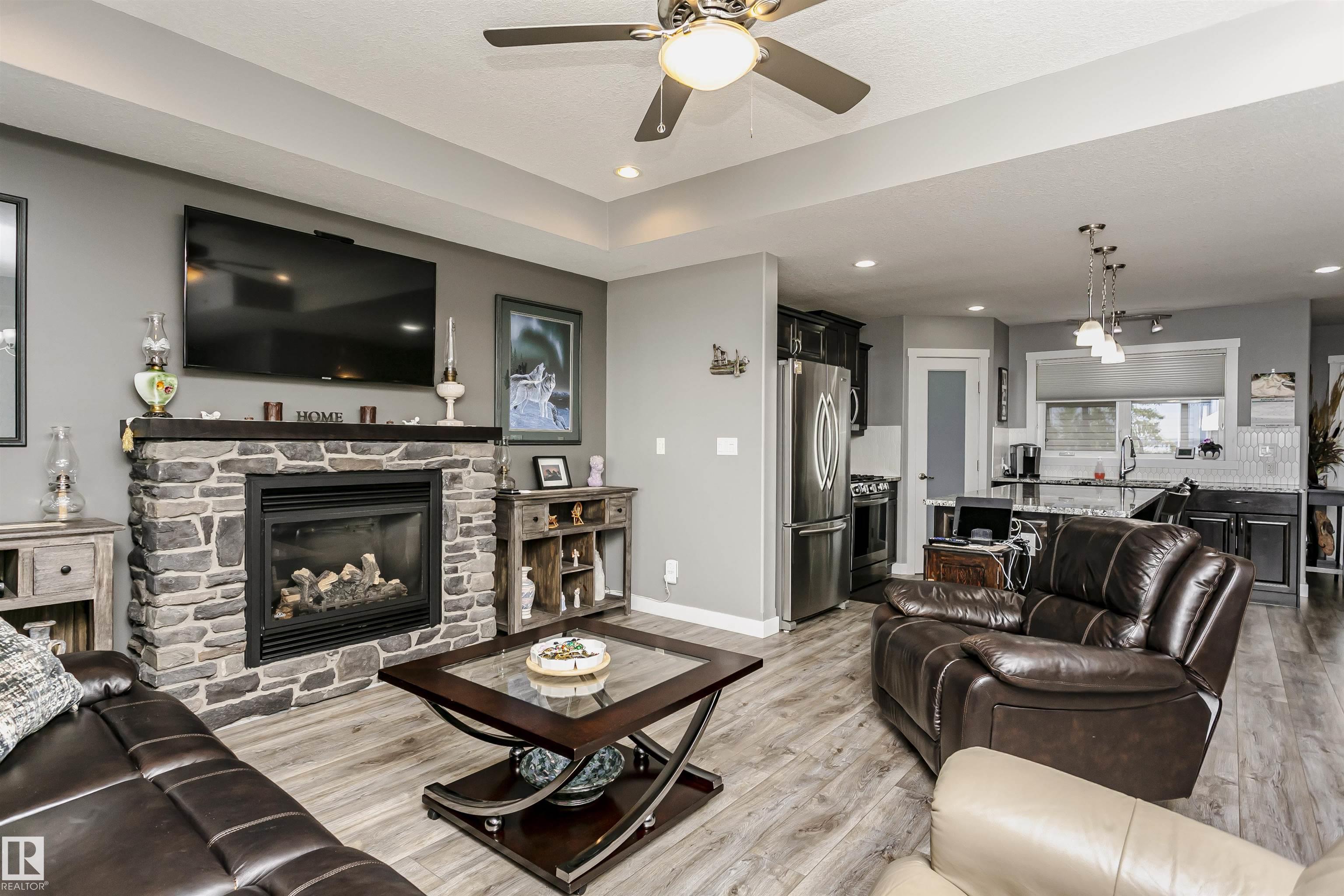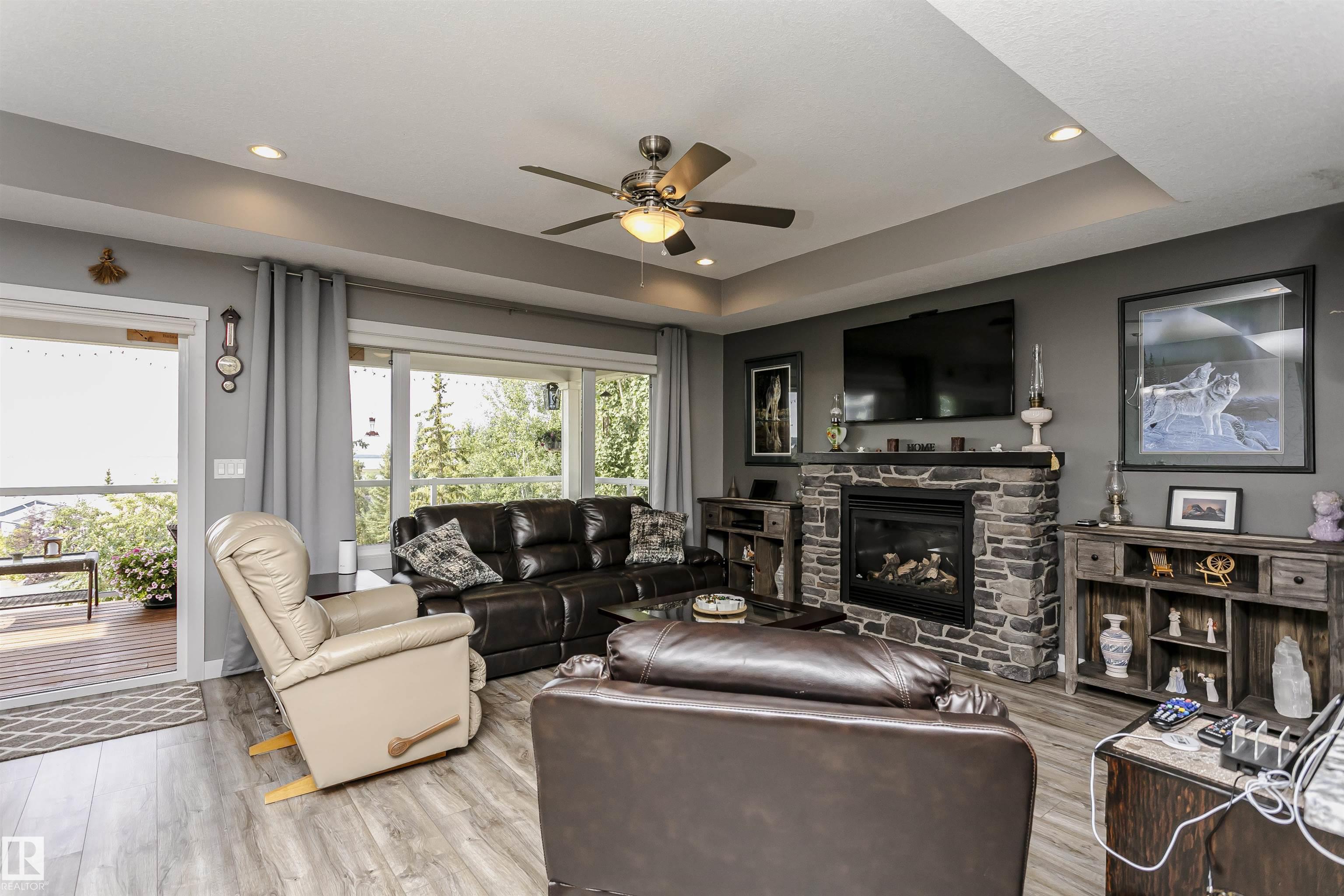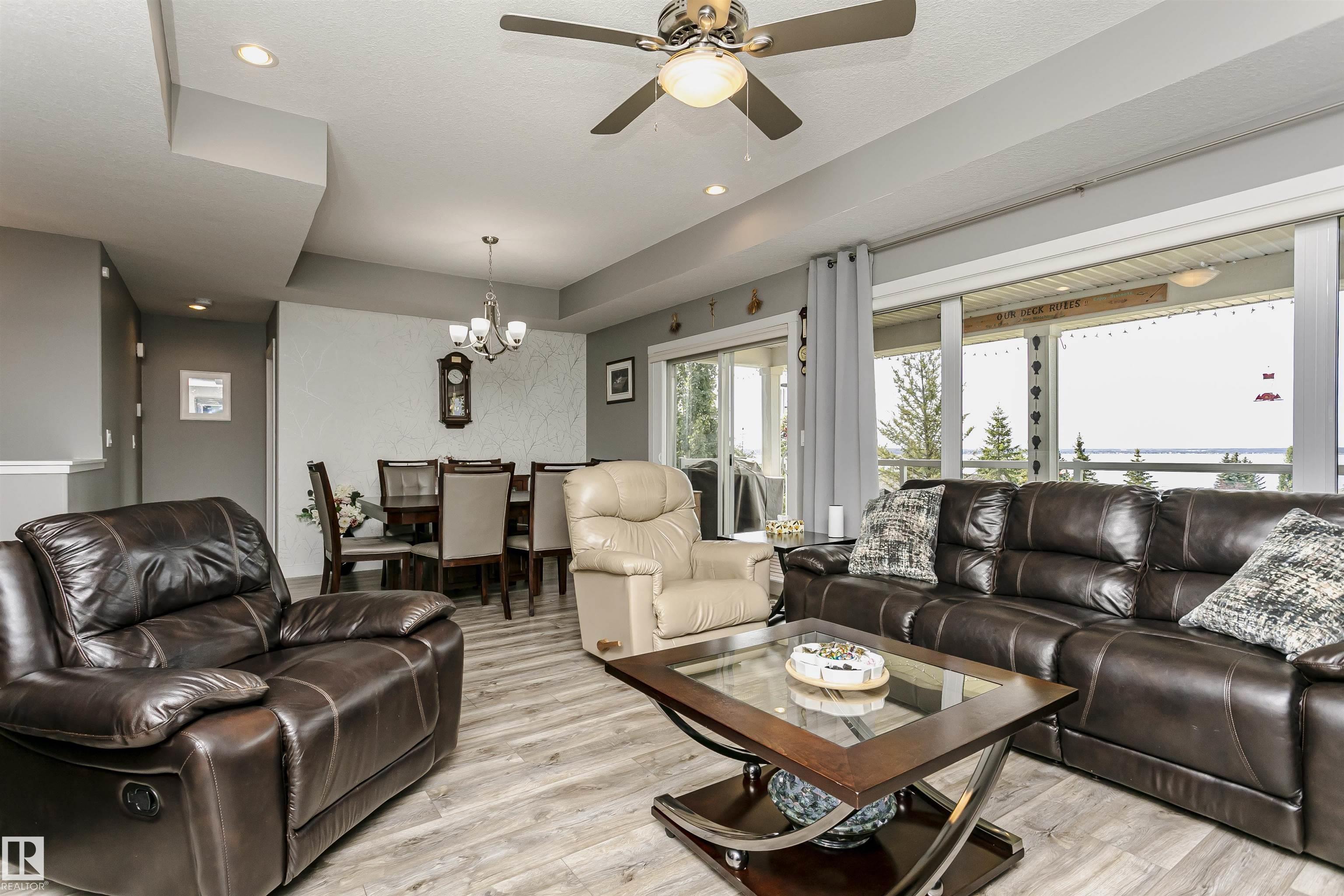 Fantastic 4 bedroom WALKOUT bungalow with THE BEST lake views!! New vinyl plank, granite counters, stainless appliances, gas stove, stone fireplace, covered deck and lower patio is just the start!! Huge Island slab in the awesome kitchen with wood cabinets opens to the living/dining room area with f/p and numerous south facing windows with patio doors that lead to the deck. The master suite takes full advantage of the lake views and features a 4 piece ensuite with glass shower. Another bedroom and 4 piece bath round out the main floor. In the fully finished walkout basement you'll find two more massive bedrooms, one with lake views of its own along with a 4 piece bath and a great family room. Garden doors from the family room lead out to the covered patio. The garage is a heated oversized double measuring 29 feet long on one side...wow! As an owner you can enjoy amenities like the private marina, swimming pool, fitness centre, clubhouse and beachfront park. New hwt and mw/hoodfan as well!