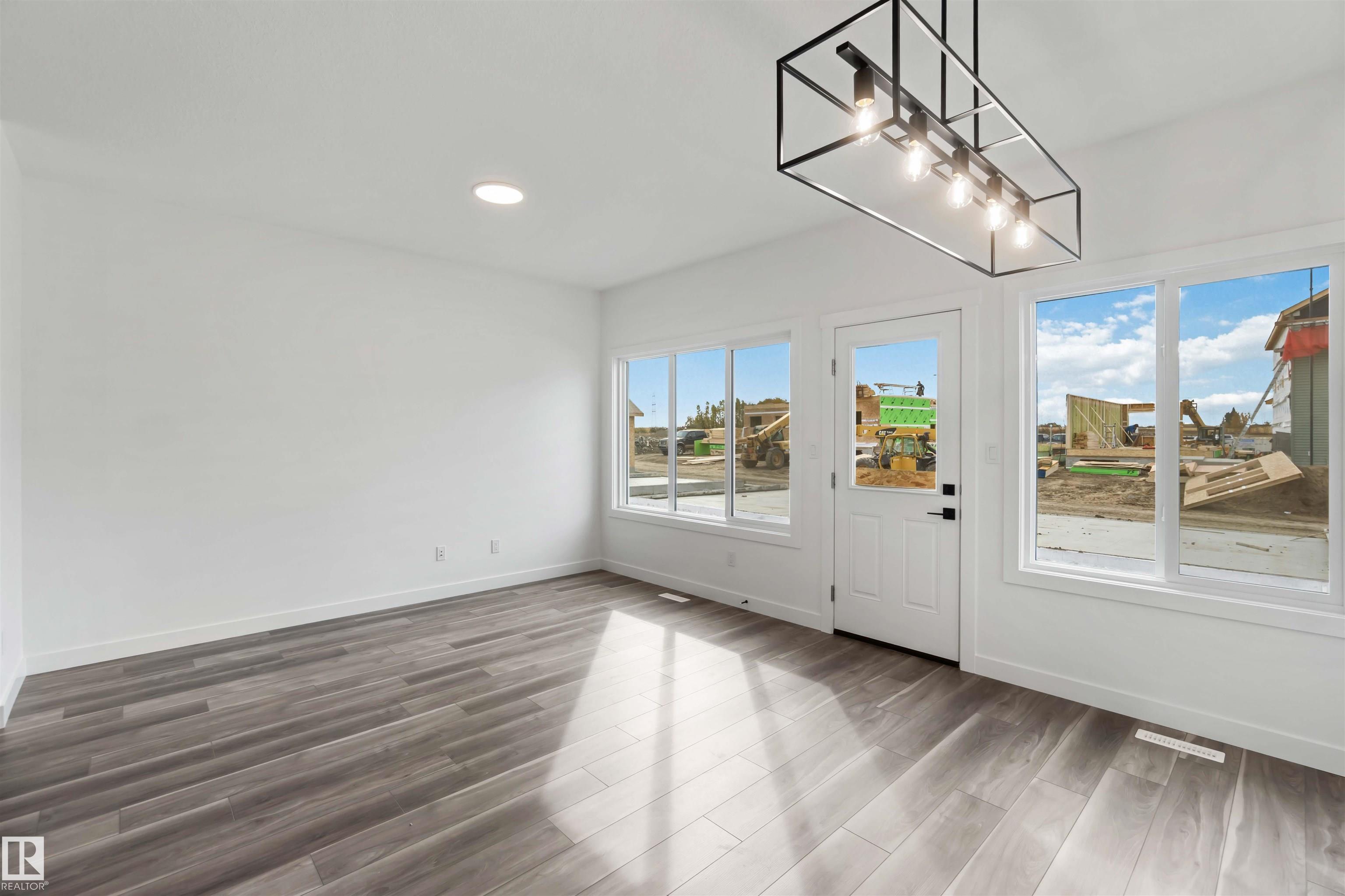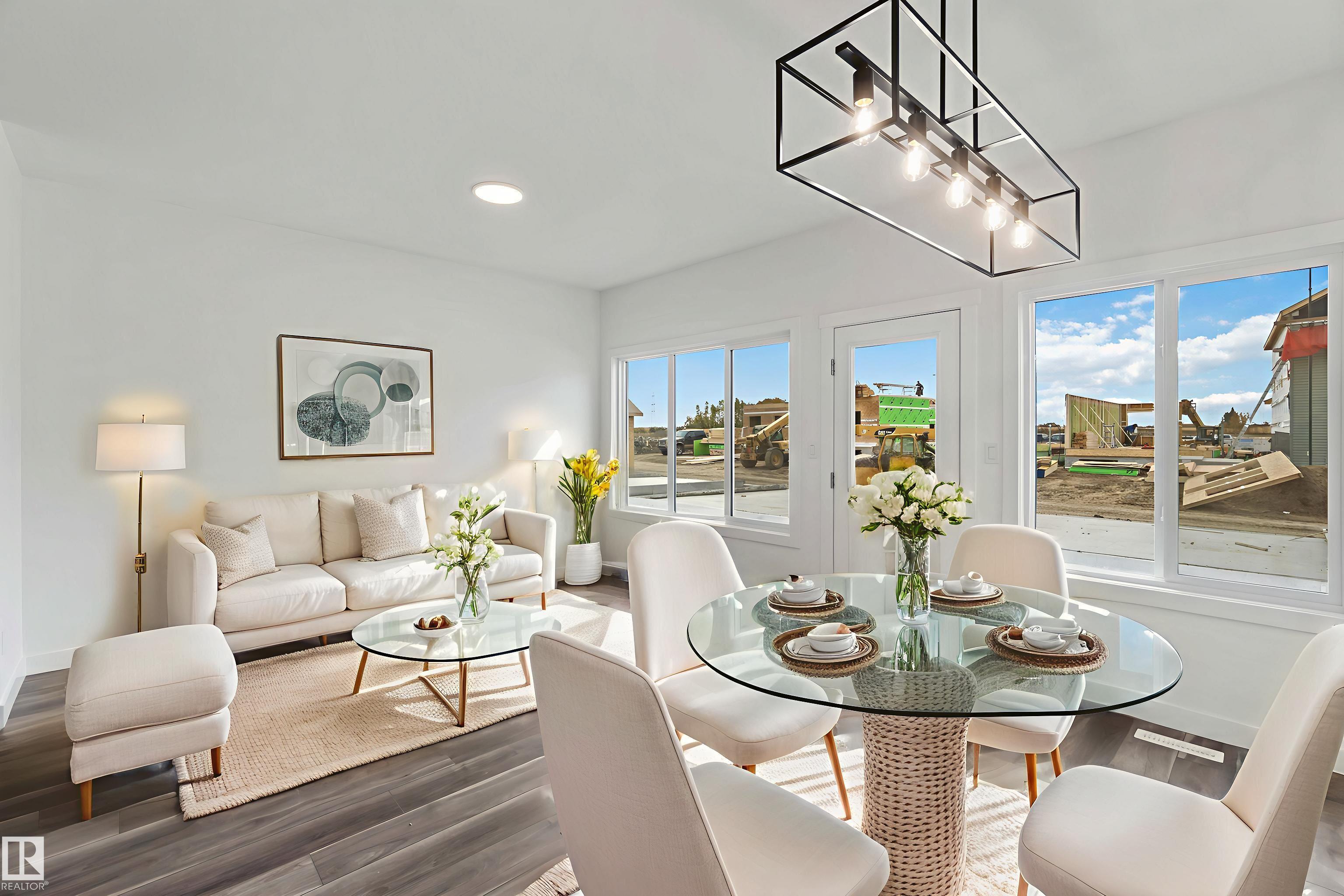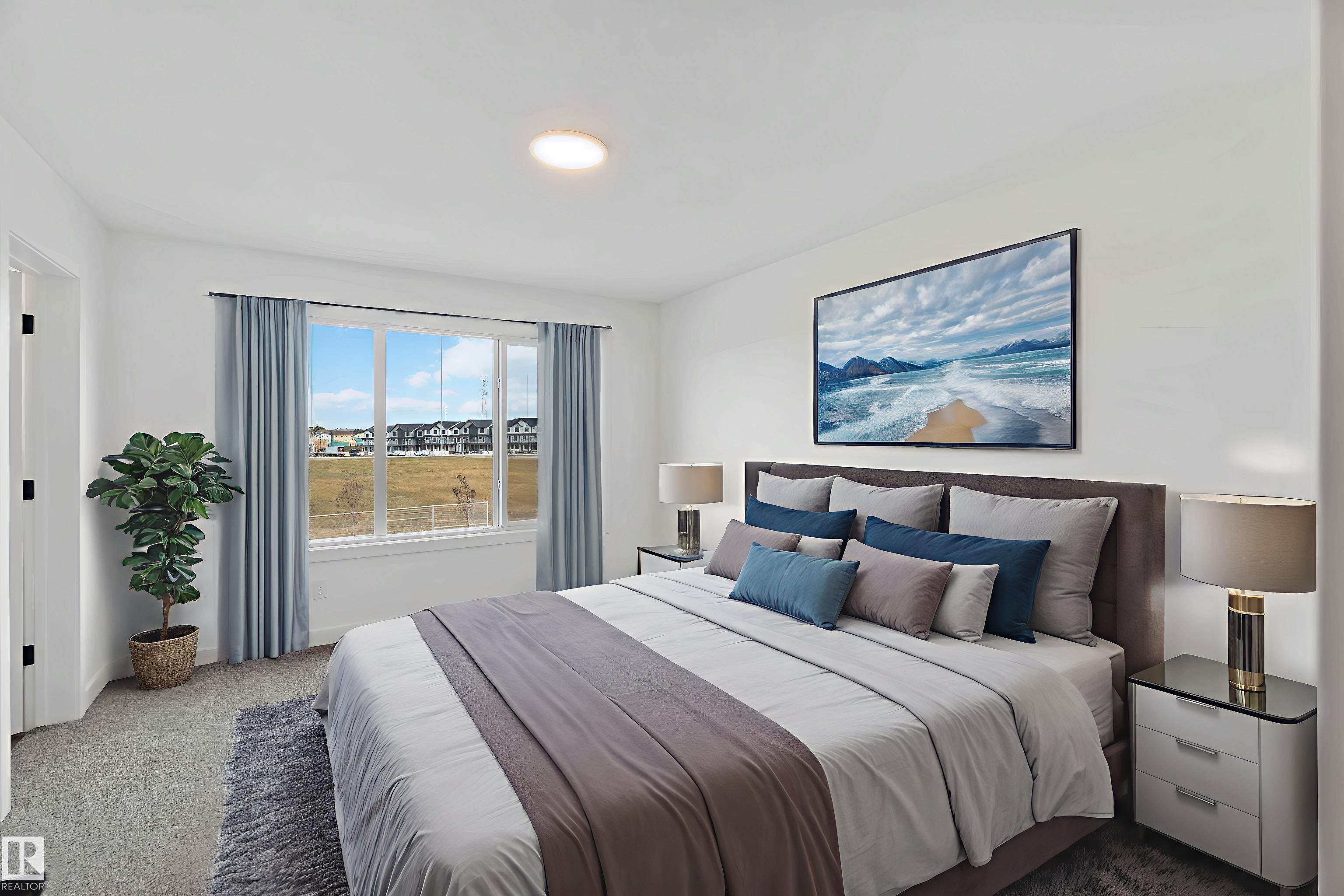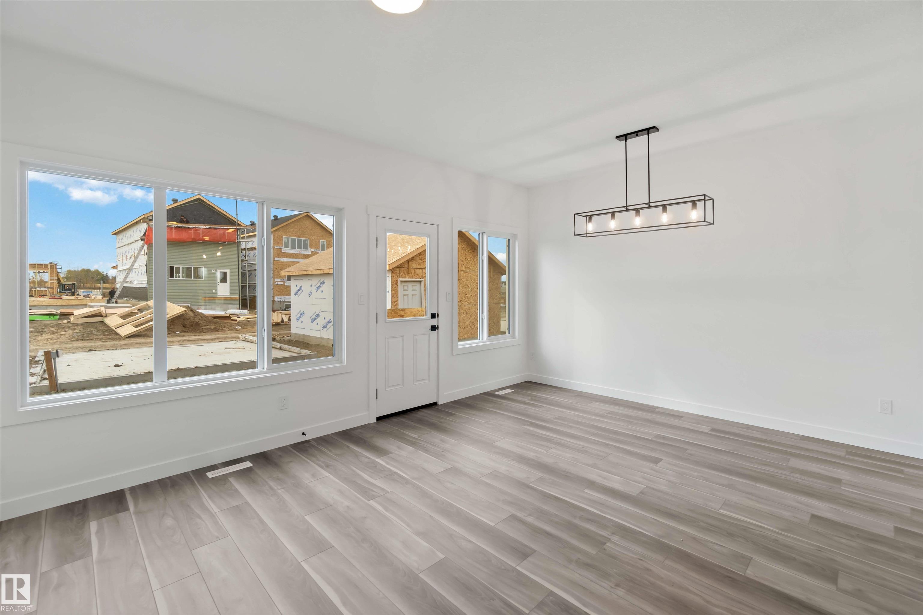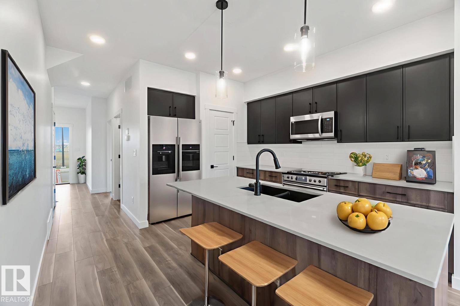 Welcome to the Sapphire by Sterling Homes, a 1,615 sq. ft. home designed for efficient modern living. The main floor features luxury vinyl plank flooring and 9? ceilings, with a bright open layout that includes a main-floor bedroom and a 3-piece bath with walk-in shower. The kitchen offers quartz countertops, an island with flush eating ledge, Silgranit undermount sink, over-the-range microwave, tiled backsplash, upgraded Winston cabinetry with soft-close doors and drawers, and a corner pantry. Large windows, pendant lighting, and a garden door fill the living area and nook with natural light. Upstairs includes a bonus room, primary suite with walk-in closet and 3-piece ensuite, two additional bedrooms, a 3-piece main bath, and a laundry closet for stackable washer and dryer. Black plumbing and lighting fixtures, separate side entrance, 9? ceilings on main and basement levels, basement rough-in, and Sterling Homes? Signature Specification complete this home.