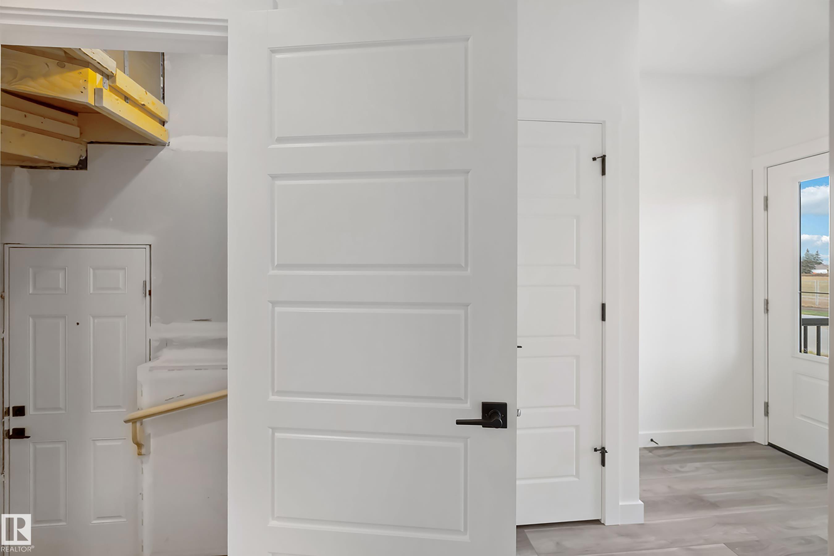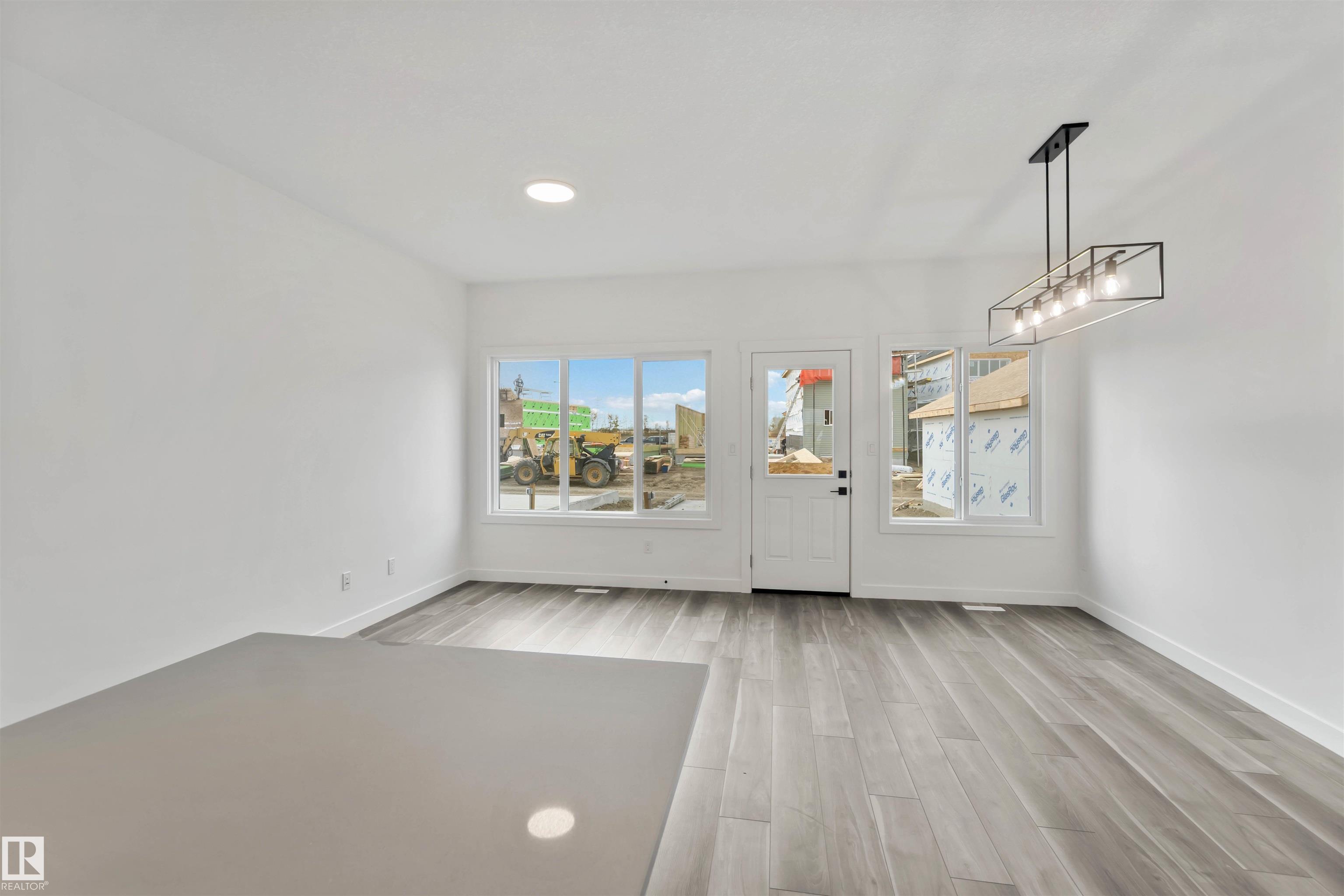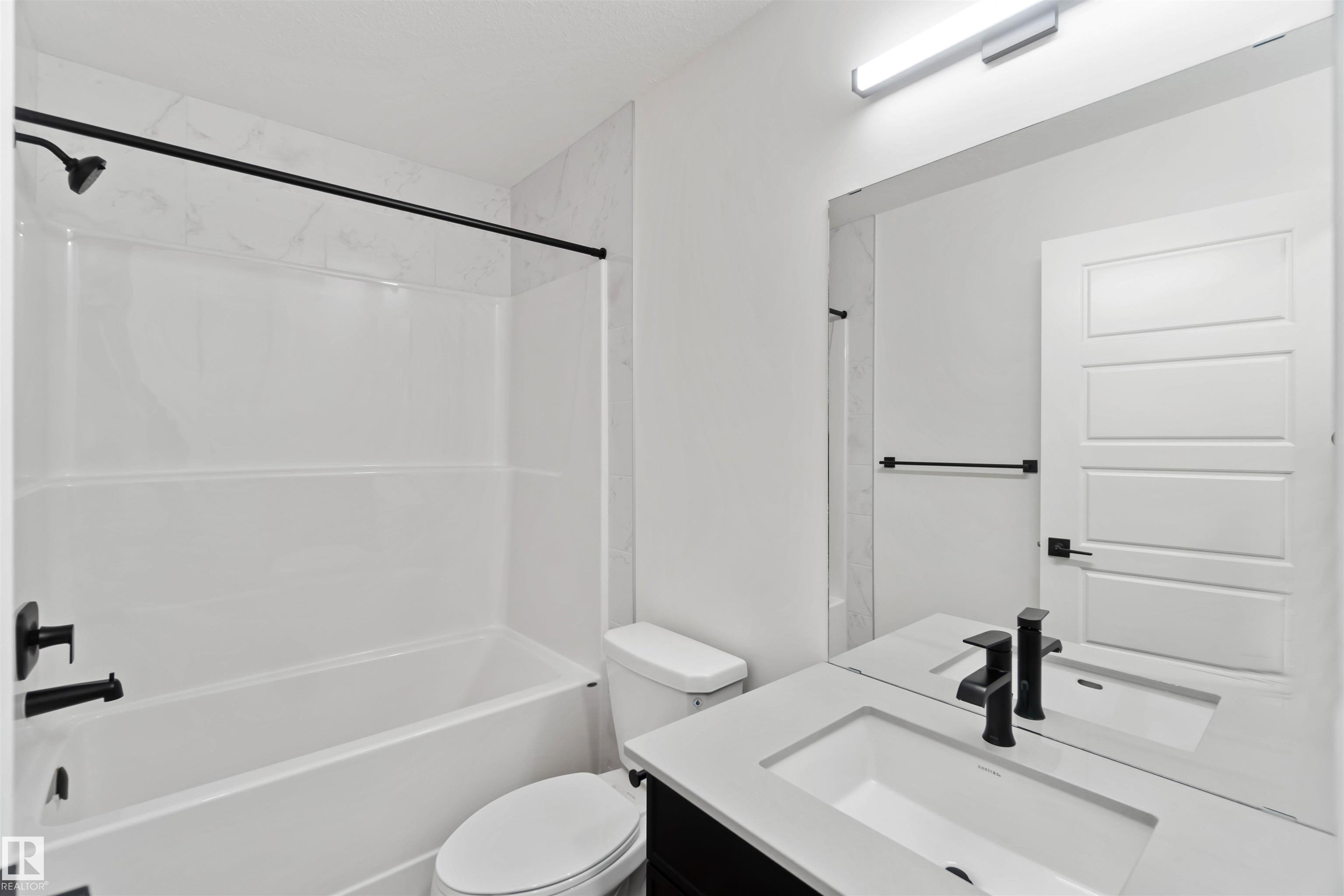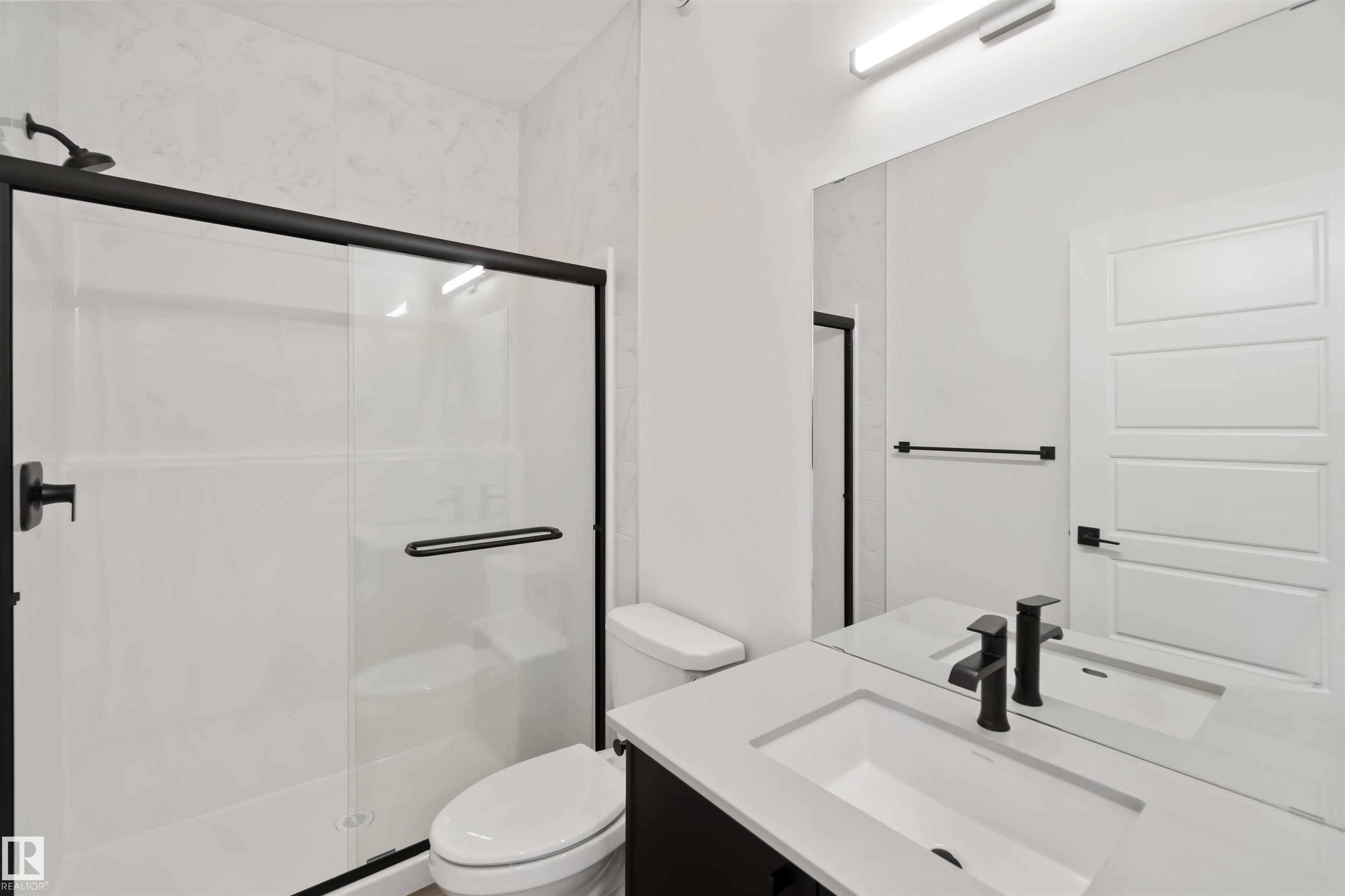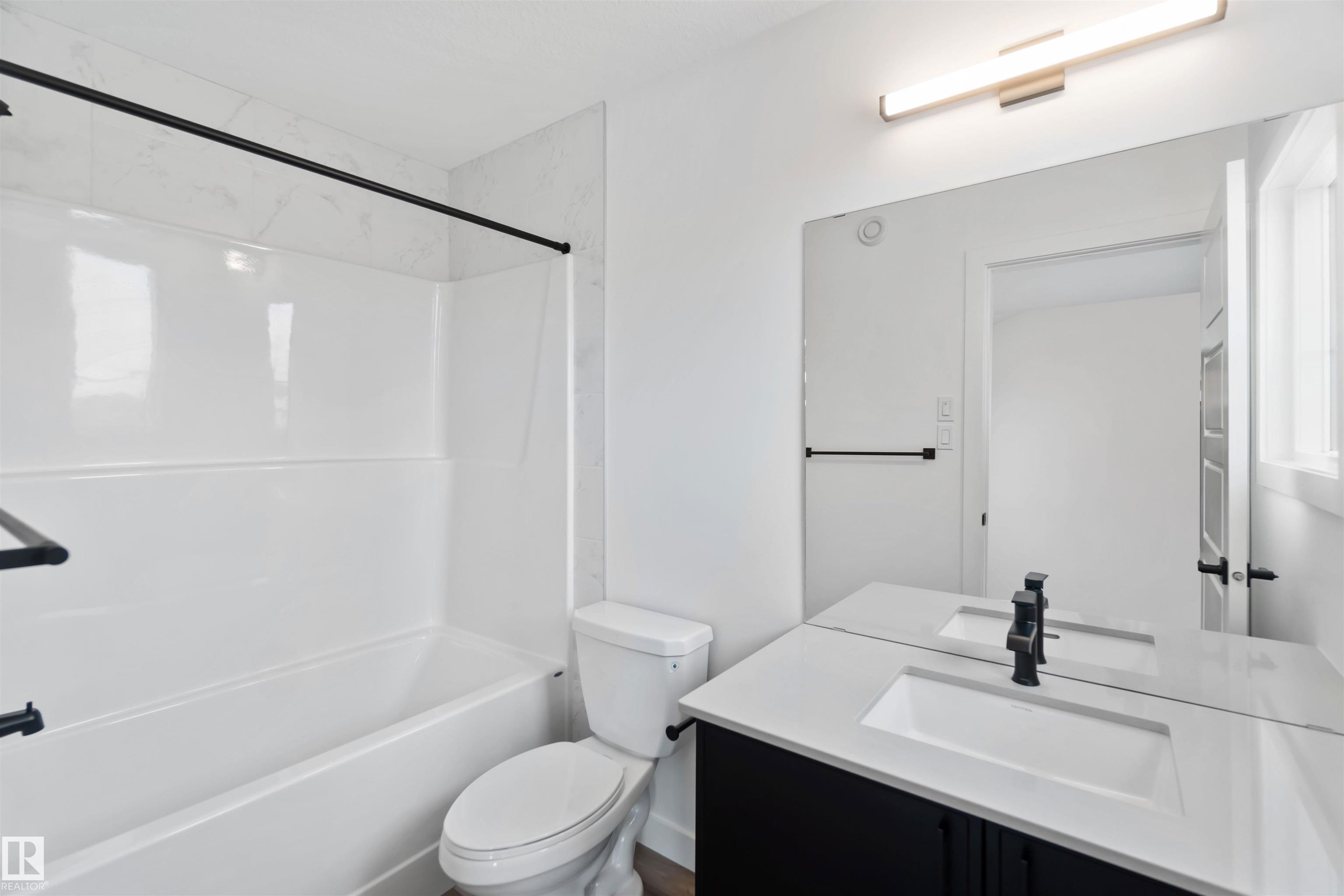 Welcome to the Sapphire by Sterling Homes, a 1,615 sq. ft. home designed for efficient modern living. The main floor features luxury vinyl plank flooring and 9? ceilings, with a bright open layout that includes a main-floor bedroom and a 3-piece bath with walk-in shower. The kitchen offers quartz countertops, an island with flush eating ledge, Silgranit undermount sink, over-the-range microwave, tiled backsplash, upgraded Winston cabinetry with soft-close doors and drawers, and a corner pantry. Large windows, pendant lighting, and a garden door fill the living area and nook with natural light. Upstairs includes a bonus room, primary suite with walk-in closet and 3-piece ensuite, two additional bedrooms, a 3-piece main bath, and a laundry closet for stackable washer and dryer. Black plumbing and lighting fixtures, separate side entrance, 9? ceilings on main and basement levels, basement rough-in, and Sterling Homes? Signature Specification complete this home.