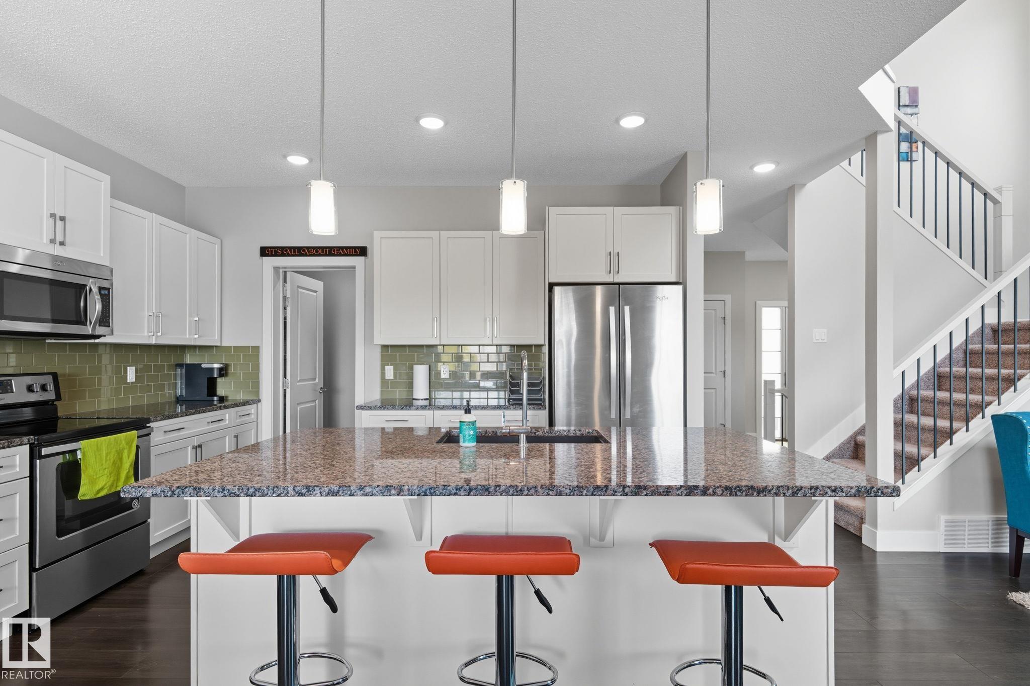 PERFECT family home nestled nicely in the desirable neighbourhood of Aspen Trail Offers 3+2 bedroom, 3.5 bath, AC, 9 ft ceilings and developed basement. The BEAUTIFUL kitchen offers plenty of cabinets, stainless steel appliances, walk through pantry & granite counter tops all overlooking the sunny dining area & family sized living room with fireplace and soaring ceilings with a full wall of windows that bath this space with warming natural light. Guest bath & laundry/ mud room compliment the functional layout. Wrought iron bannisters lead you to the second level where you will find a bonus room, 3 sizable bedrooms and main bath. Bonus room is open to below giving you a feeling of expansive space. The king-sized primary suite with walk in closet & luxurious ensuite. 3 more bedrooms are all generous in size & 4pc bath complete the upper level. Fully developed basement has 2 sizable bedrooms, family sitting room and another 4-piece bath. Located steps from parks, schools, shopping & walking trails.