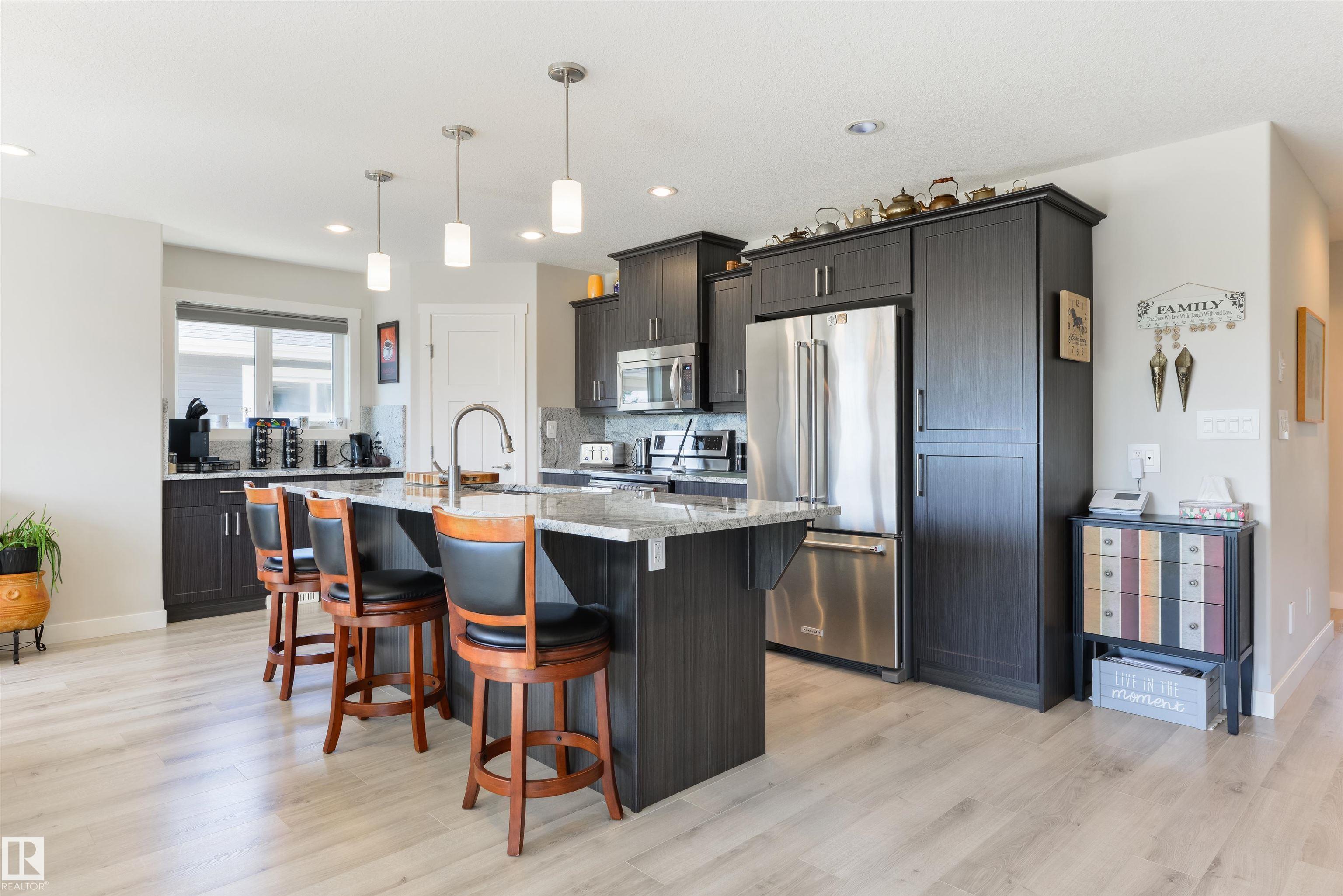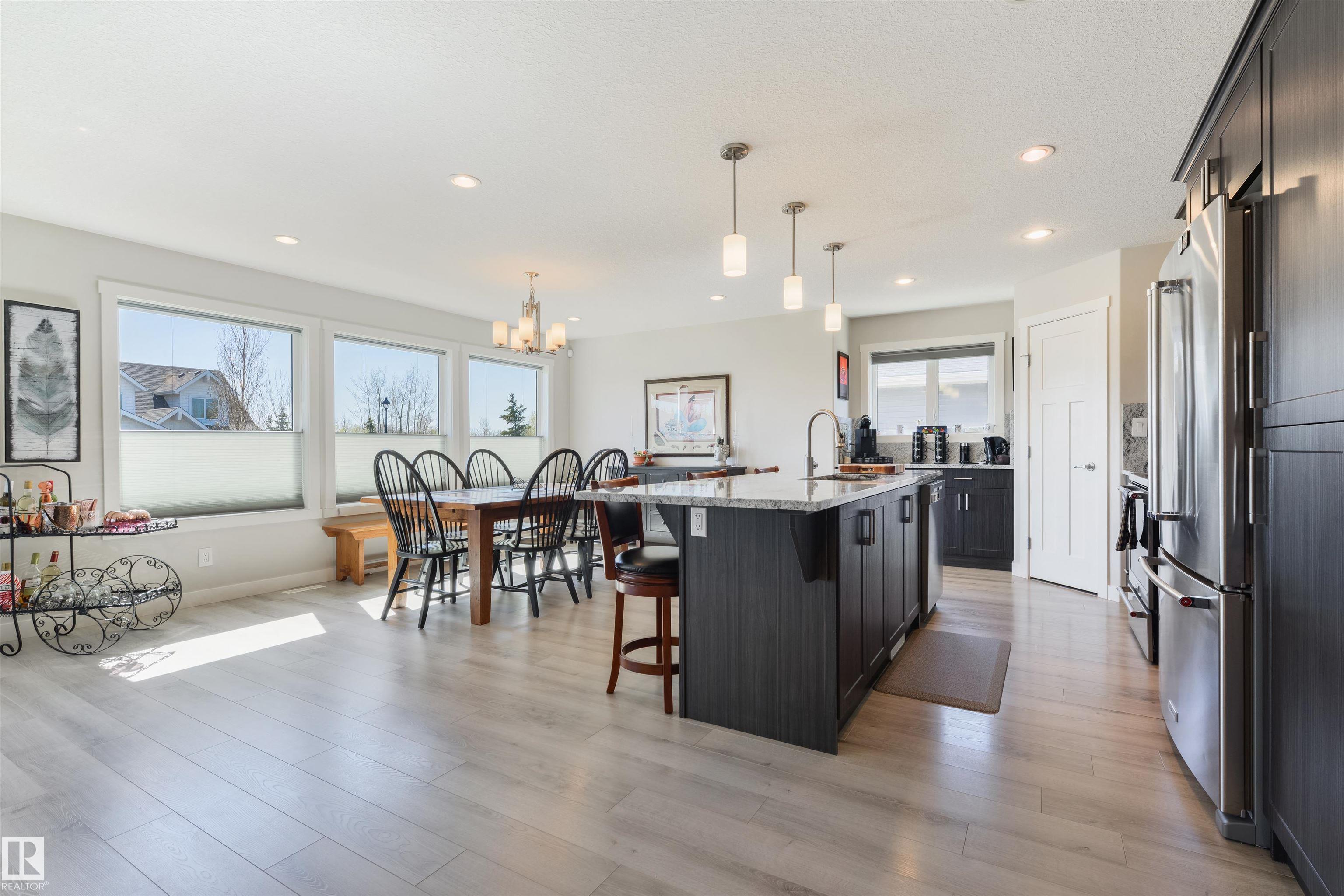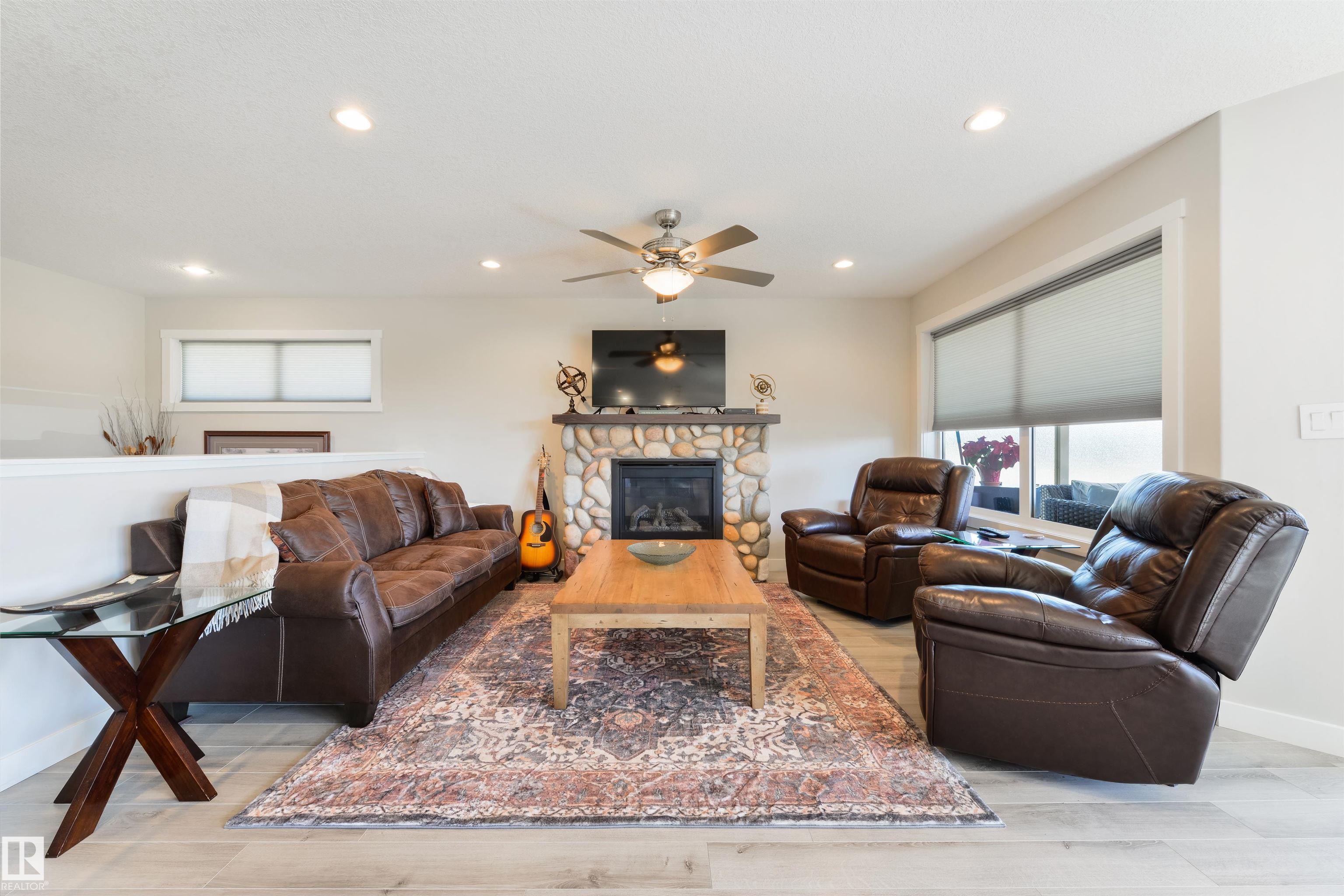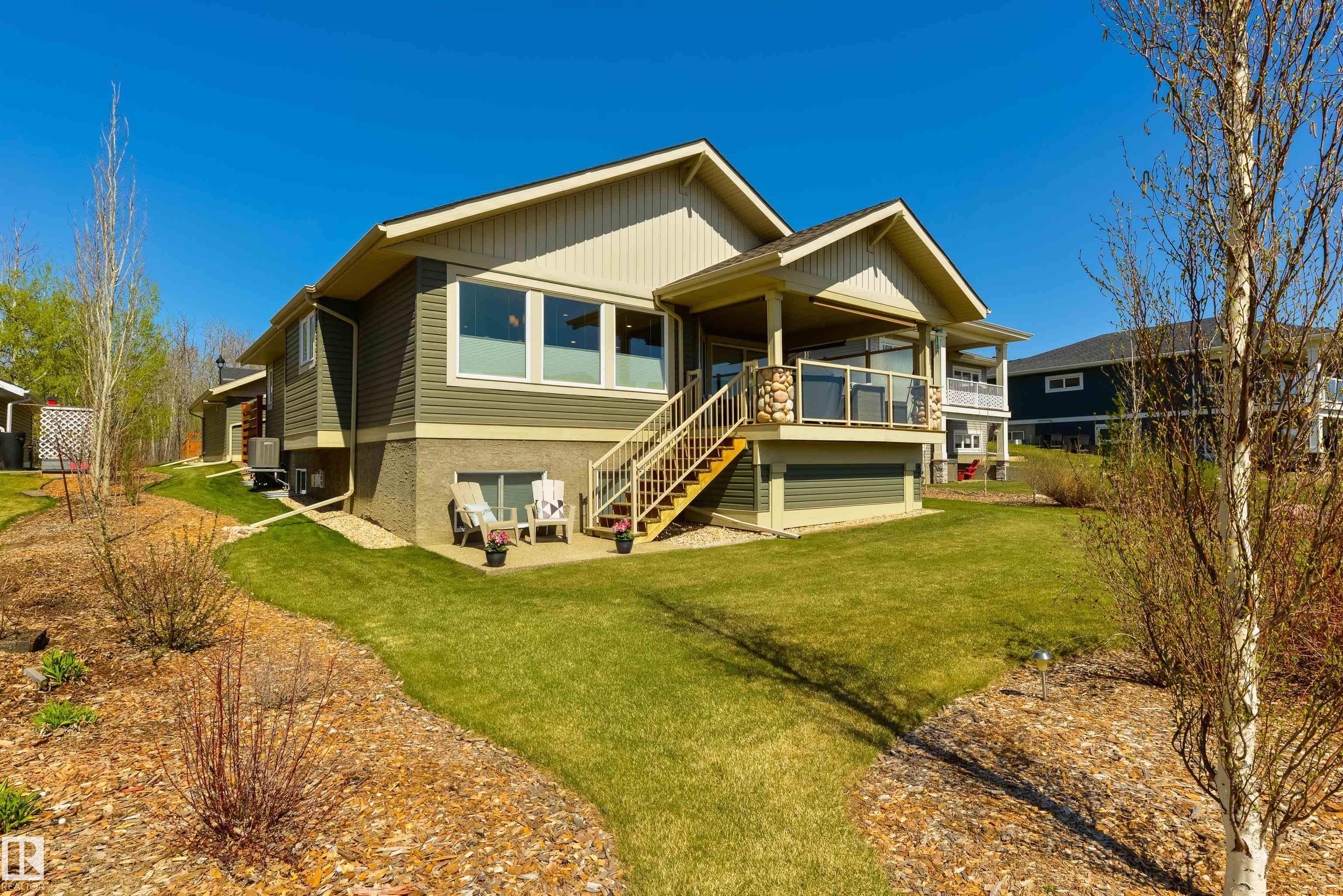 TAKE IN THE LAKE VIEWS and full recreational facilities, that include a community pool, fitness facilities and a club house that makes for the ultimate year-round or summer home experience. In this immaculate 4 bdrm bungalow, situated in the prestigious gated community of Estates at Waters Edge. Step through the front door to your open concept main floor, that boasts a spacious living rm, a large dining area for entertaining and a chef?s dream kitchen with a large central island, granite counter tops, plenty of cupboard space and a coffee bar, The spacious primary bdrm includes a 4pc ensuite and a large walk-in closet, a second guest bdrm and 4pc main bathroom complete the main floor. Downstairs in your professionally completed basement you are greeted to a huge rec room with large windows, perfect for entertaining family and friends, 2 generous sized bdrms and a 3pc bathroom complete this phenomenal home. Outside is a fully covered private deck for BBQ's and heated double oversized detached garage.