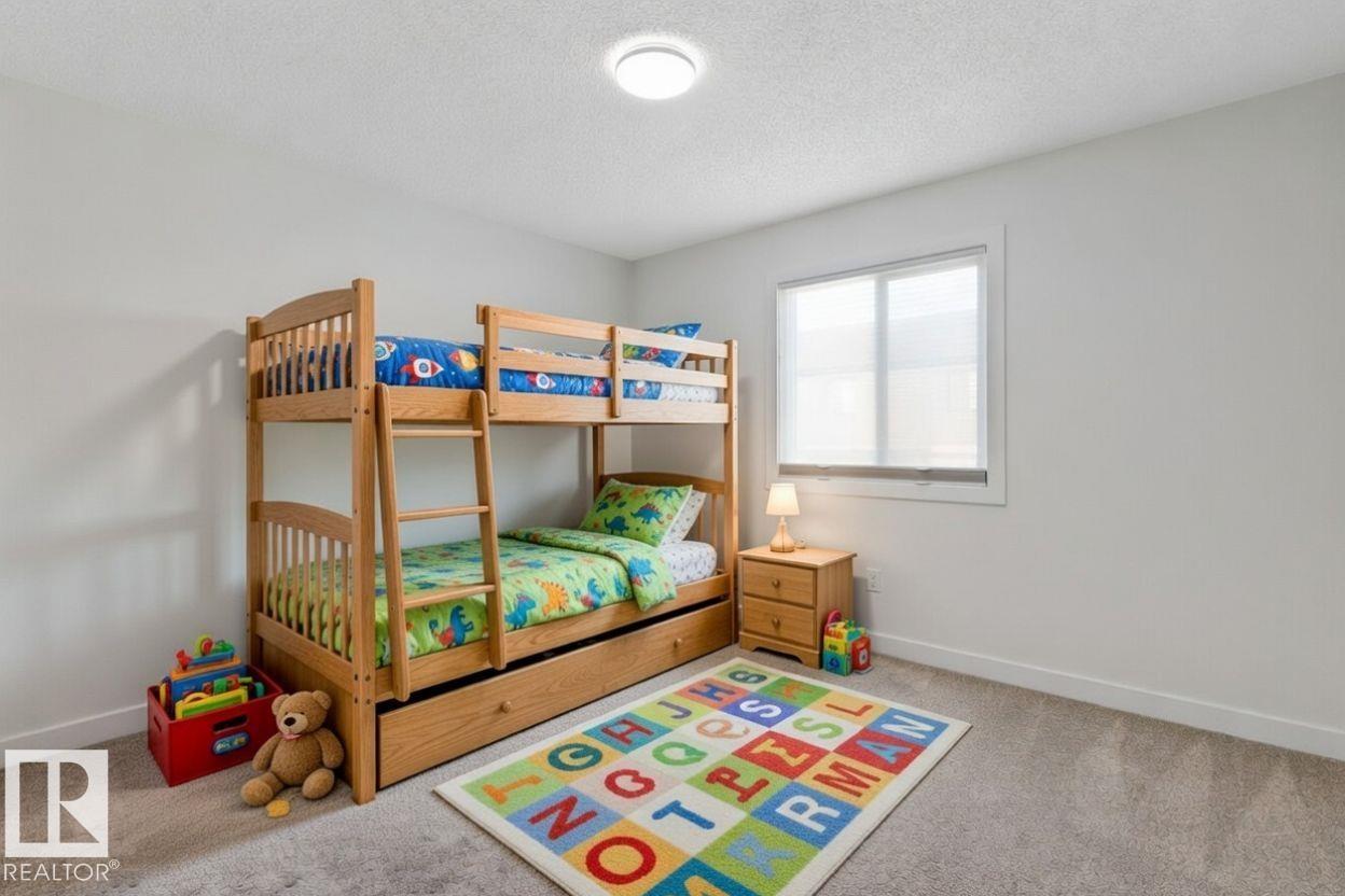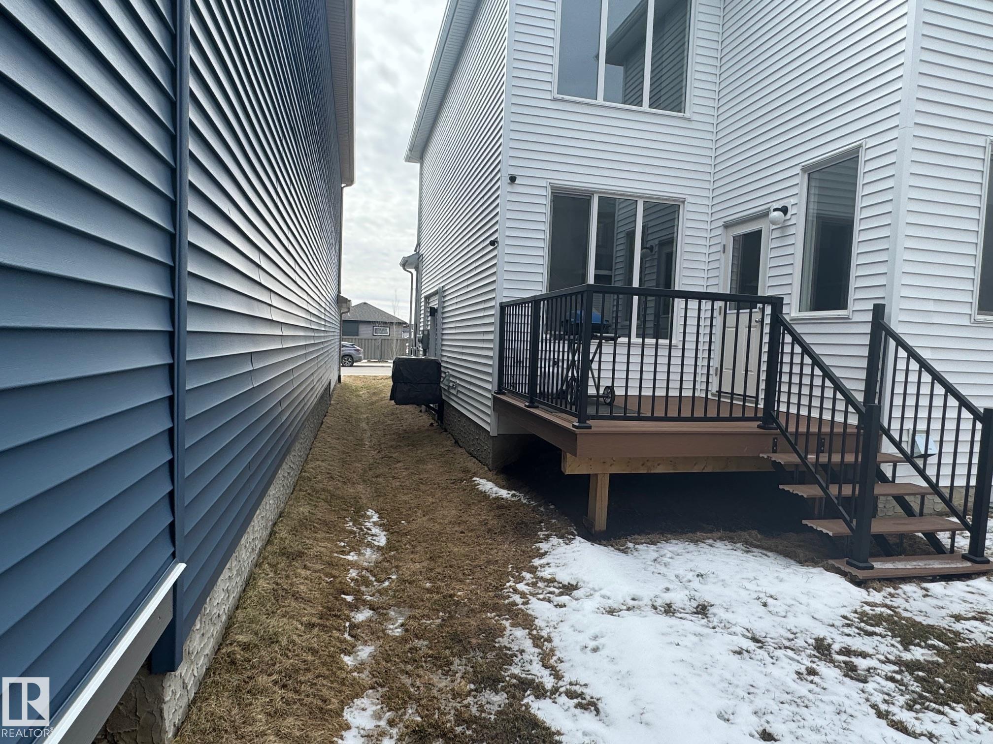 Why buy new when you get a finished basement, a/c & landscaping completed! Over 2525 sq ft of finished living space and absolutely perfect! Lightly lived in & fully finished - this one shows better than new! Complete with a rare & very sought after 4 piece bathroom on the main floor across from the office / bedroom. You will love the flow of this incredible home! Main floor vaulted ceiling allowing an abundance of natural light to the living room, 2 tone cupboard kitchen & dining area on main floor. The 2nd level features 3 very large bedrooms with black out blinds - motorized in primary. An incredible spa ensuite with soaker tub, glass shower & extra large walk in closet. The basement has a large bdrm, 4 piece bath & large living area with storage in mechanical room. Deck with gas line & landscaping done.Close enough to walk your kids to school & to the future Lewis Farms Rec Centre & nearby shops. A double attached garage with extra room for storage. Welcome home to Secord! Some photos virtually staged.
