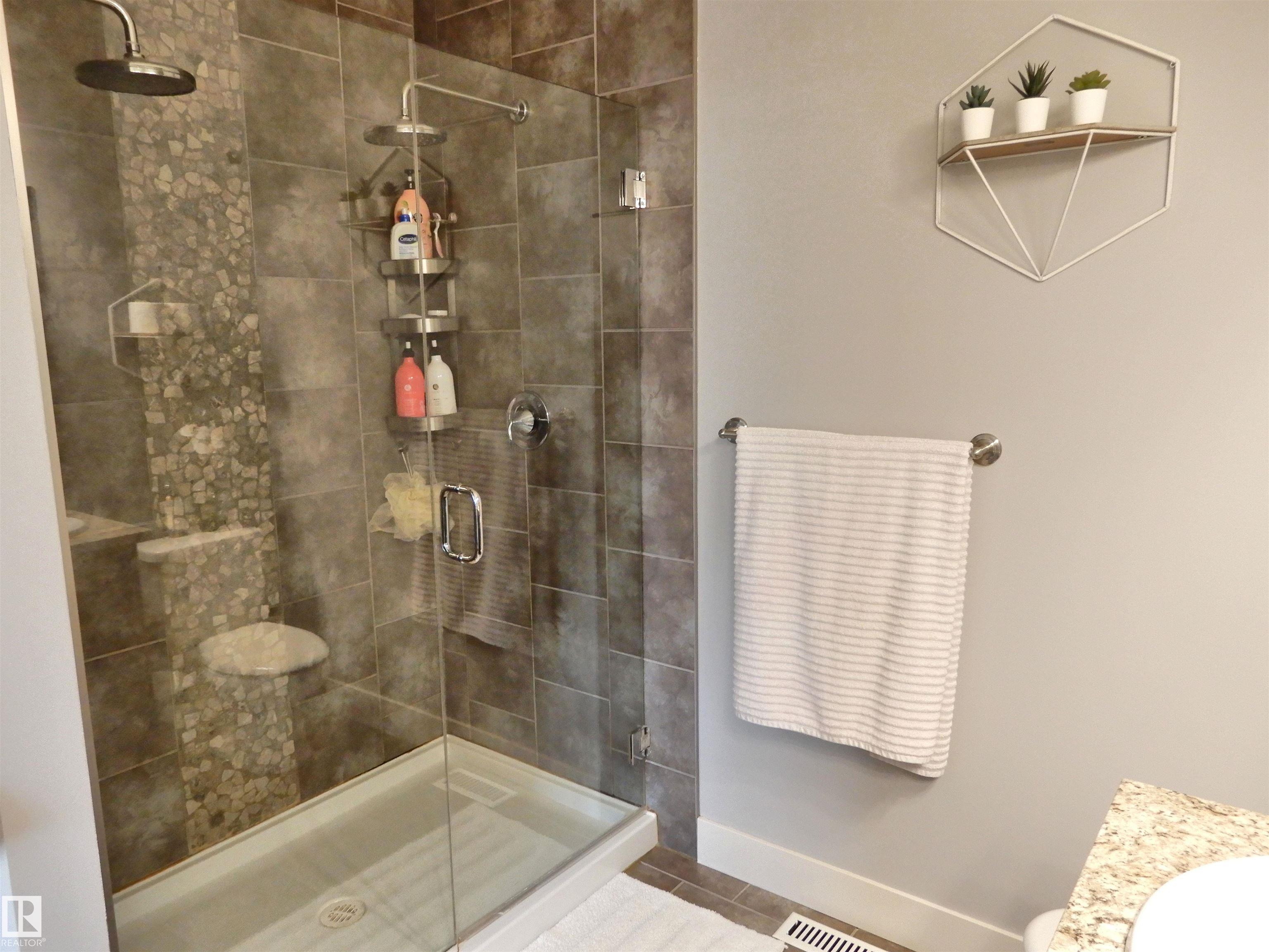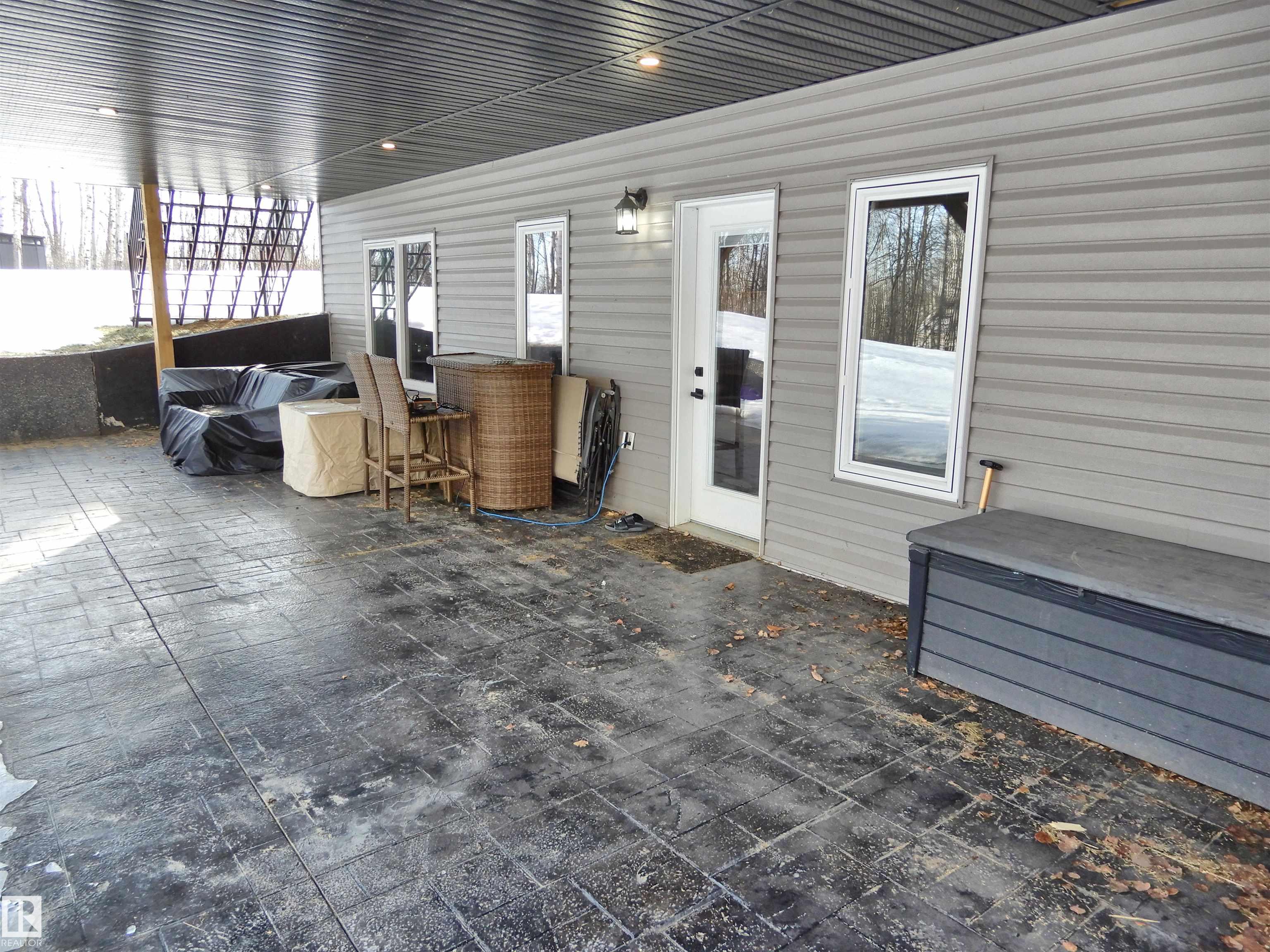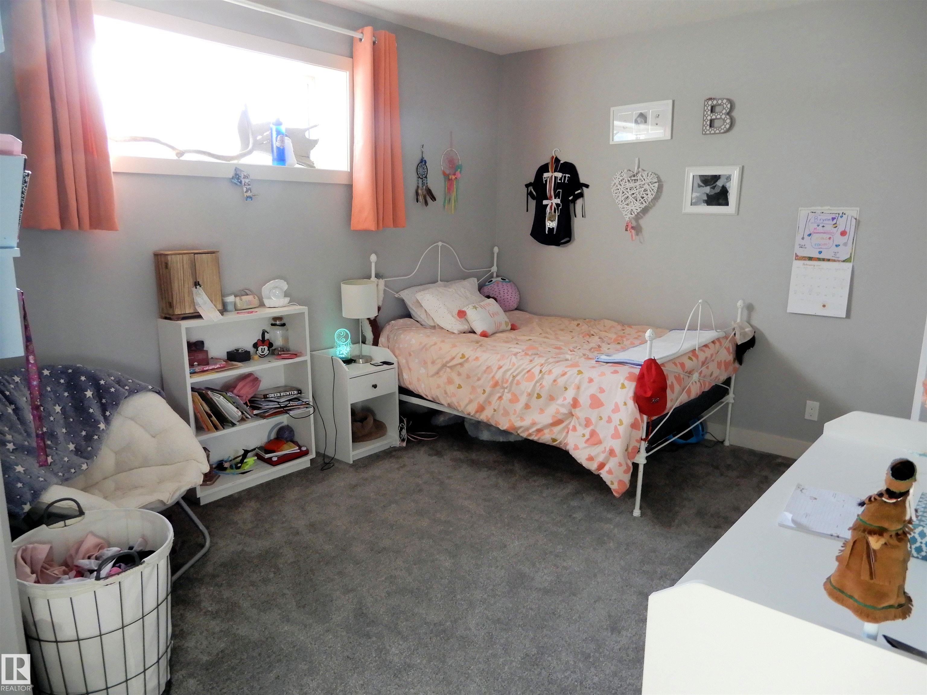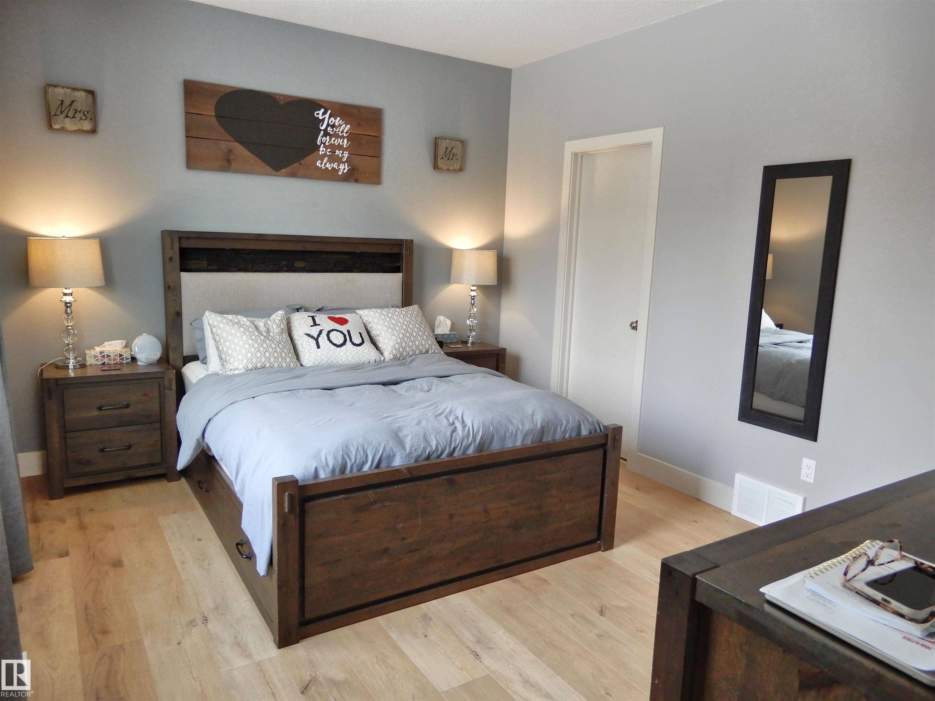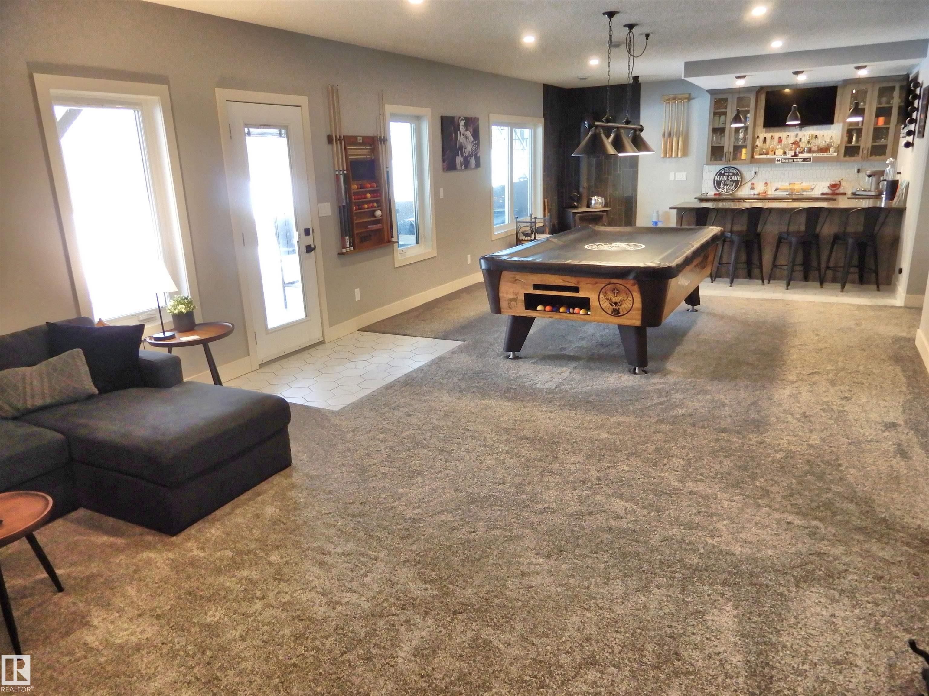 Welcome to Bridlewood Mews, where comfort, privacy, and nature come together. Built in 2014, this 1,356 sq. ft. bungalow is located in the sought-after Bridlewood Mews subdivision near Onoway. offering a serene setting with no rear neighbors and mature trees as your backdrop. The main level features a bright, open-concept layout with lots of natural light and a spacious chefs kitchen with quartz counters and tons of cabinets, ideal for entertaining. The living room is warm and inviting with a cozy fireplace, perfect for year-round relaxation. This air conditioned home offers four bedrooms and three bathrooms, including a private primary suite with a custom spa ensuite with custom shower. The fully finished walk-out basement adds value and function, complete with an incredible custom bar and wood-stove fireplace. Outside, enjoy a huge deck, large yard with a garden and fruit trees backing onto a forest for those who value outdoor living. The 25' x 23' heated garage is sure to please. Come see for yourself!