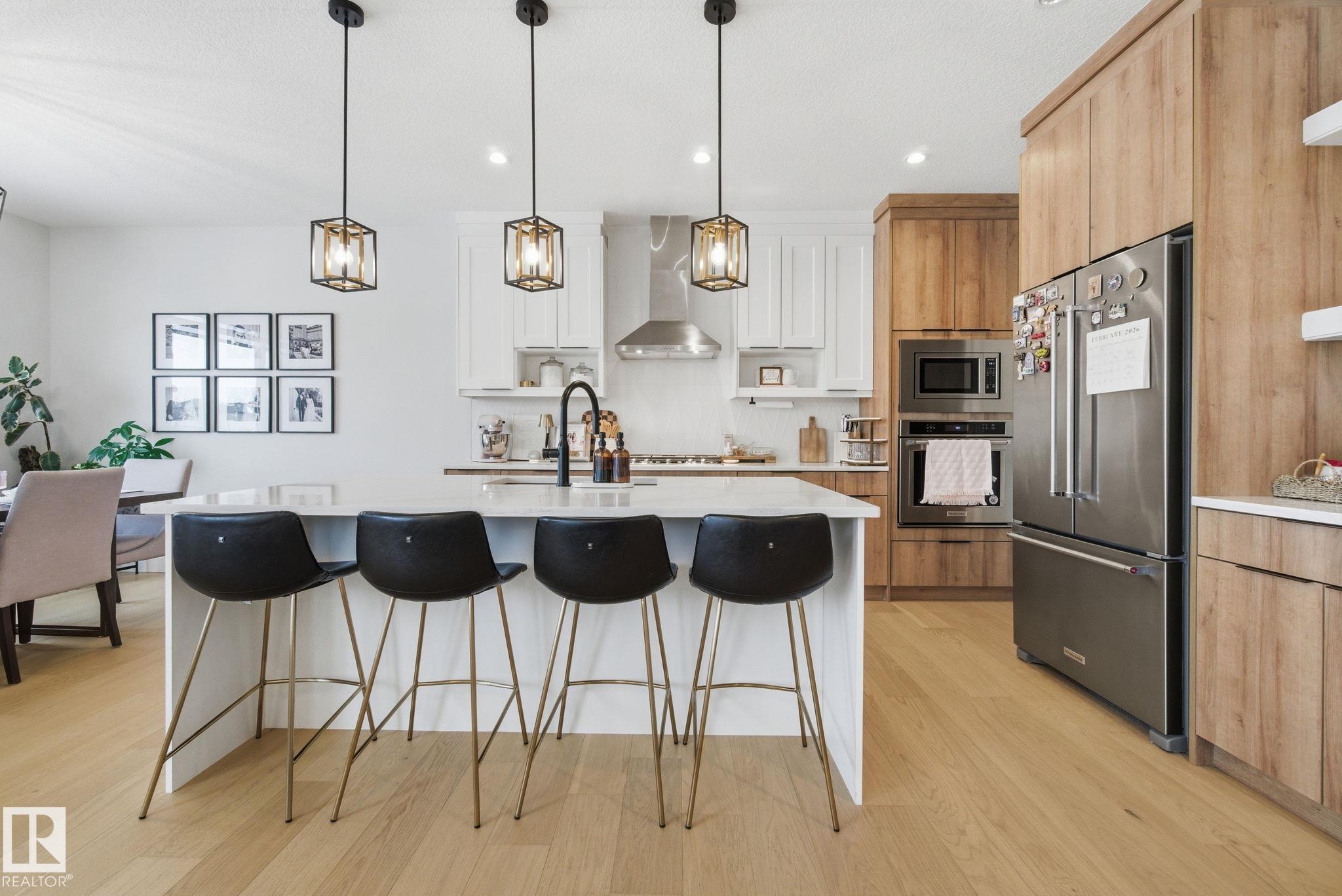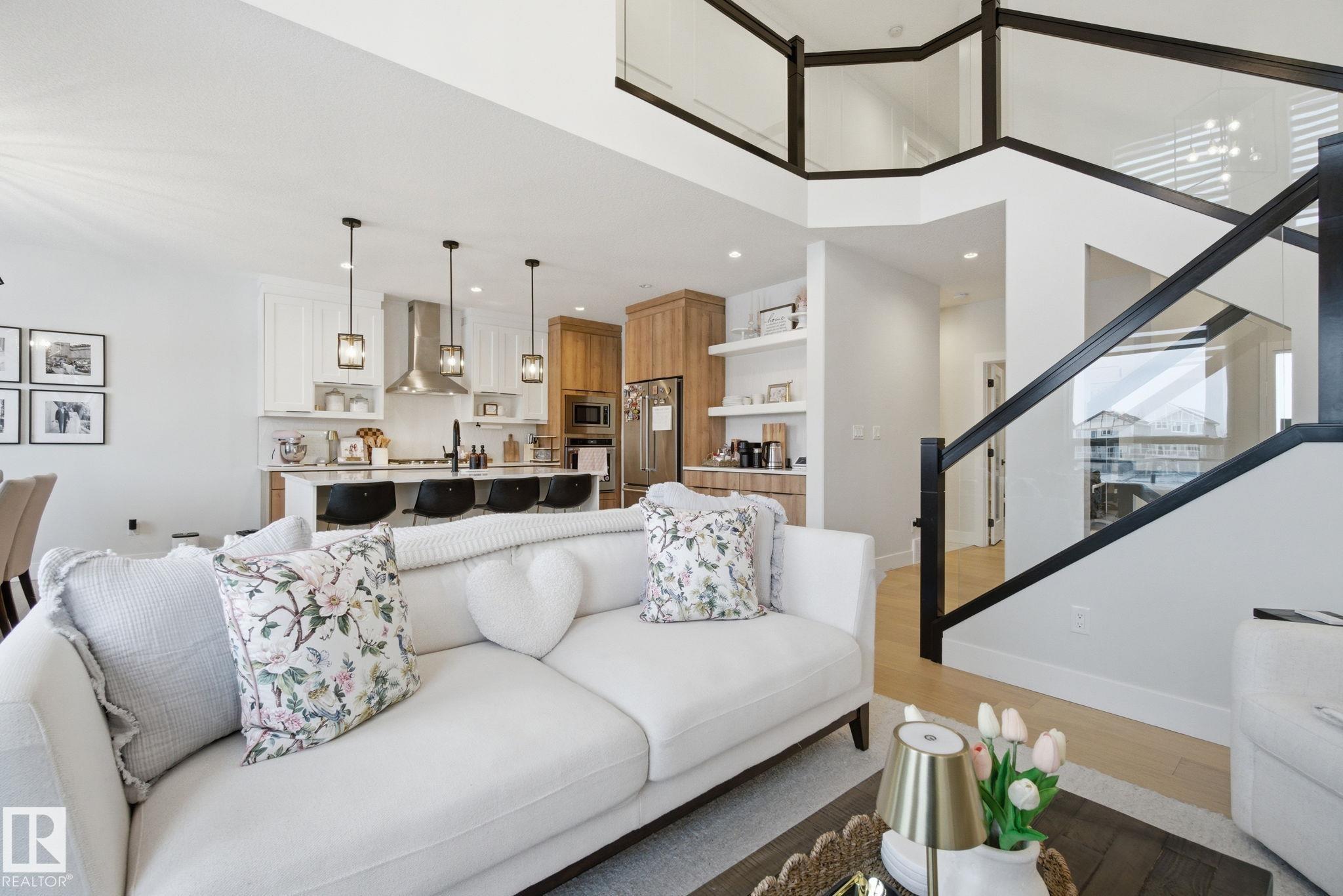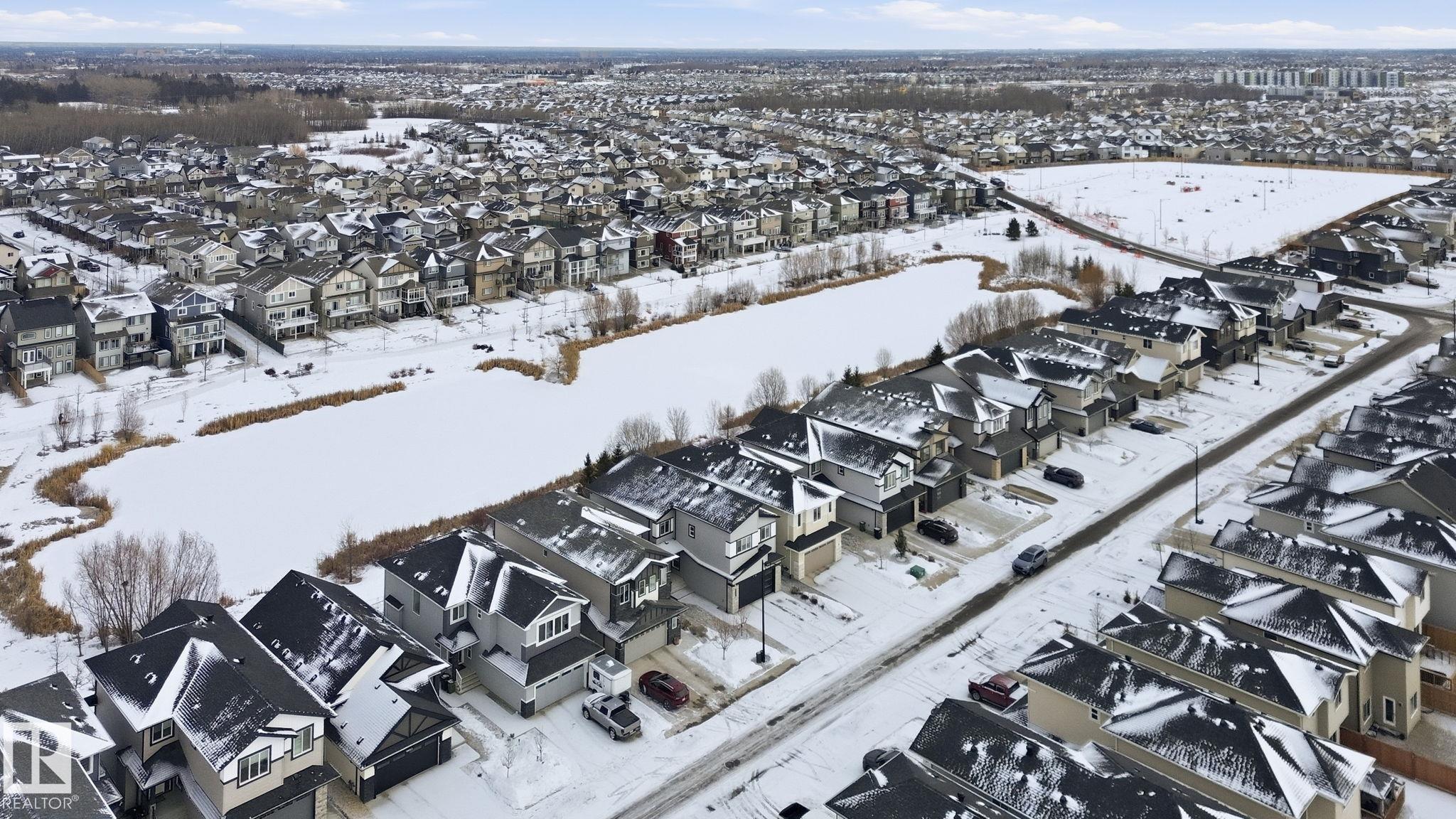Family Home with WALKOUT BASEMENT BACKING ONTO LAKE walking distance to School! AMAZING LOCATION will reward you every day with modern living, GREAT VIEWS AND EASY ACCESS to all of Edmonton. DESIGNER TWO TONE KITCHEN with built in appliances, quarts tops plus a walkthrough pantry. Living room with a WALL OF WINDOWS, LINEAR FIREPLACE AND SOARING CEILINGS. Dinette has ROOM TO ENTERTAIN with a full width low maintenance deck. MAIN FLOOR OFFICE is a must. Upstairs to the PRIMARY SUITE FIT FOR A KING with an ENSUITE FOR A QUEEN. Bedrooms 2 and 3 are similar in size with a full bath, and laundry adjacent. BONUS ROOM IS THE PERFECT RETREAT for your favorite shows. Walkout basement is FILLED WITH NATURAL LIGHT and ready for future development. ULTRA EFFICIENT home has all of the upgrades to KEEP COSTS DOWN. Yard is landscaped READY FOR A SUMMER OF RELAXING. Double attached garage is insulated and drywalled. HOME IS METICULOUS and still feels like new.