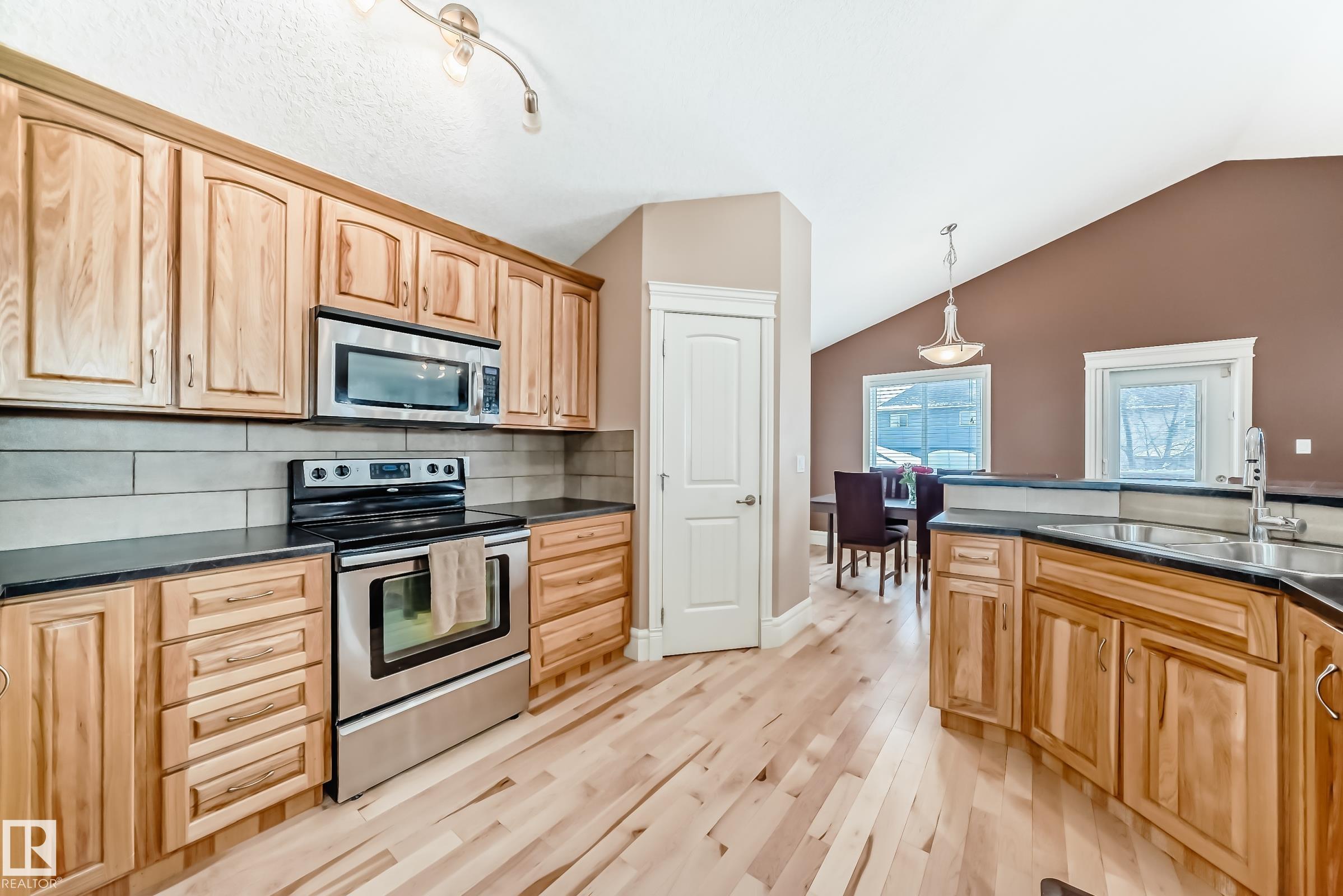 Welcome to 7211 Essex Way in the sought-after community of Emerald Hills! This beautifully maintained 2+1 bedroom home offers incredible flexibility and style. The main floor features an open-concept design with gorgeous vaulted ceilings that create a bright, airy feel throughout. The kitchen is a true centerpiece, complete with a large island, abundant counter space, and a spacious pantry, perfect for entertaining or everyday living. Fresh paint gives the home a crisp, modern feel. Downstairs is its own amazing domain! The fully developed basement includes a full kitchen, separate laundry, a generous bedroom, comfortable living room, and direct access to the backyard, ideal for extended family, guests, or added privacy. A rare opportunity in a prime location!