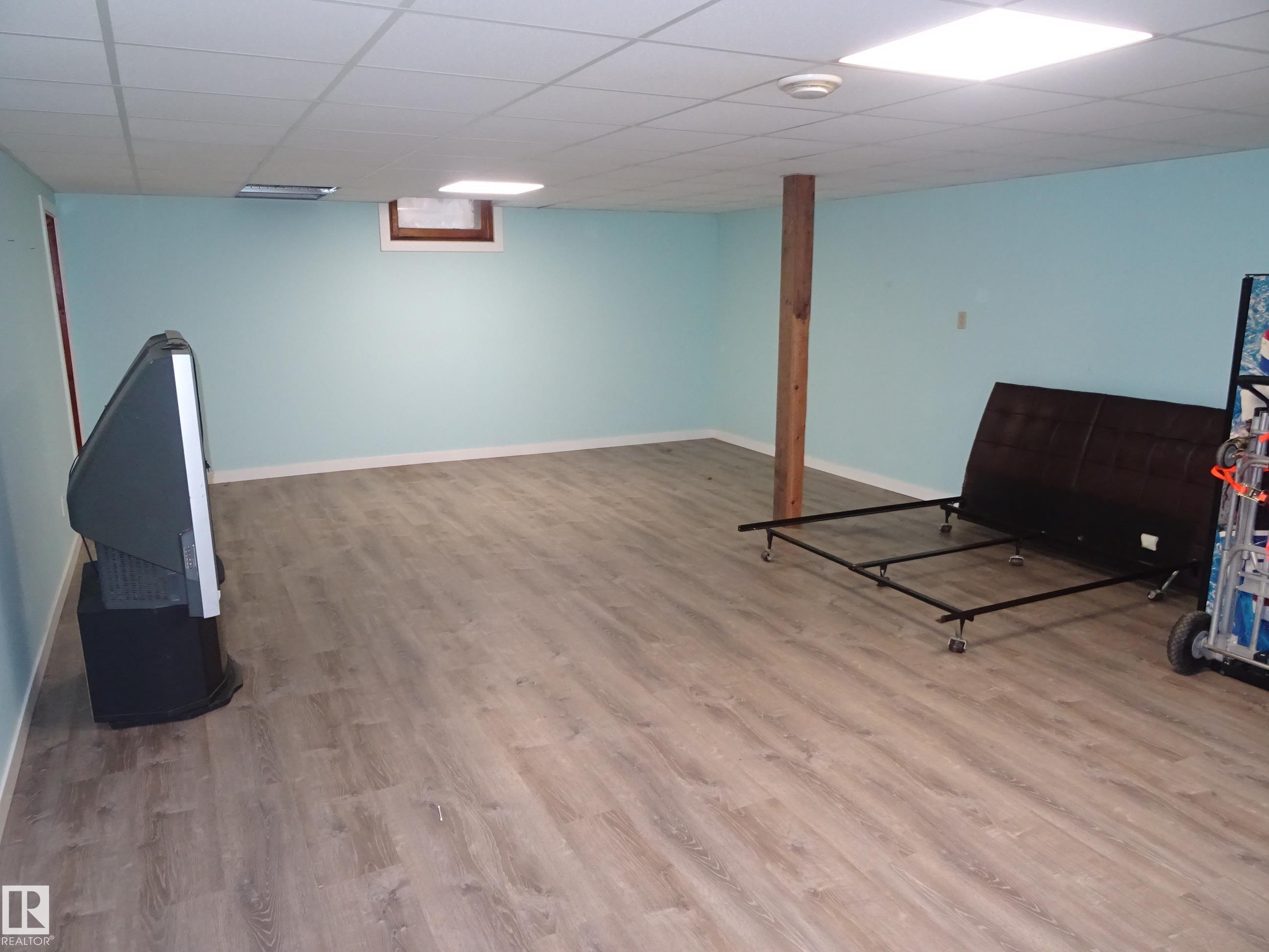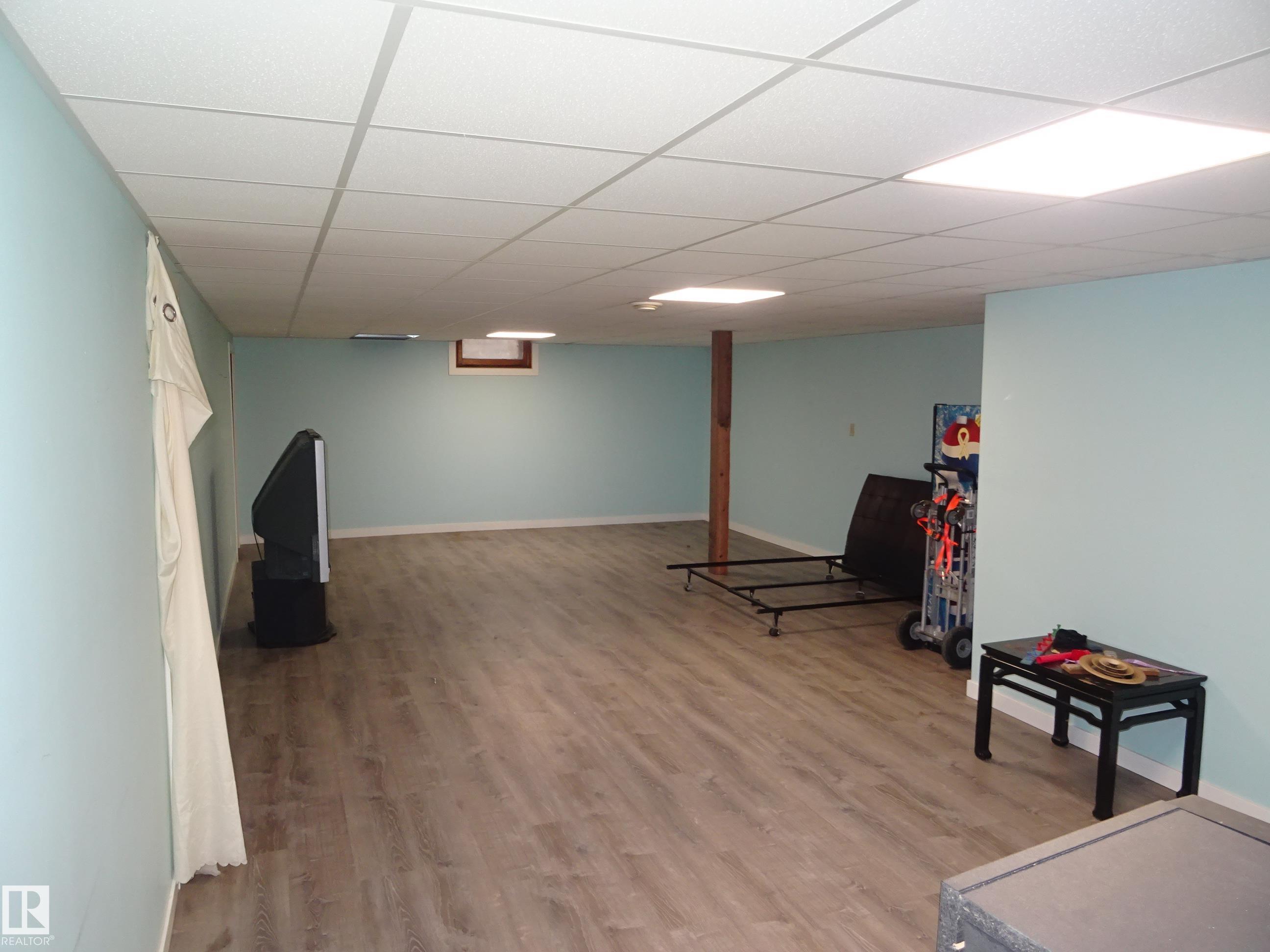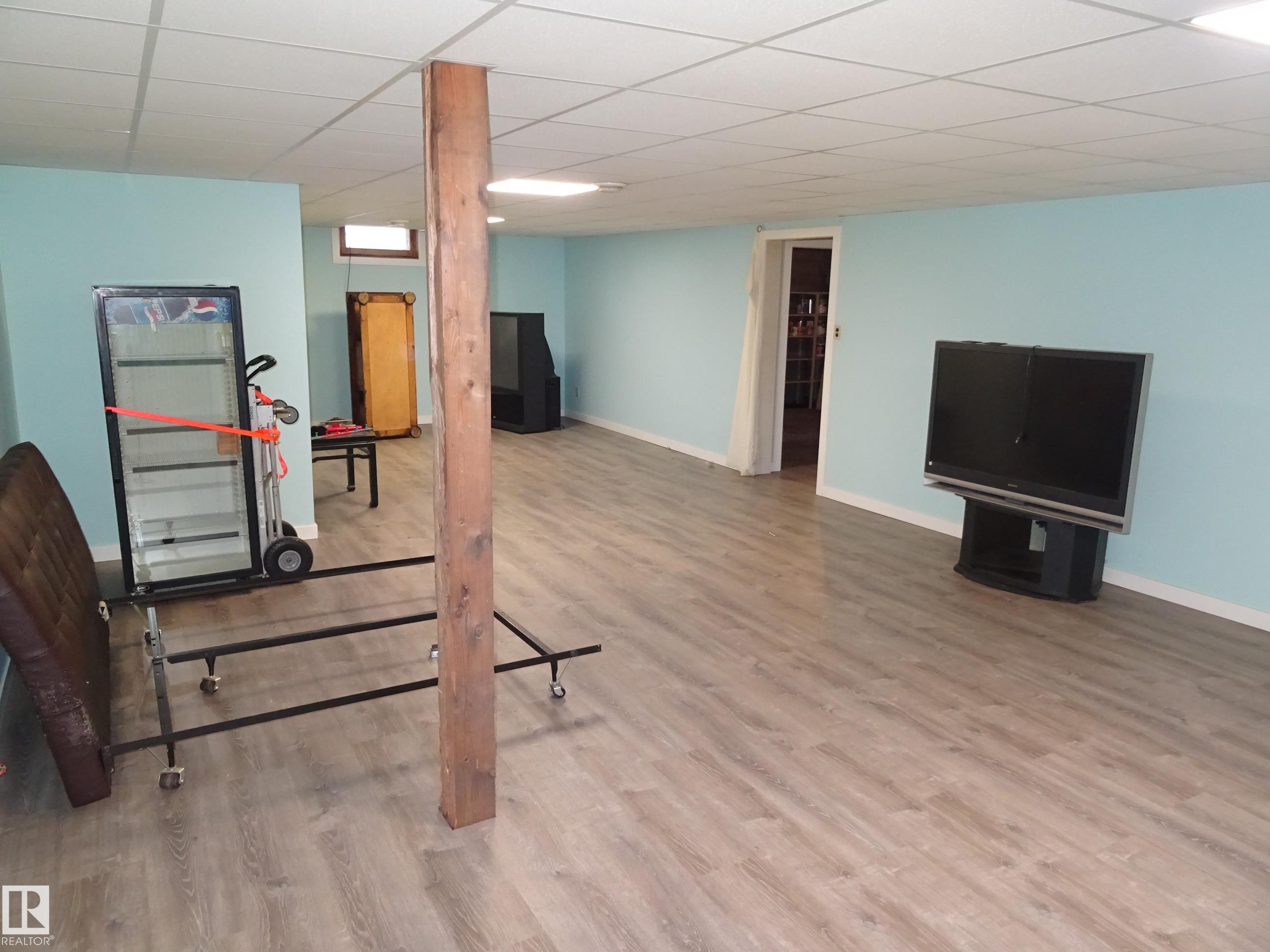 This 1244 sq ft bungalow is perfect for a growing family in a quiet town. Enter the home on the main floor into a large living room with space for your your entire home entertainment system. The kitchen has lots of counterspace and room for a sizeable dining room table. Down the hall you will find 3 bedrooms and the main 4pc bathroom. Downstairs there is a massive modern recreation room with space for the kids to play. There is also a large storage room and a spacious utility room. Upgrades to the home include shingles, some windows, electrical, and a mid efficient furnace. There is a large back yard, single detached garage and back alley access. A great home with good bones and lots of potential.