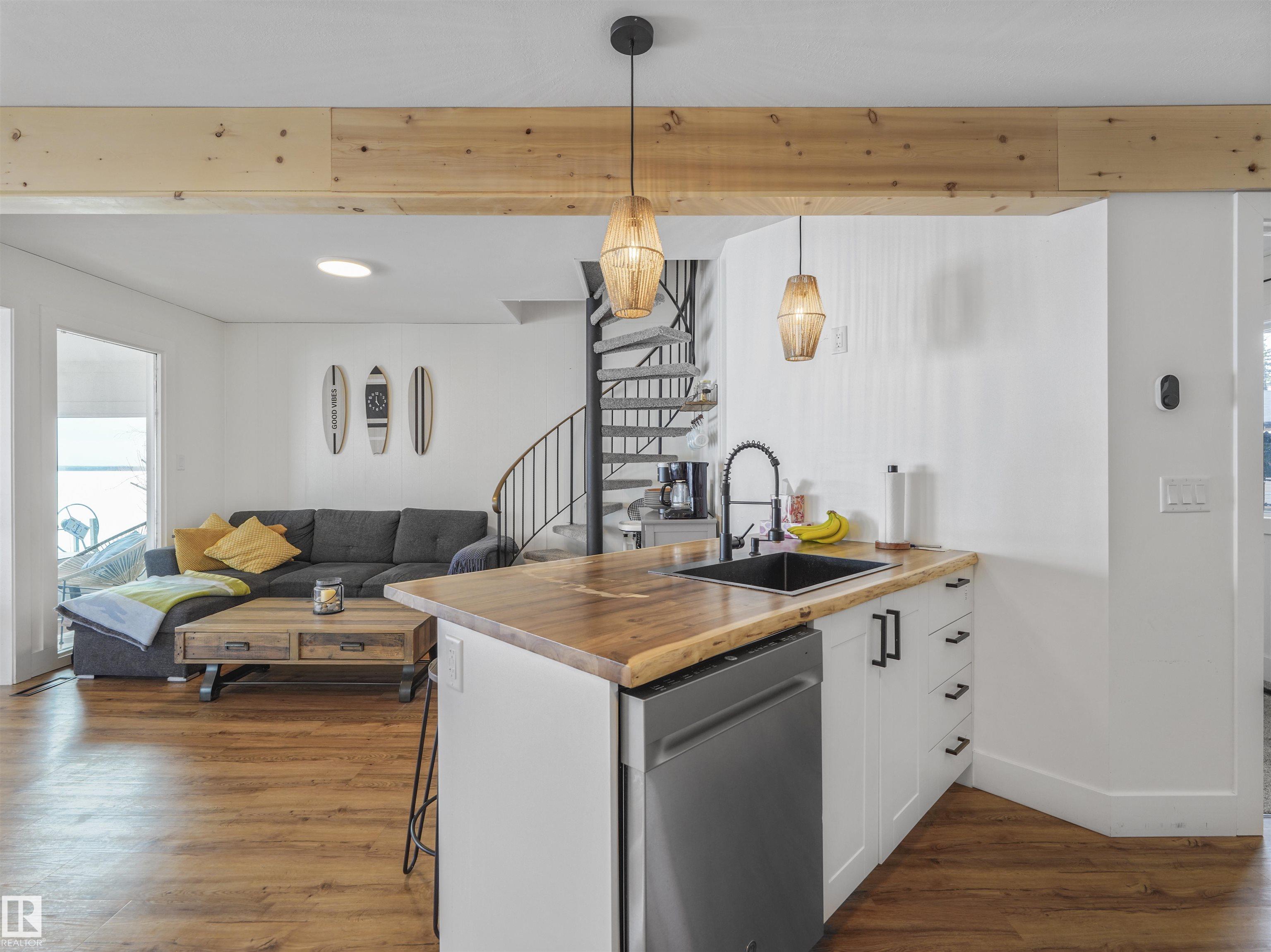 The Ultimate Family Lakefront Retreat! Discover the perfect destination for large families and hosting at this Lac Ste. Anne gem in Ross Haven. Fully renovated and thoughtfully designed, this 2-story, 5-bedroom, 2-bathroom home ensures everyone has a comfortable place to stay. The open-concept main floor is bathed in year-round sunlight, offering expansive lake views through south-facing windows?perfect for big family gatherings. Upstairs, the master suite provides a private retreat, while the bonus room and additional bedrooms are ideal for accommodating guests and kids in comfort. Hosting is made easy with an on-demand water heater (no cold showers for the crew!) and a modern sewer tie-in. With a double detached garage and a pull-through single garage, there is plenty of room for everyone?s vehicles and watercraft, plus a private concrete launch. Located on a quiet street near the park, just 40 minutes from St. Albert and West Edmonton, this home is built for relaxation and big-group adventure.