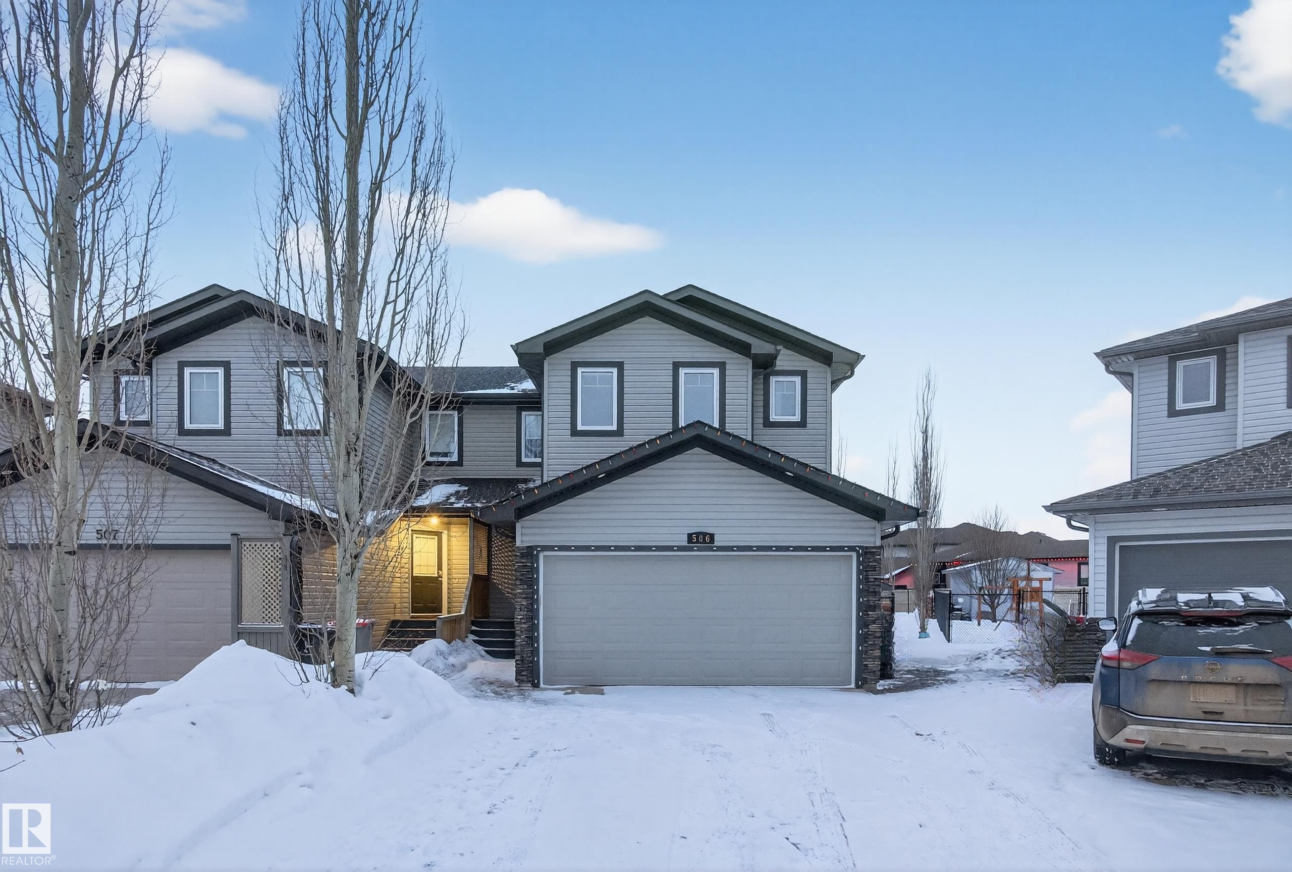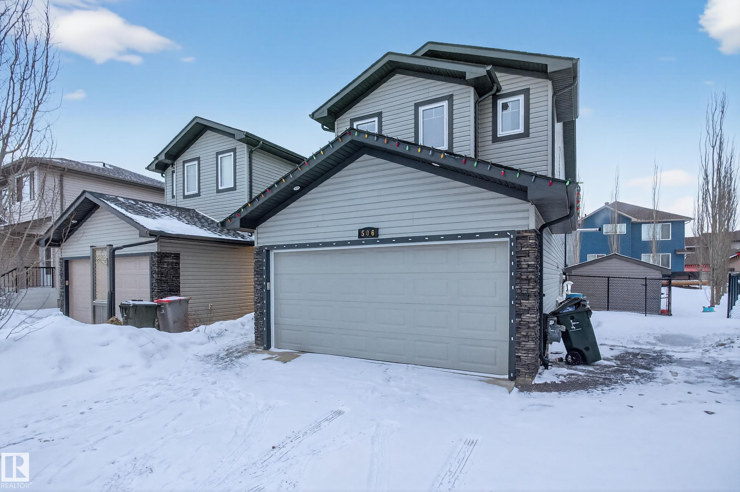 INCREDIBLE! FULLY FINISHED BASEMENT! UPGRADED! WELCOME TO ONE OF STONY PLAIN'S BEST; 506 FAIRWAY TERRACE! THIS 2013 BUILT HOME HAS IT ALL! KITCHEN INCLUDES MAPLE HARDWOOD FLOORS, A POWERED/WATERED GRANITE ISLAND, STAINLESS STEEL APPLIANCES, CUSTOM TILE BACKSPLASH, ETCHED MAPLE CABINETRY, UPGRADED FAUCETS AND A WALK-IN PANTRY. MAIN FLOOR LIVING ROOM IS SPACIOUS. DINING ROOM HAS SLIDING DOORS LEADING ONTO SOUTH FACING EXTERIOR DECKING. MAIN FLOOR ALSO HAS A GRAND ENTRANCE, HALF BATH, AND MAIN FLOOR LAUNDRY. THERE ARE 3 UPPER LEVEL BEDROOMS. THE PRIMARY BEDROOM HAS A LARGE WALK-IN CLOSET. ENSUITE HAS TILE FLOORS WITH TUB/SHOWER (4 PIECE). UPPER LEVEL ALSO HAS A FULL BATH AND BONUS ROOM. BASEMENT HAS BEEN PROFESSIONALLY FINISHED AND WITH A LARGE FAMILY/ENTERTAINMENT ROOM, BATHROOM, DEN, AND STORAGE. HOME SOUTH FACING BACKYARD HAS BEEN PROFESSIONALLY LANDSCAPED! YARD IS ALSO FENCED WITH A NEW REAR DECK (GAS BBQ READY). HOME HAS CENTRAL AC. ATTACHED GARAGE IS A DOUBLE AND IS HEATED.